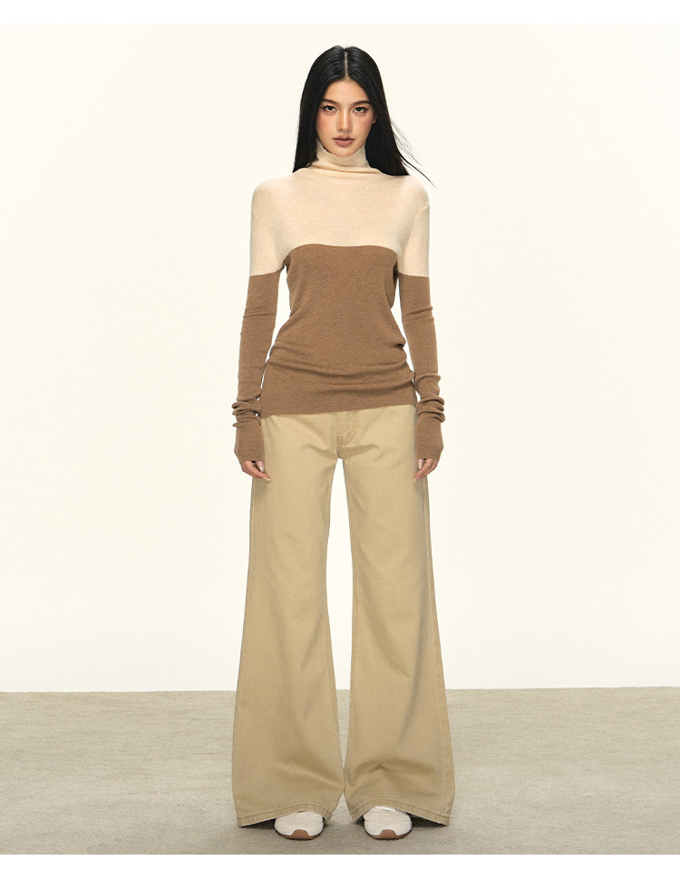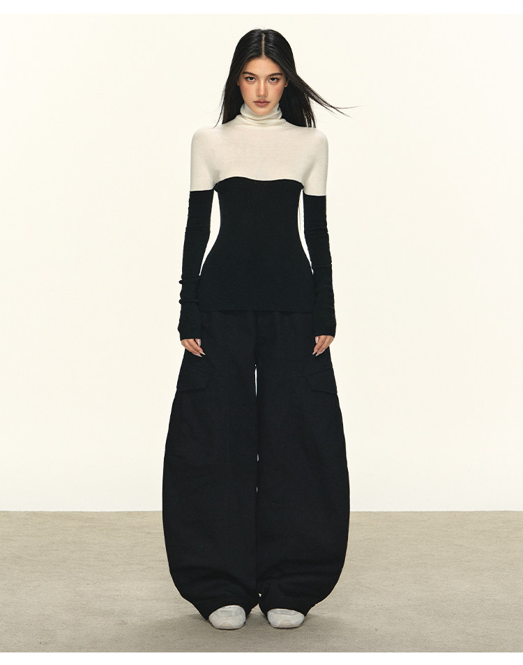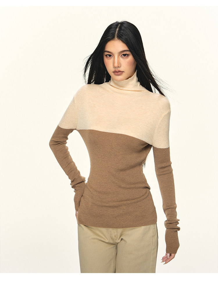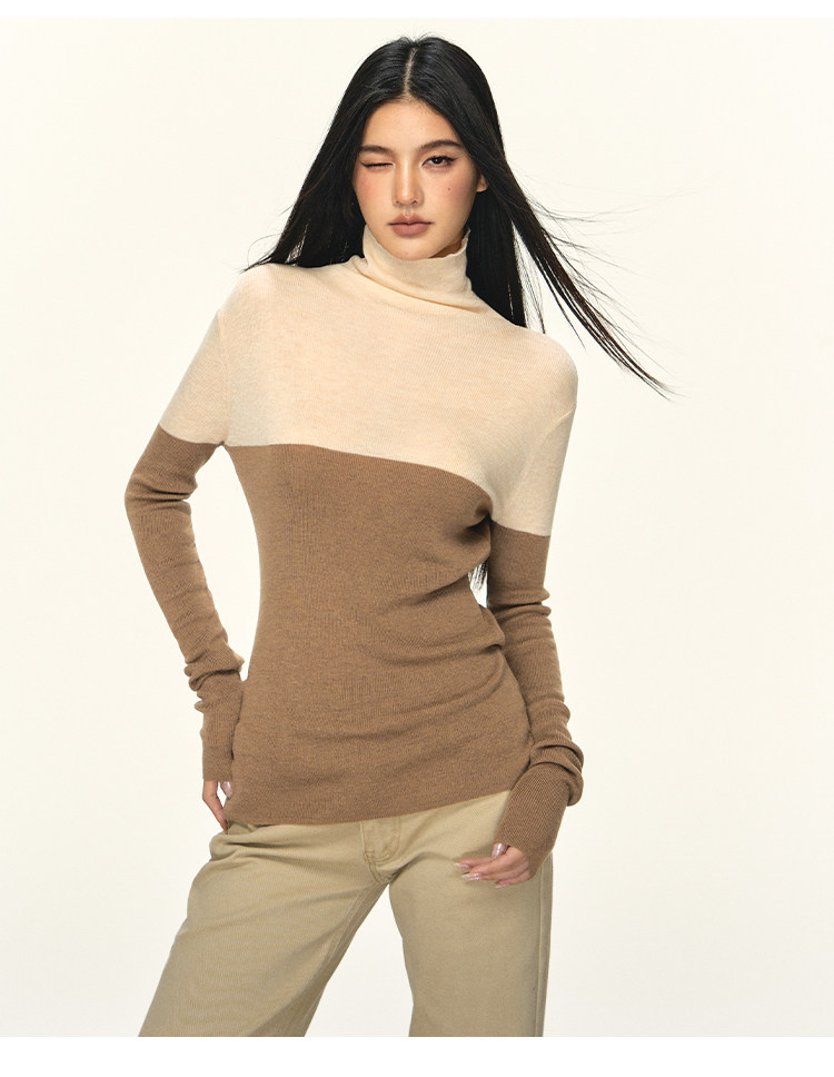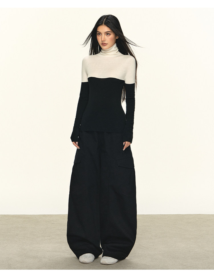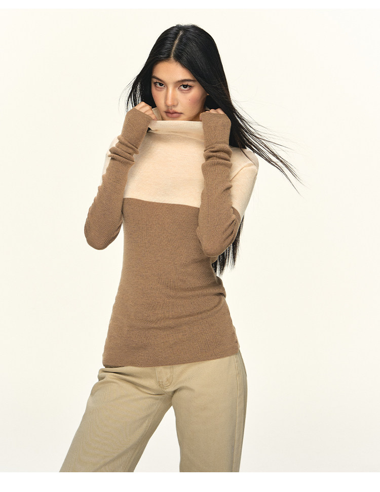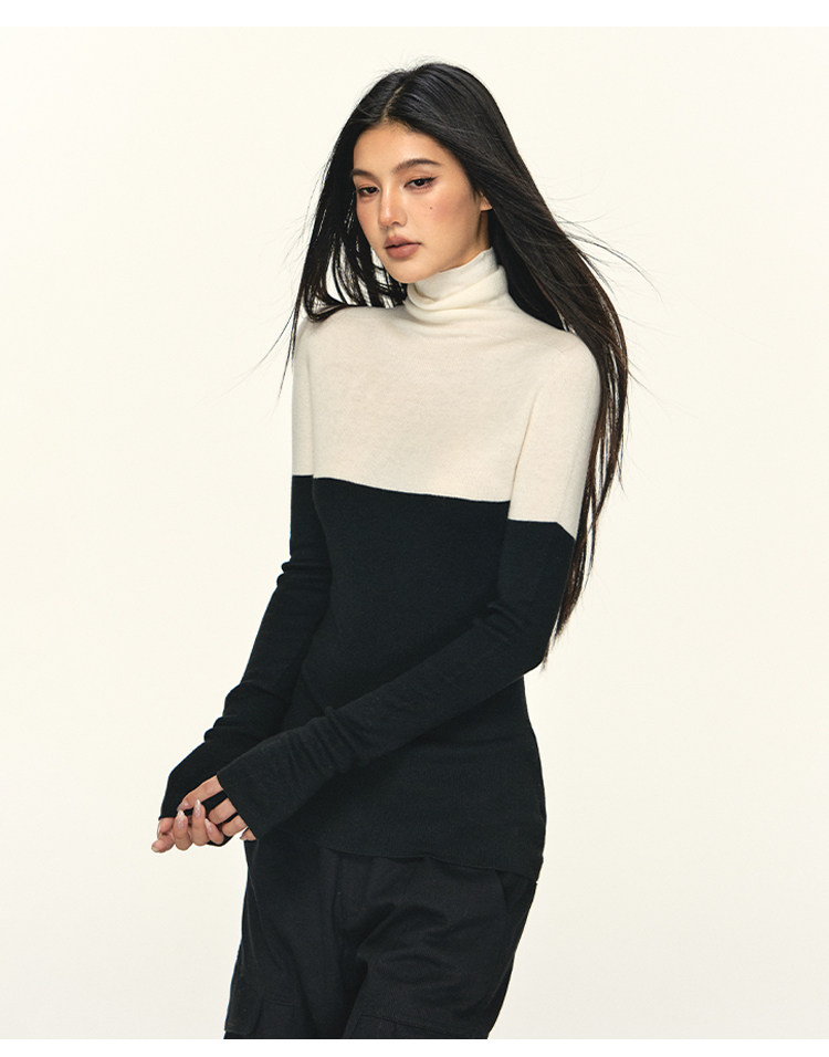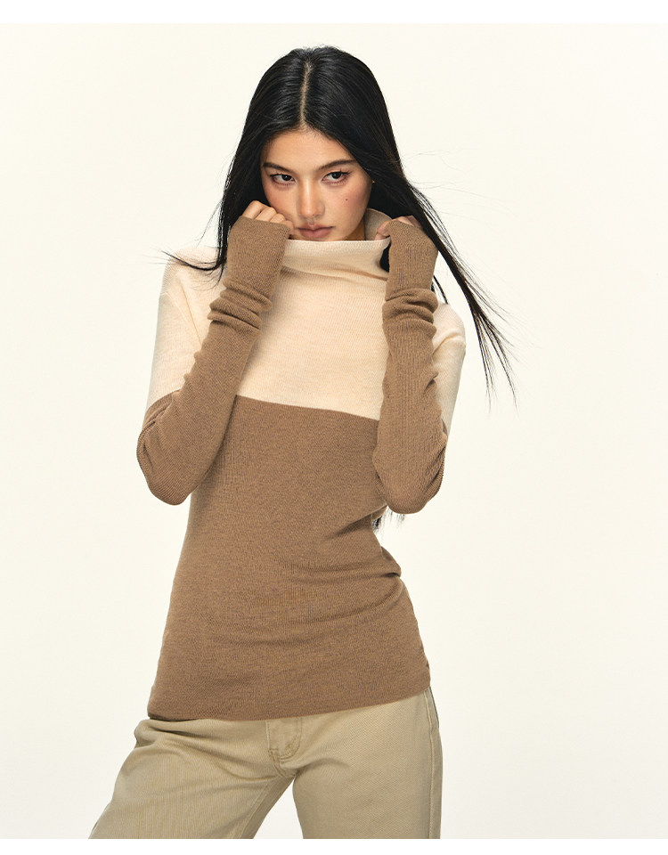 Anna Aneae Contrasting Turtleneck with Knitted Bottom Long Sleeves
