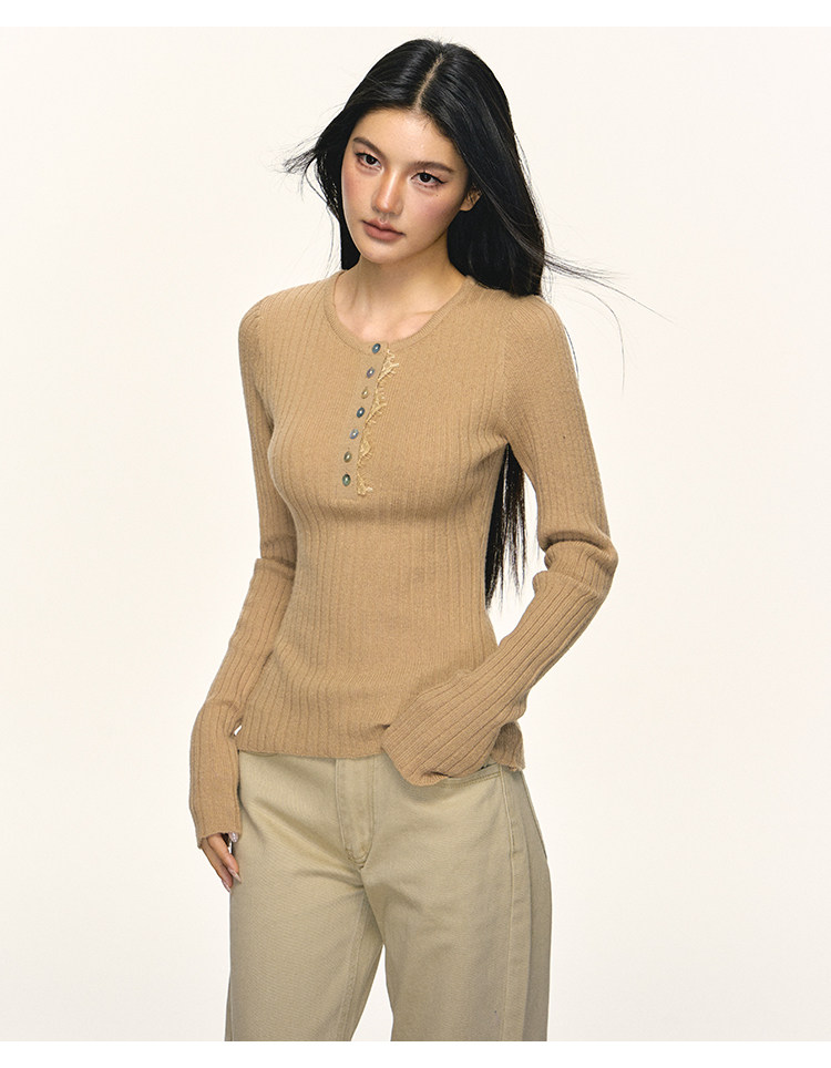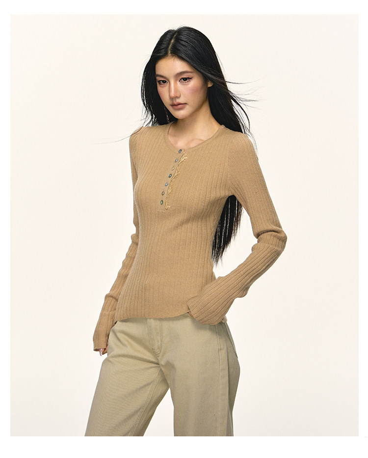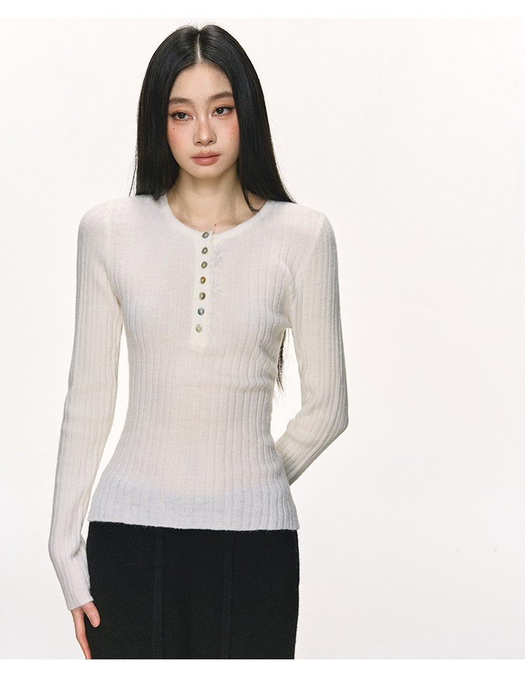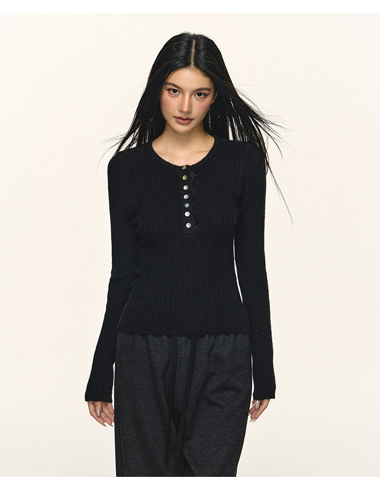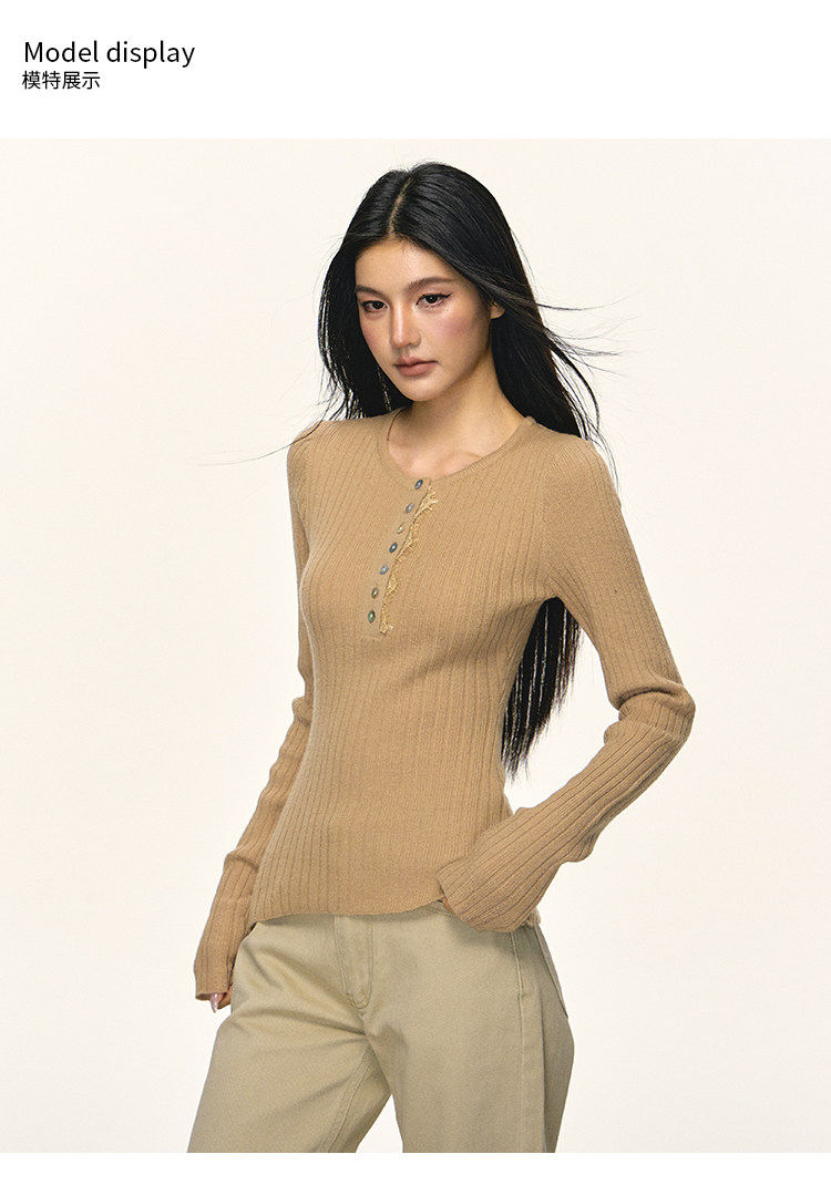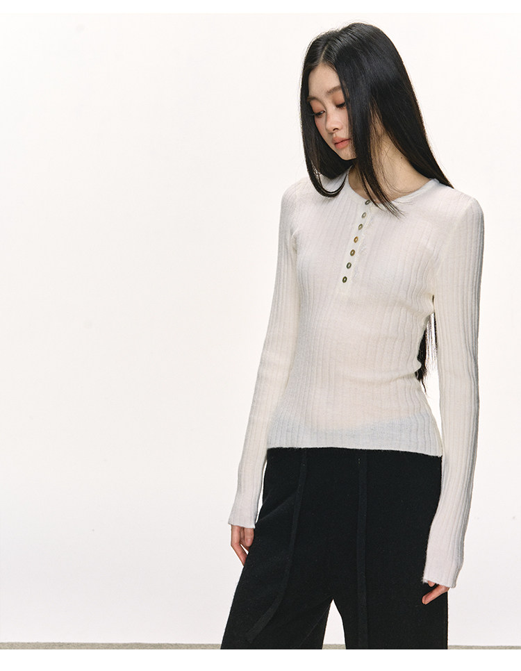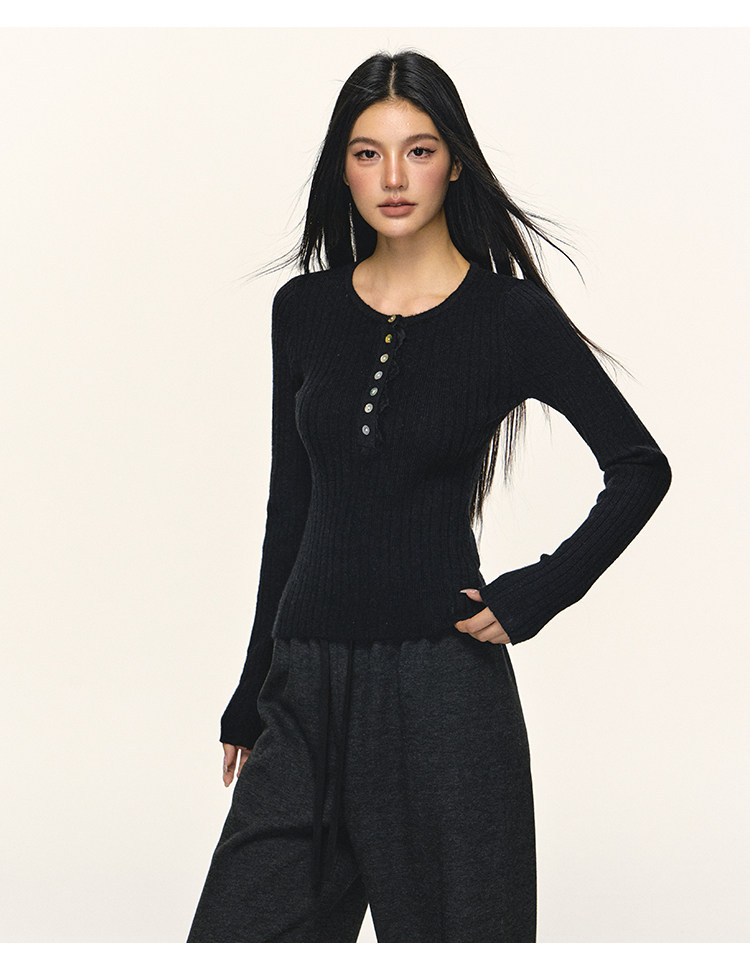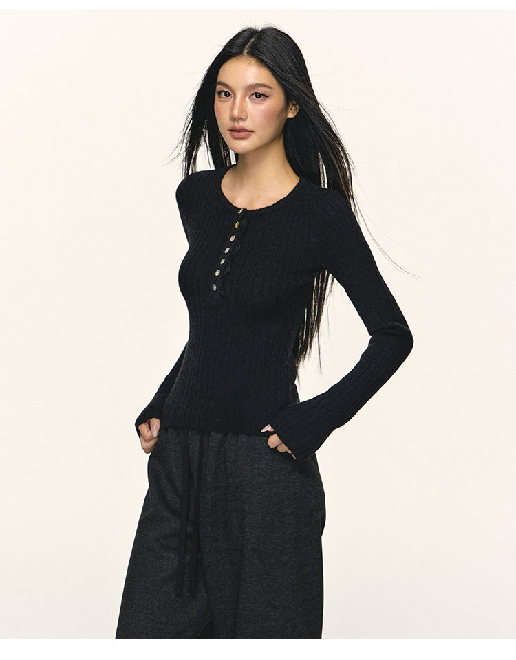 Anna Aneae Henry Collar Knitted Inner Bottom Slim Sleeve