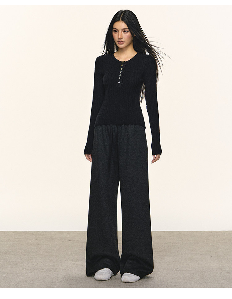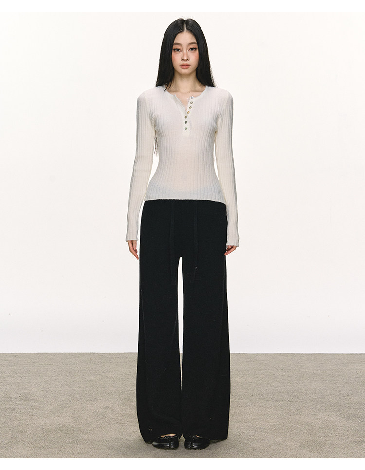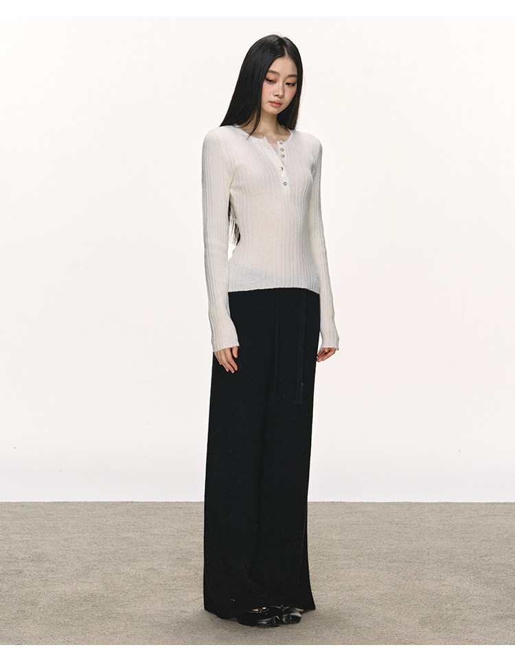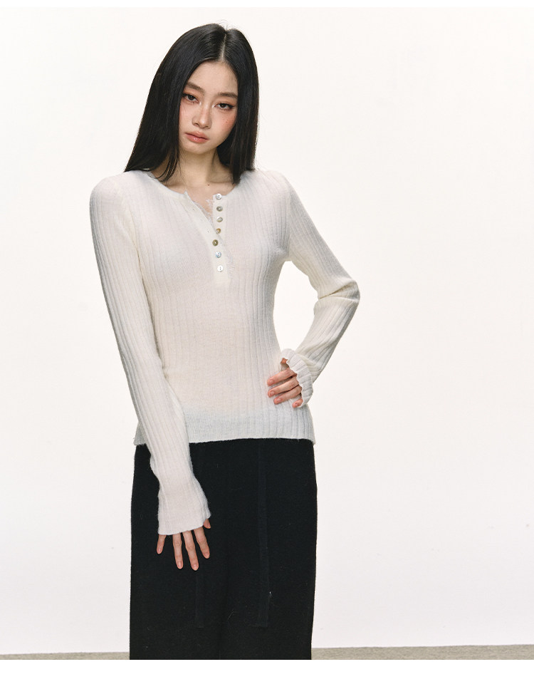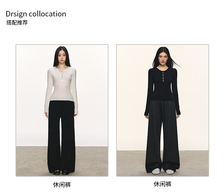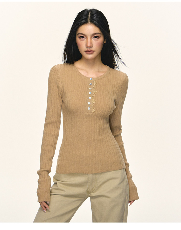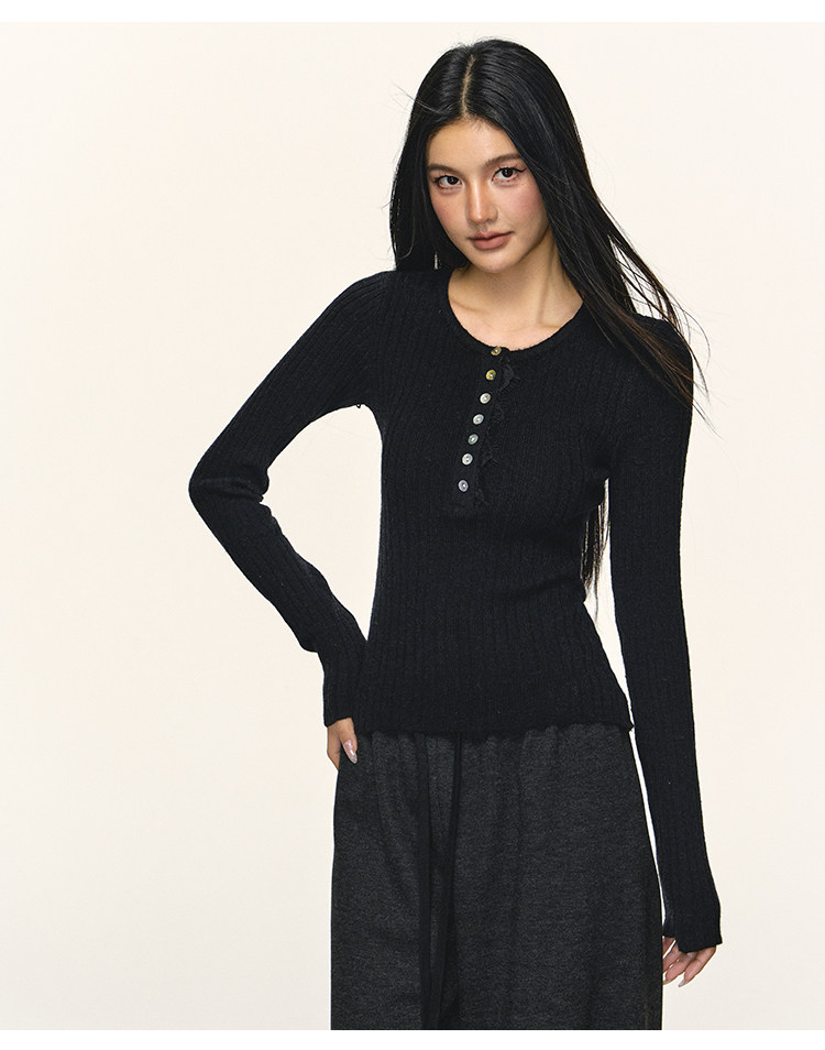 Anna Aneae Henry Collar Knitted Inner Bottom Slim Sleeve