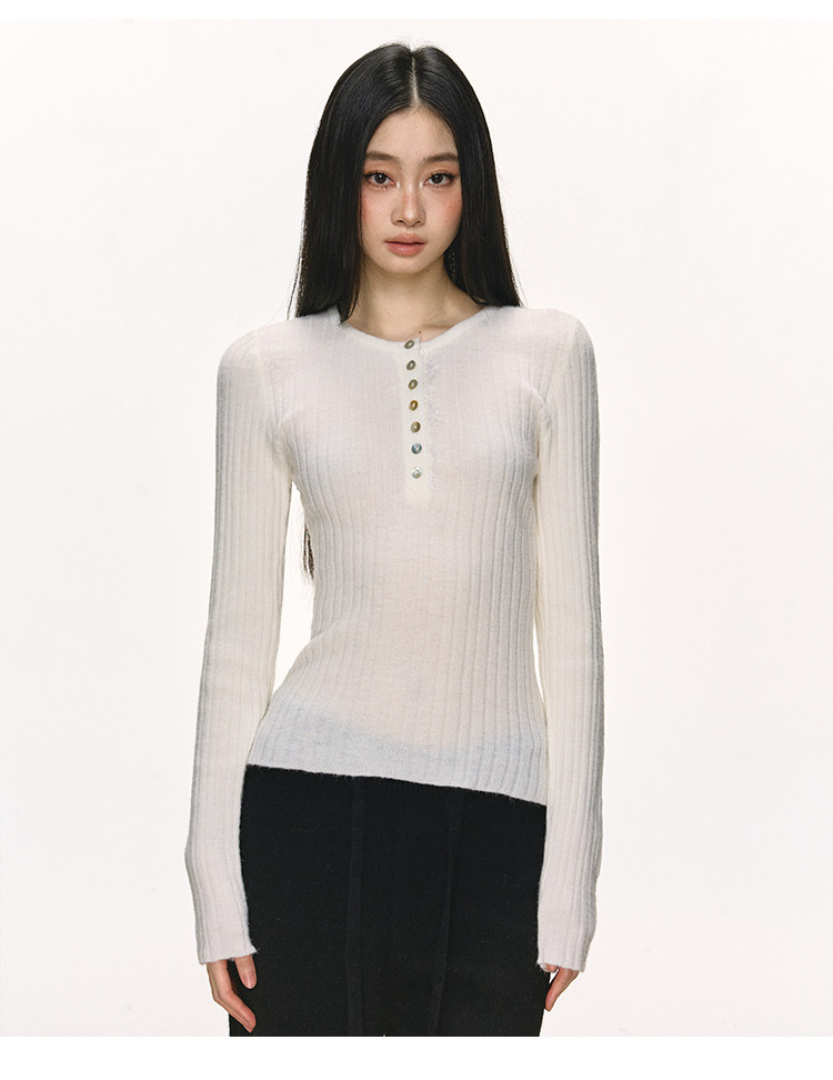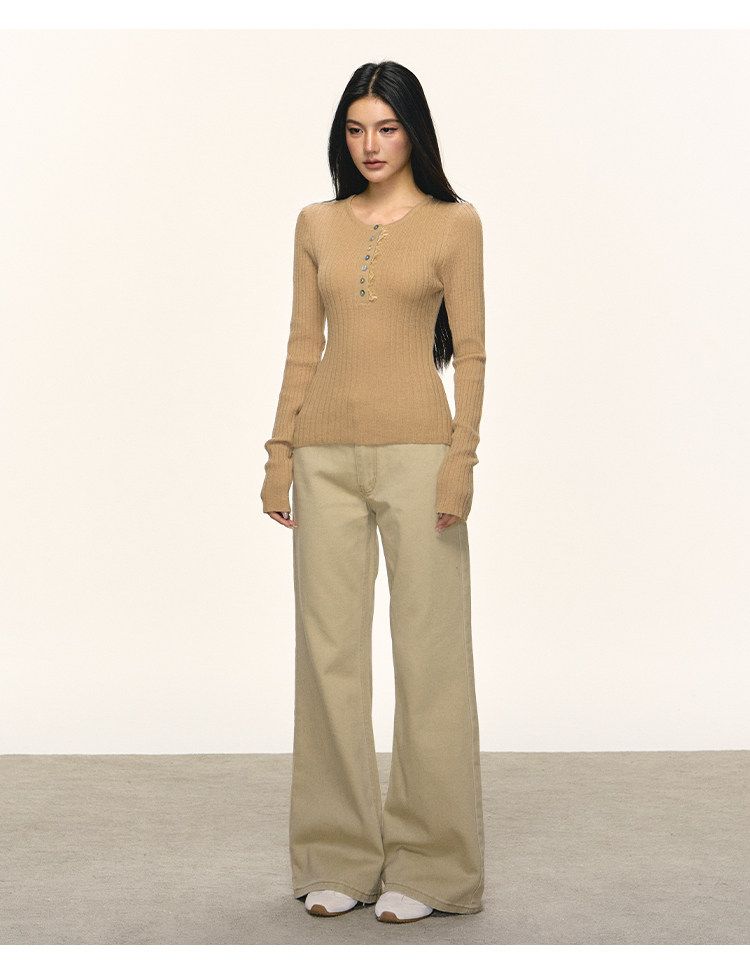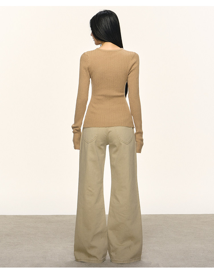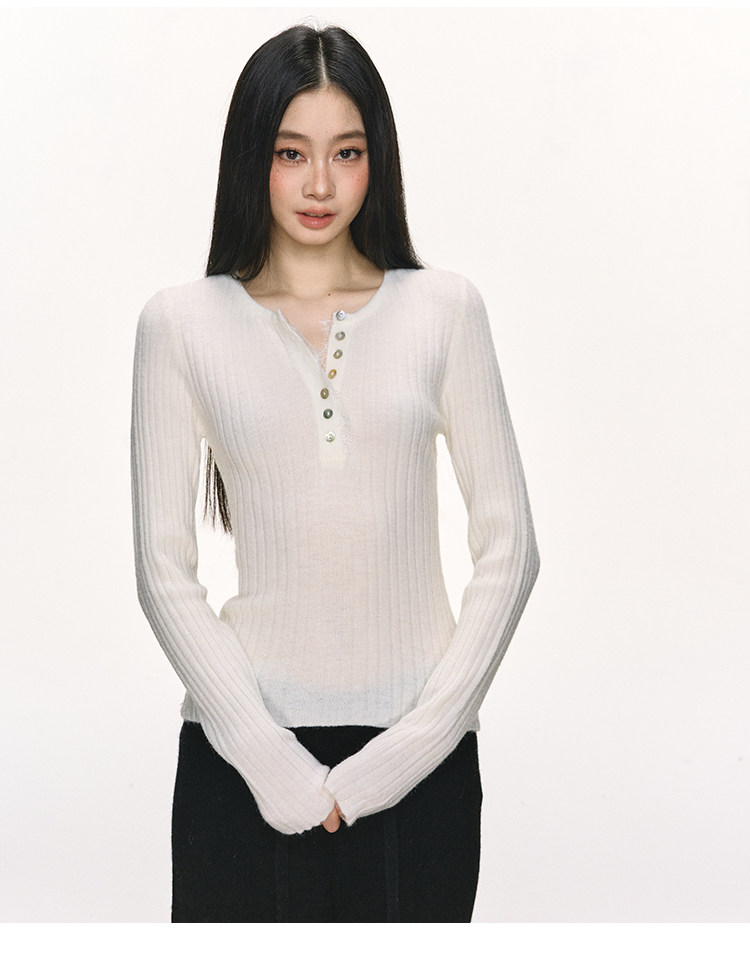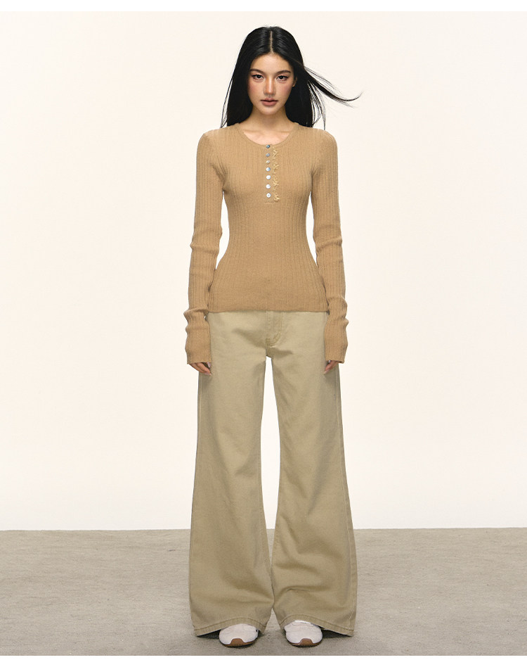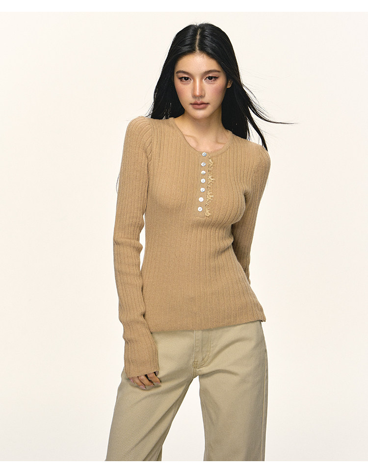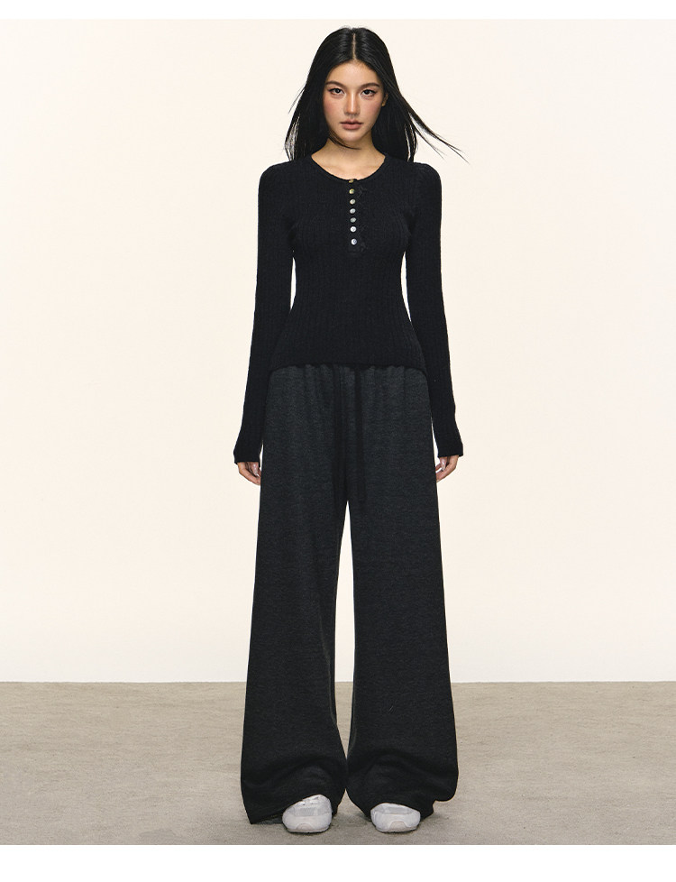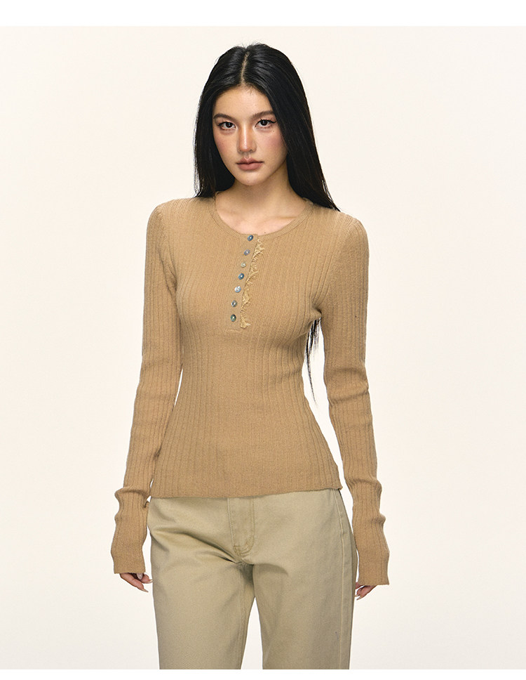 Anna Aneae Henry Collar Knitted Inner Bottom Slim Sleeve