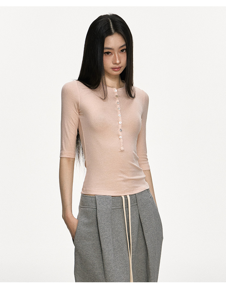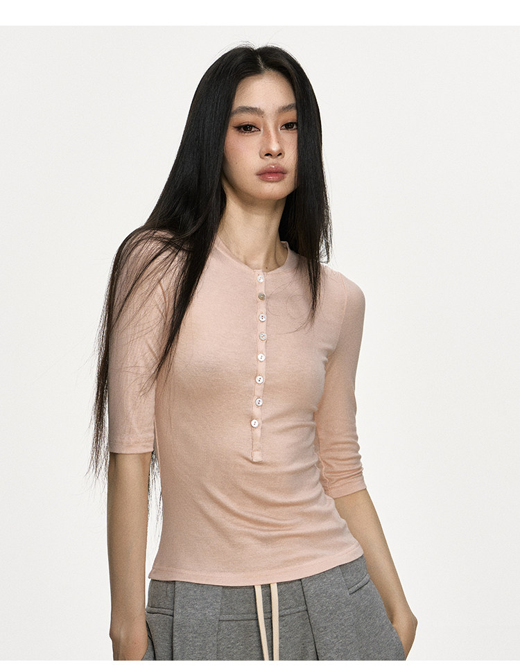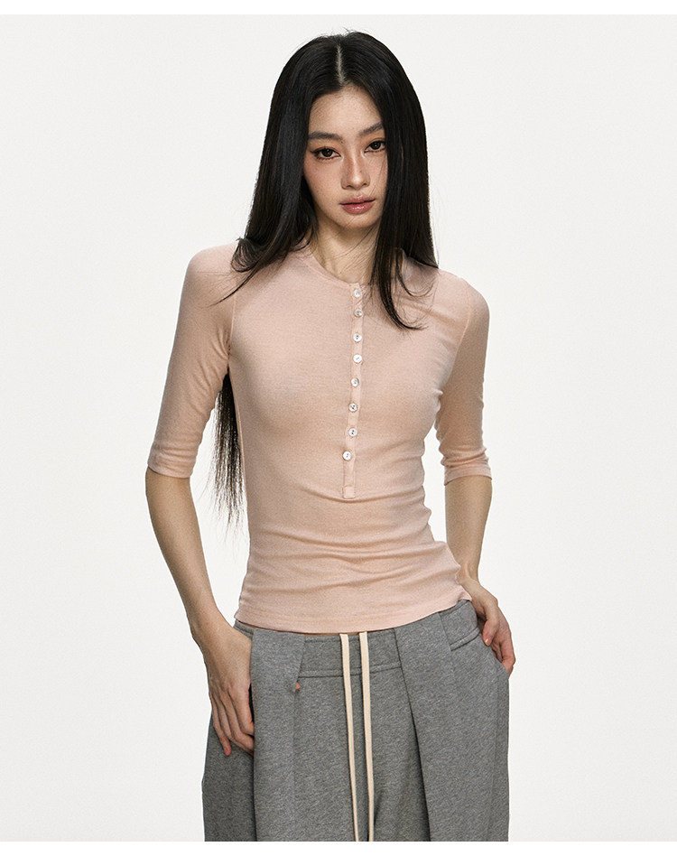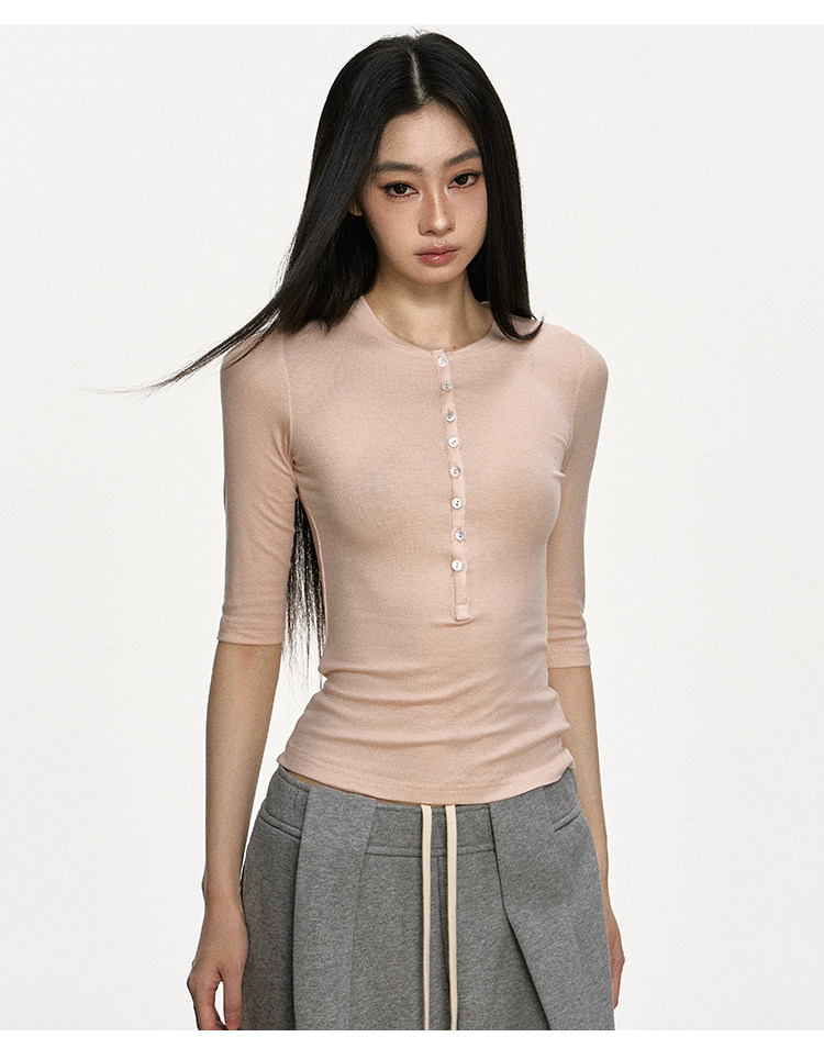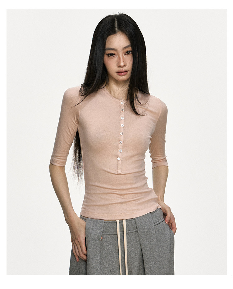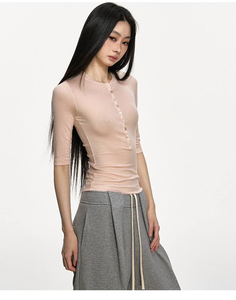 Anna Aneae High Elastic Slim Babes Button Tee