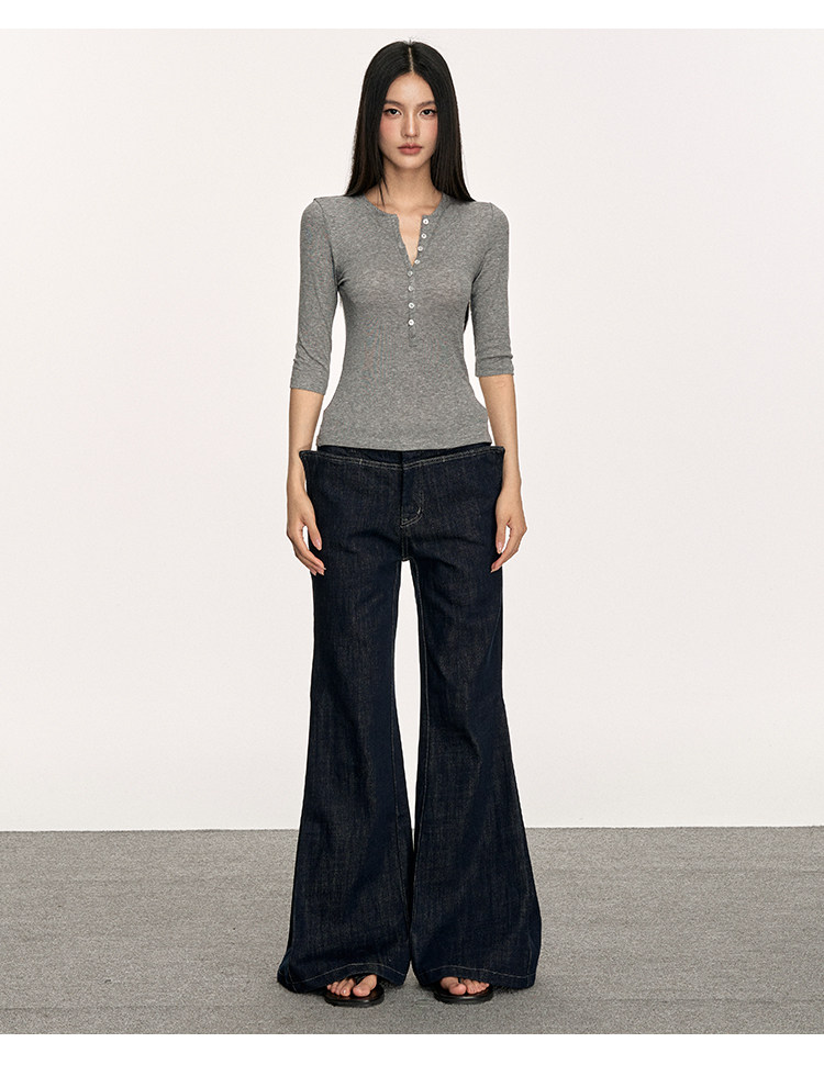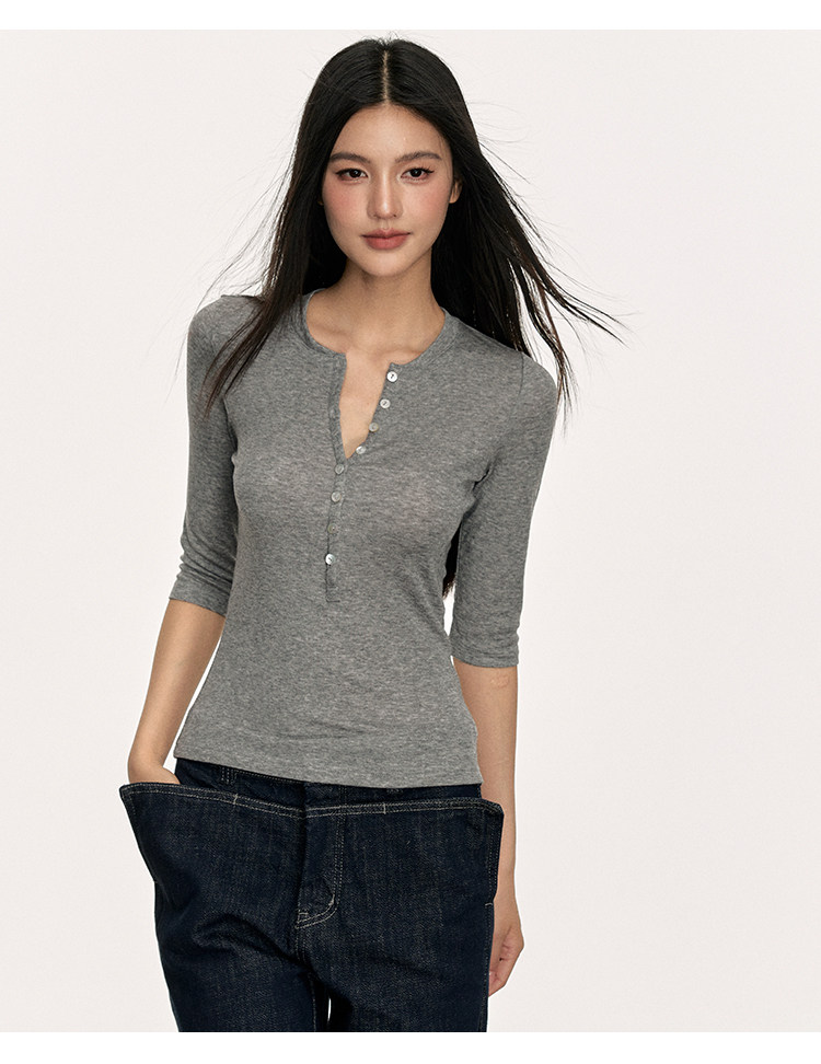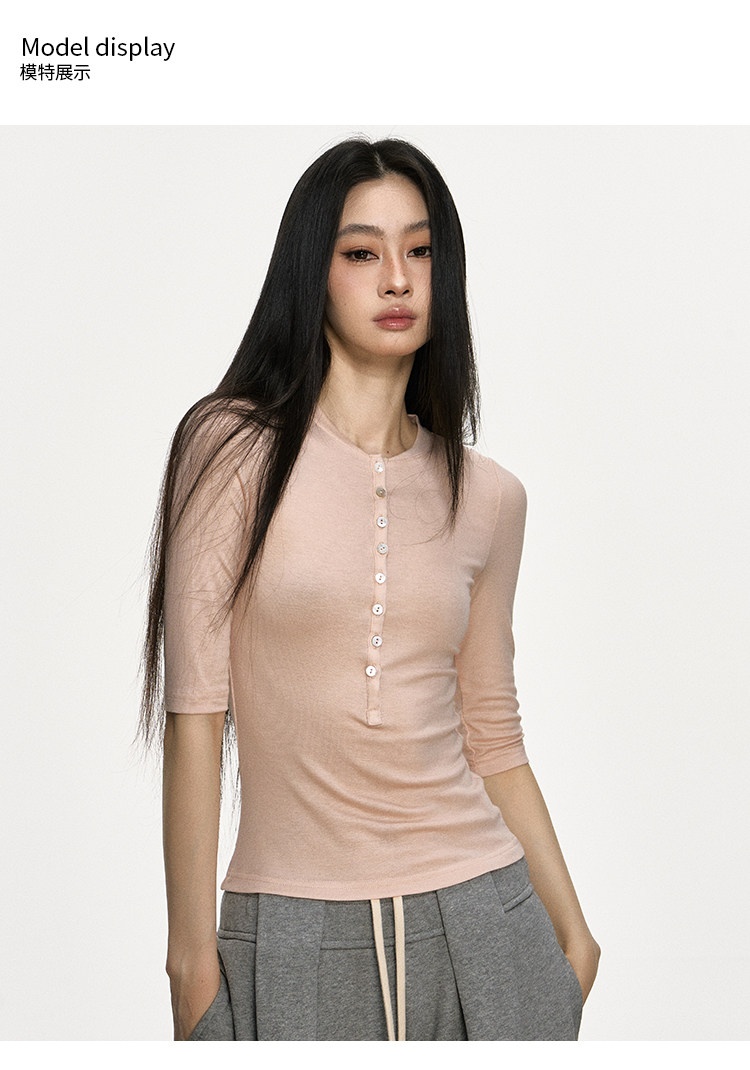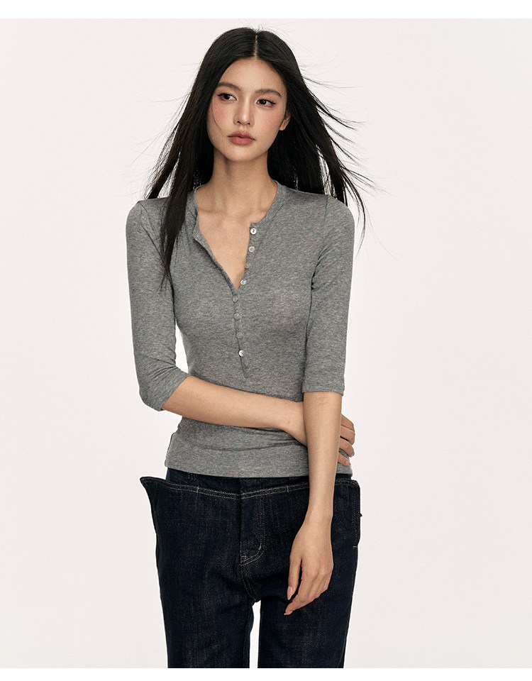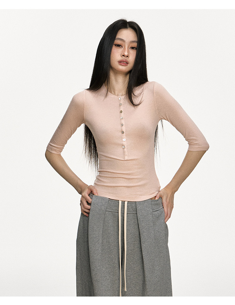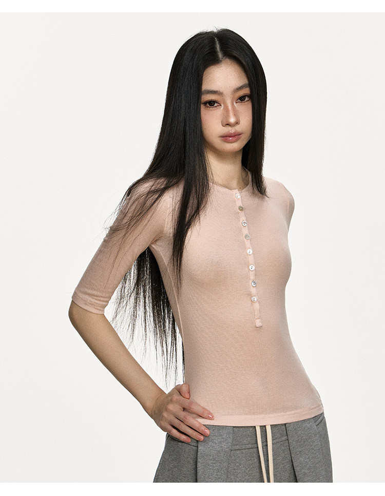 Anna Aneae High Elastic Slim Babes Button Tee