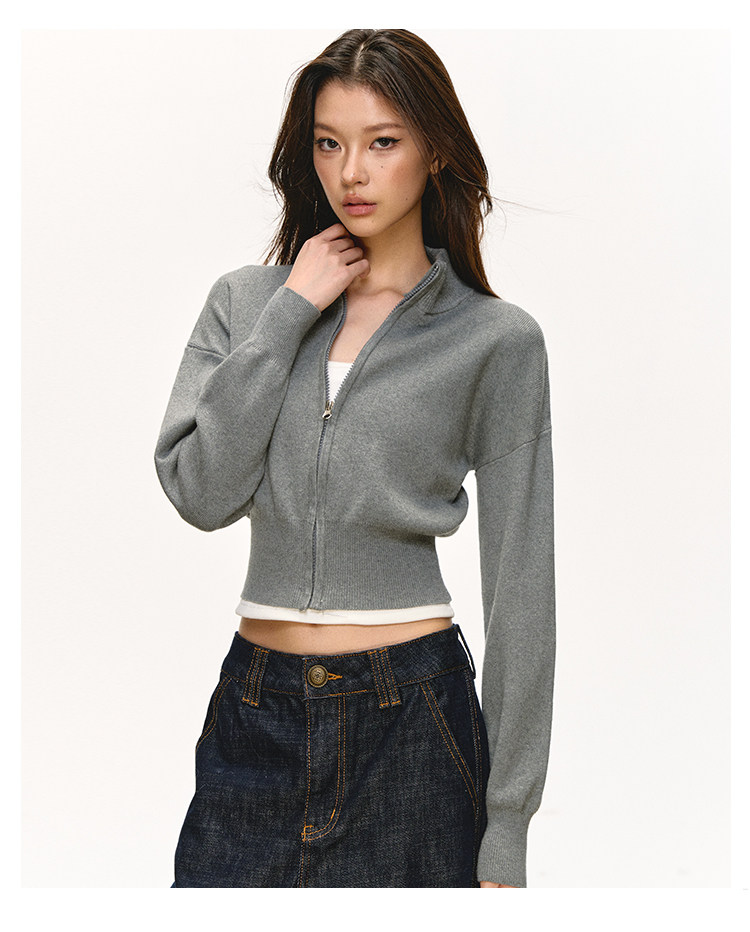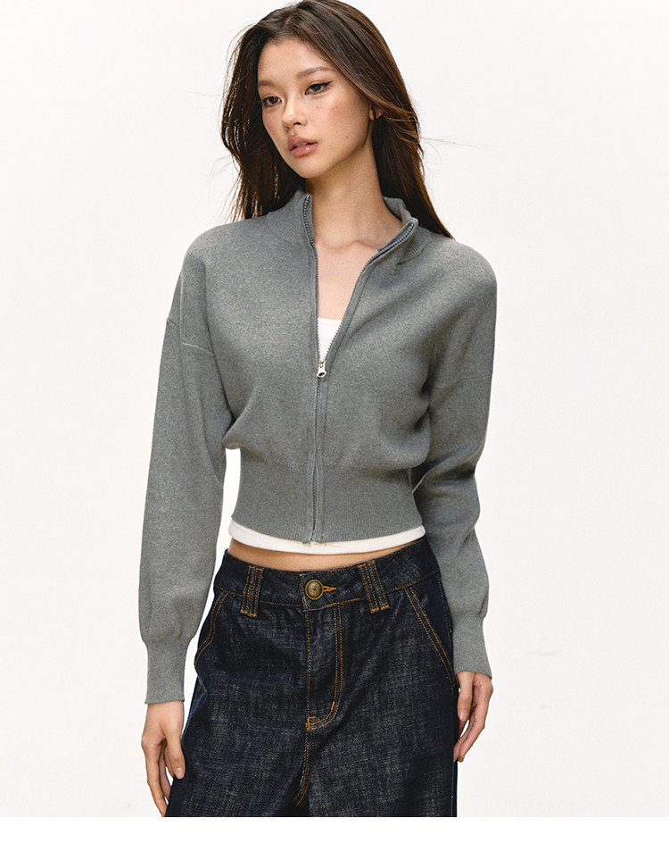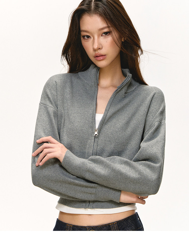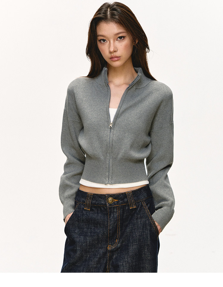 Anna Aneae Knitted Short Stand-up Neck Zip-up Jacket