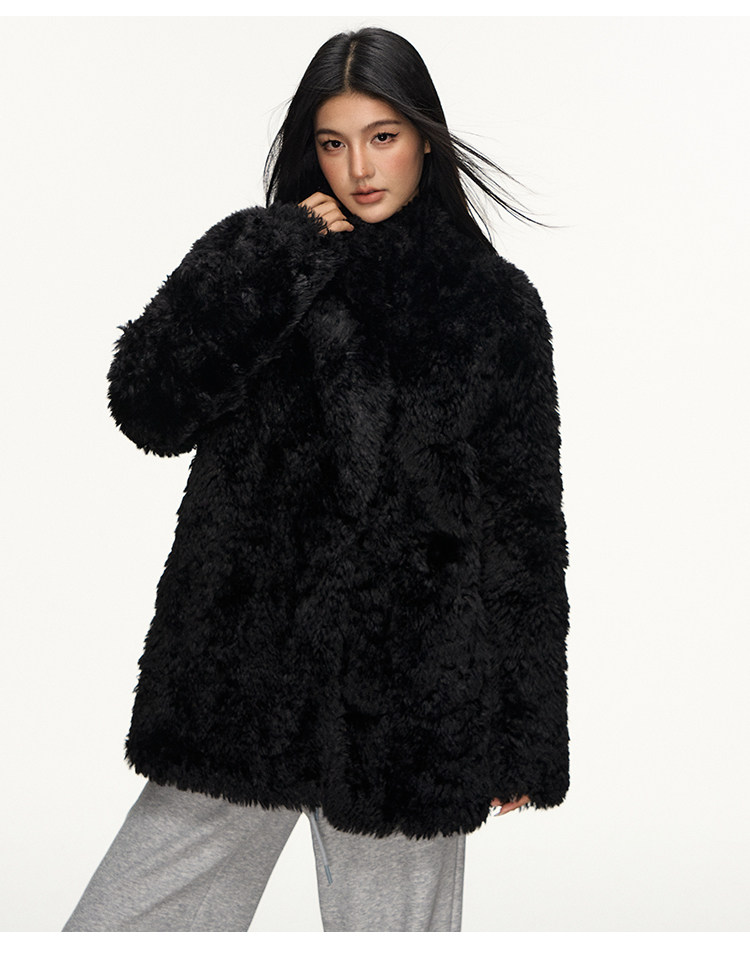 Anna Aneae Lamb Wool Loose Mid-length Coat