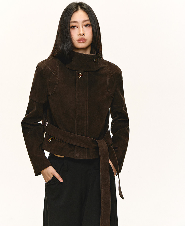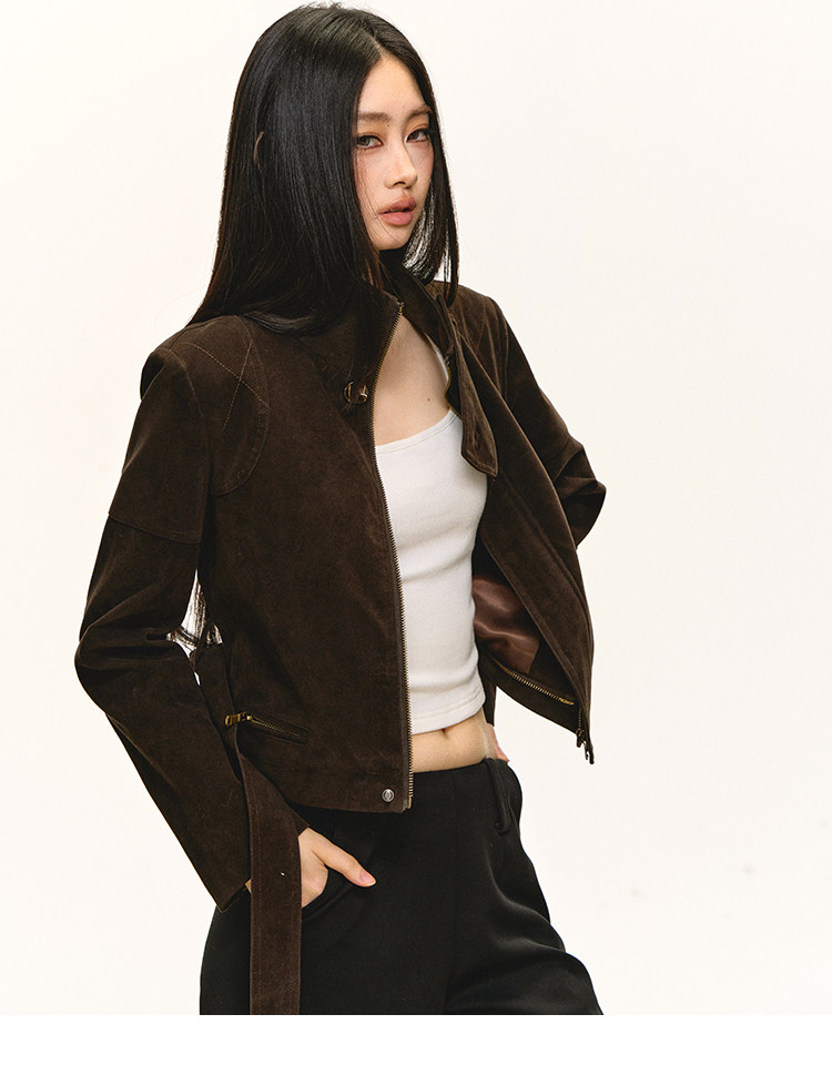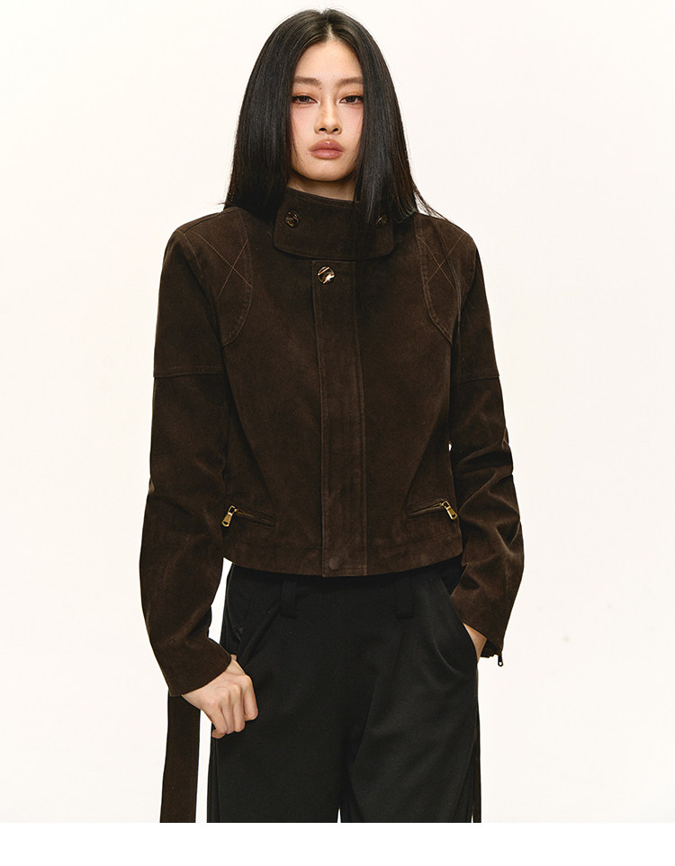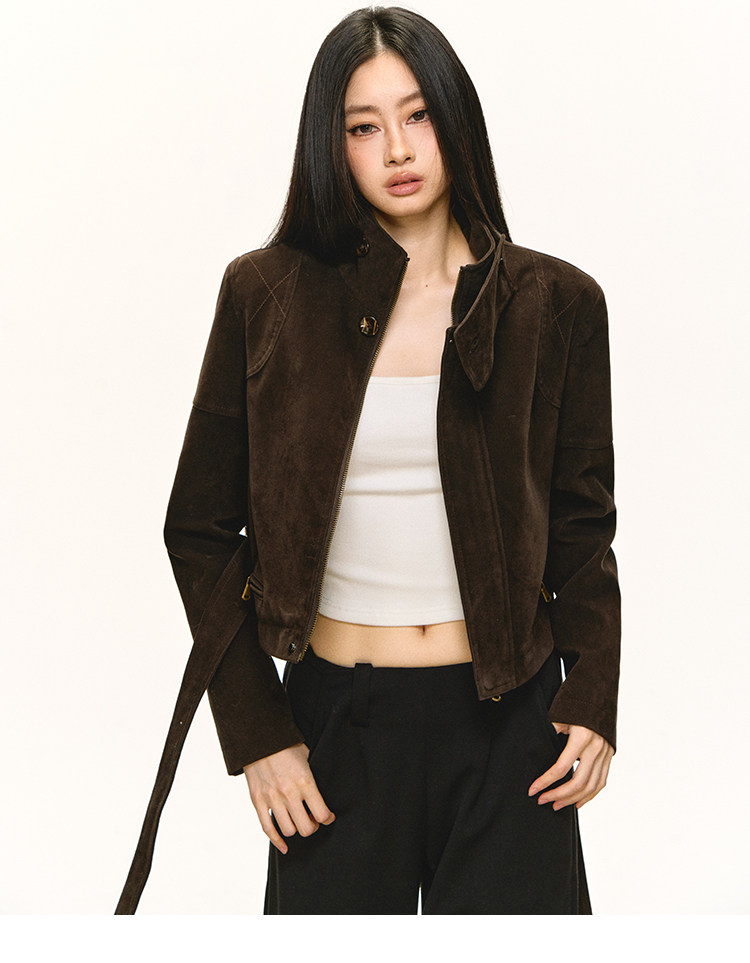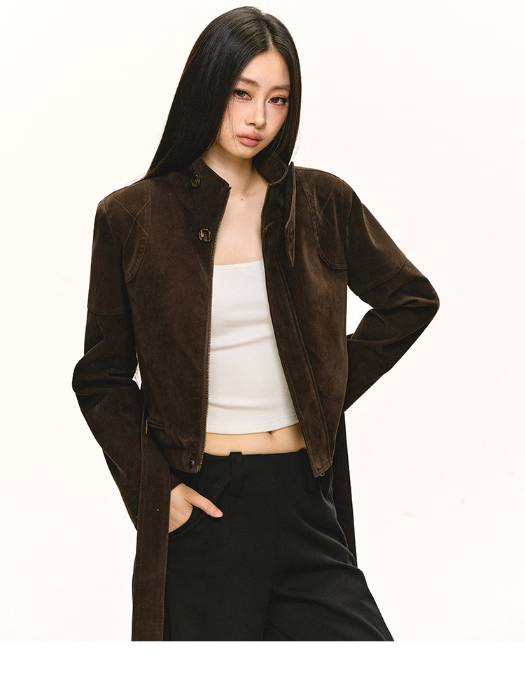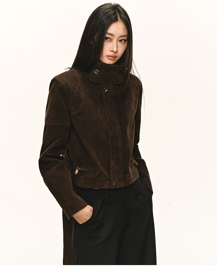 Anna Aneae Stand-up Collar Suede PU Jacket