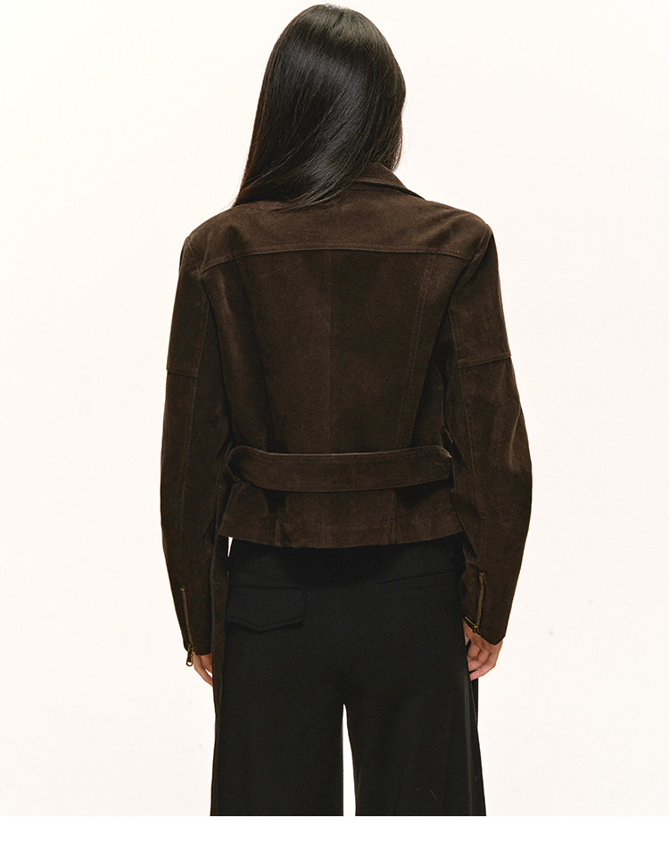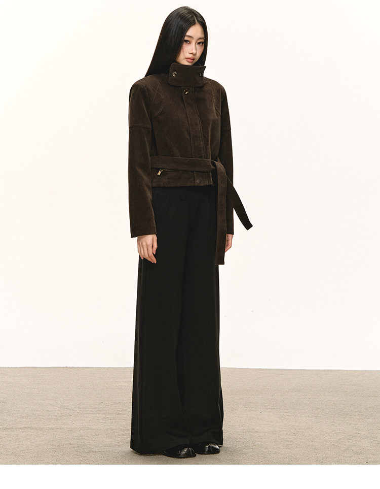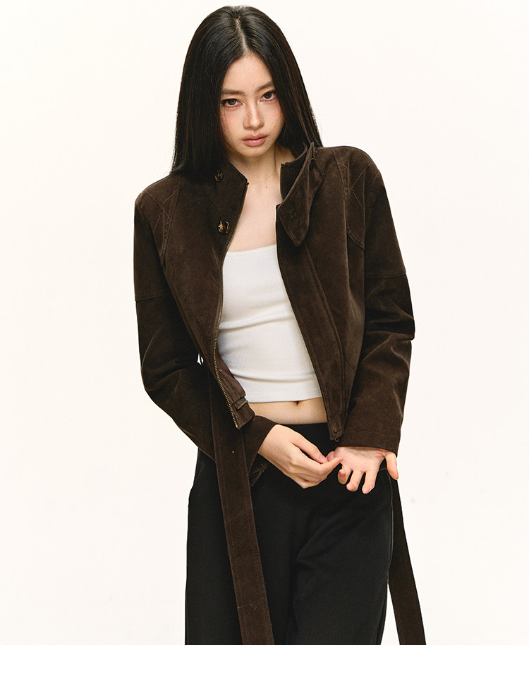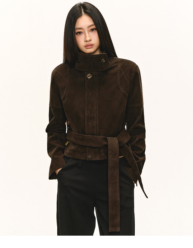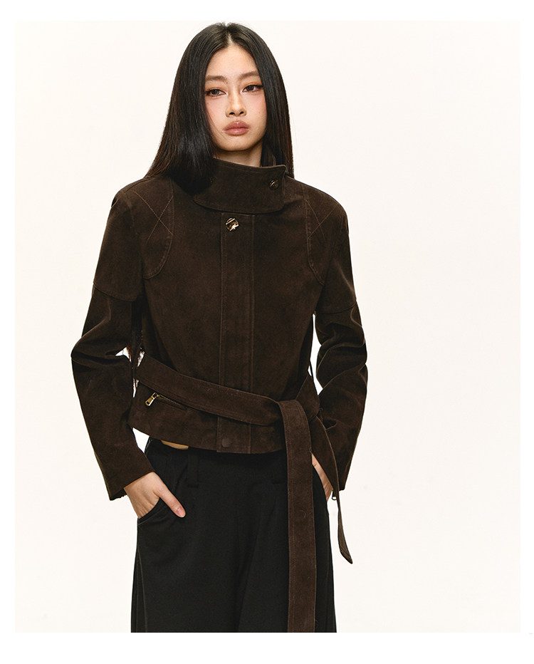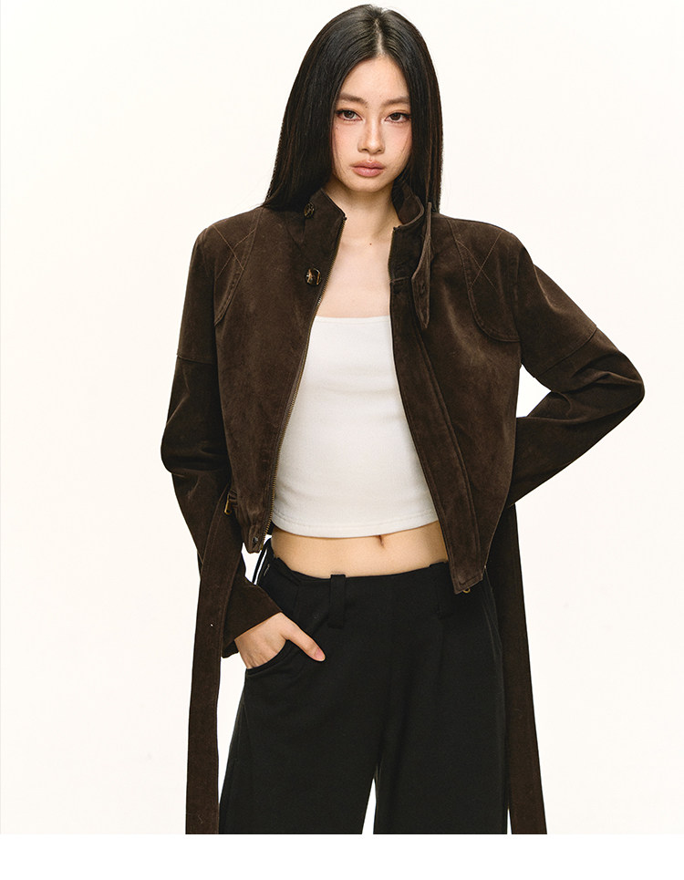 Anna Aneae Stand-up Collar Suede PU Jacket