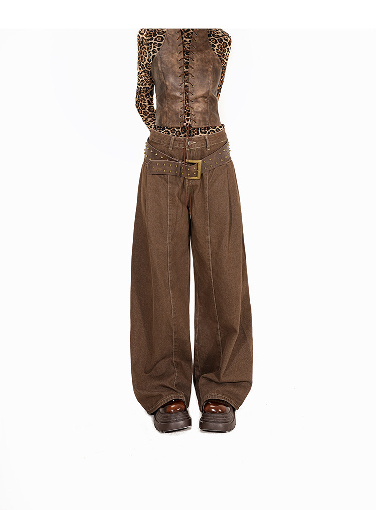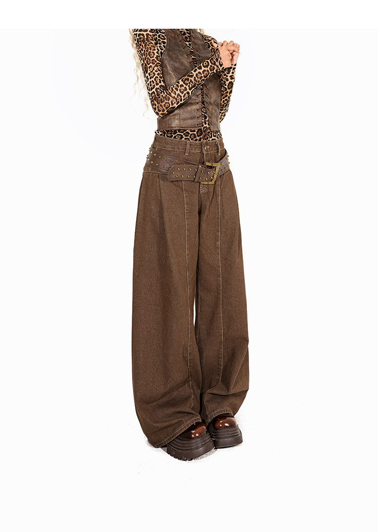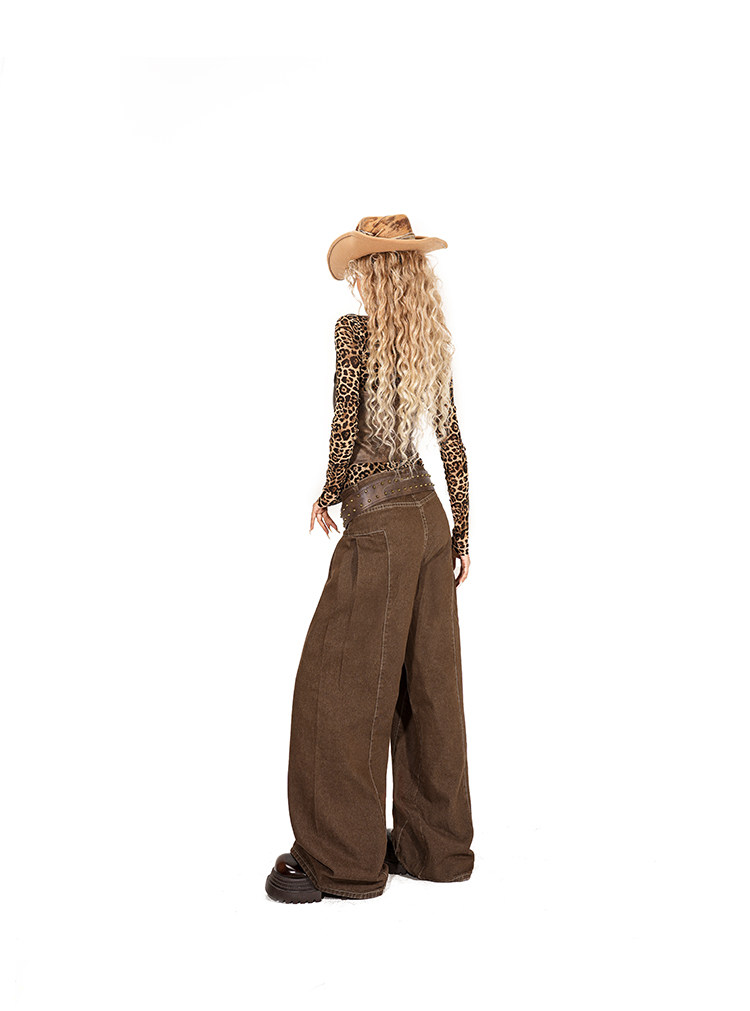 Arielink Leopard Print Mesh Tee Leather Vest Top