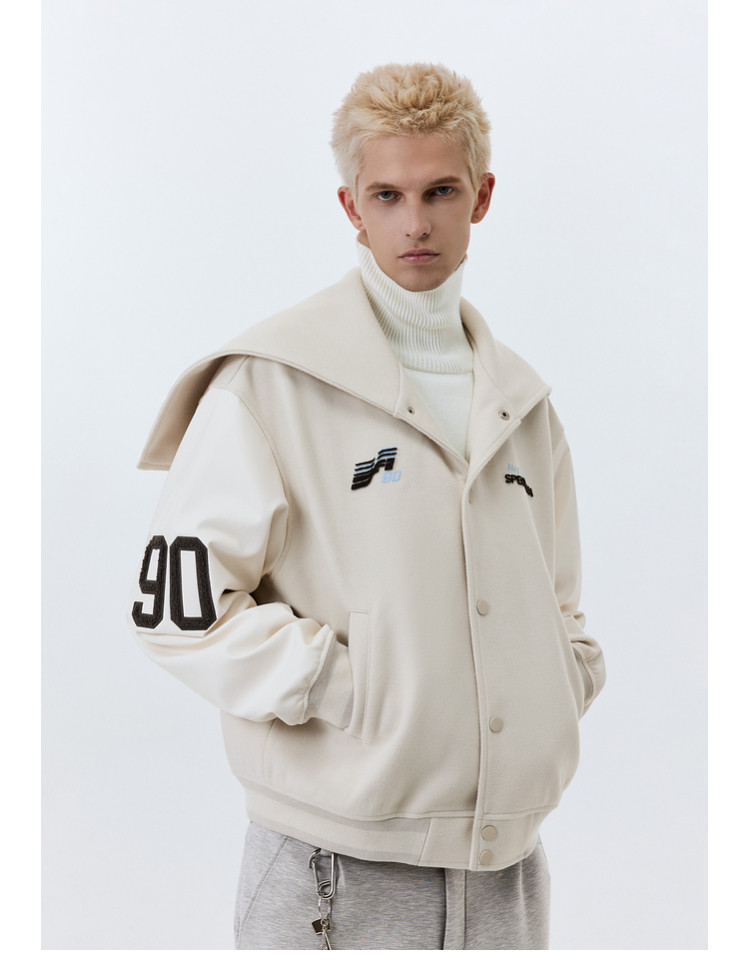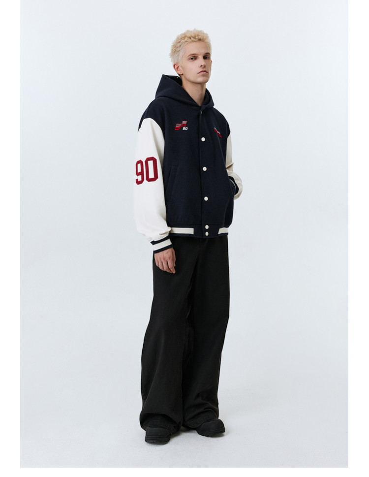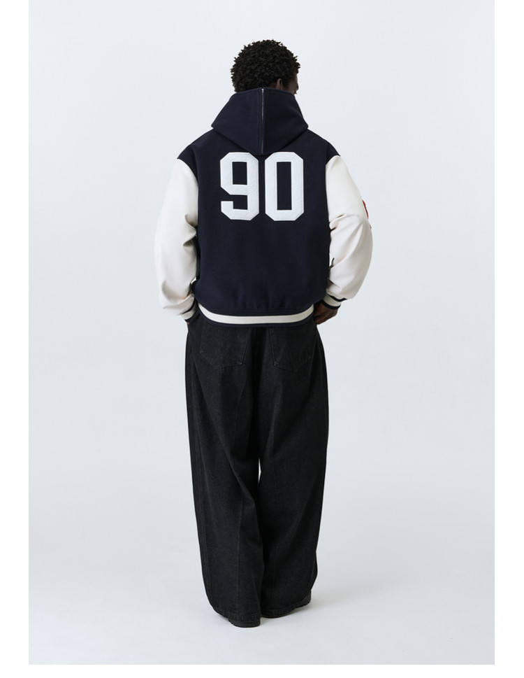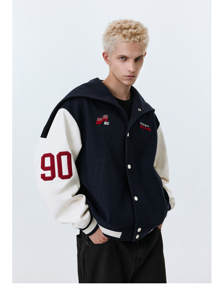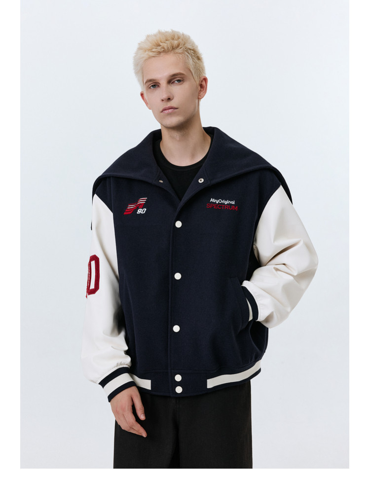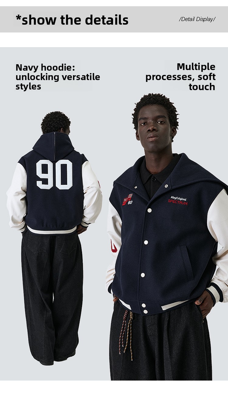 ATRY Navy Collar Heavy Embroidered Jacket Baseball Jersey