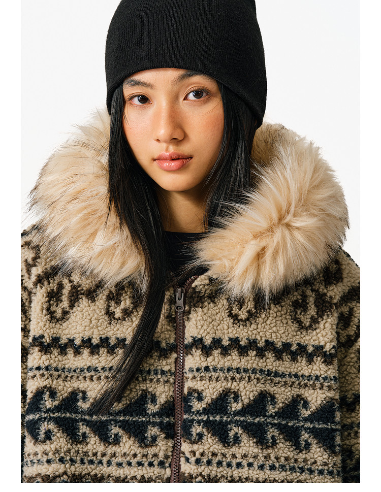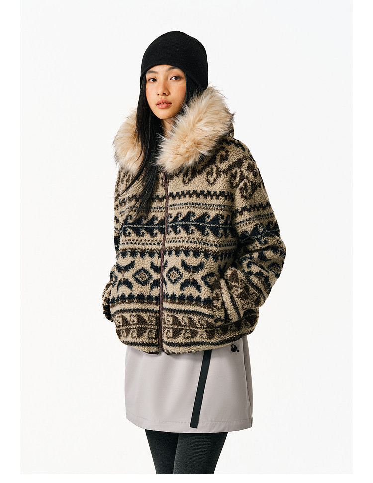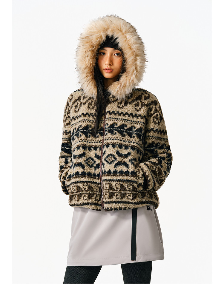 ATRY Vintage Premium Fair Island Hooded Fur Collar Jacket