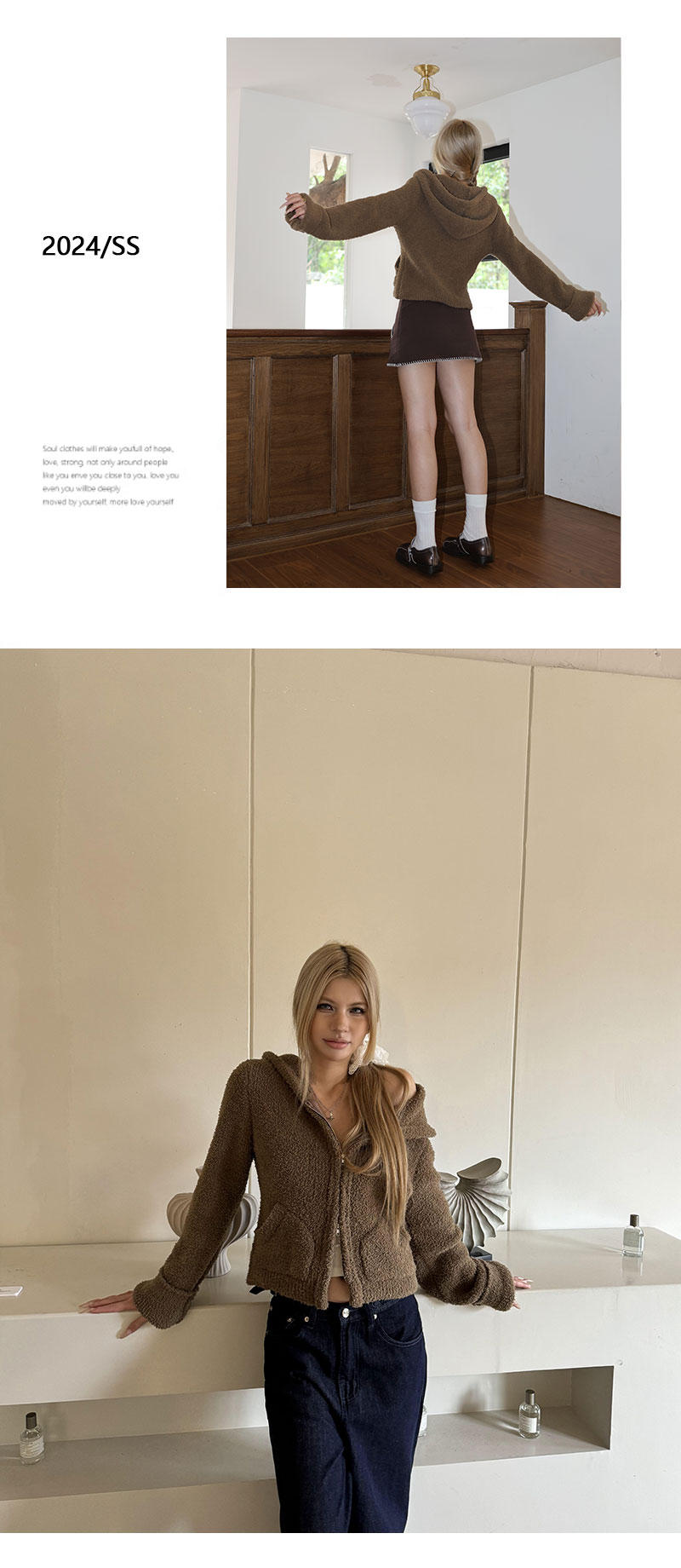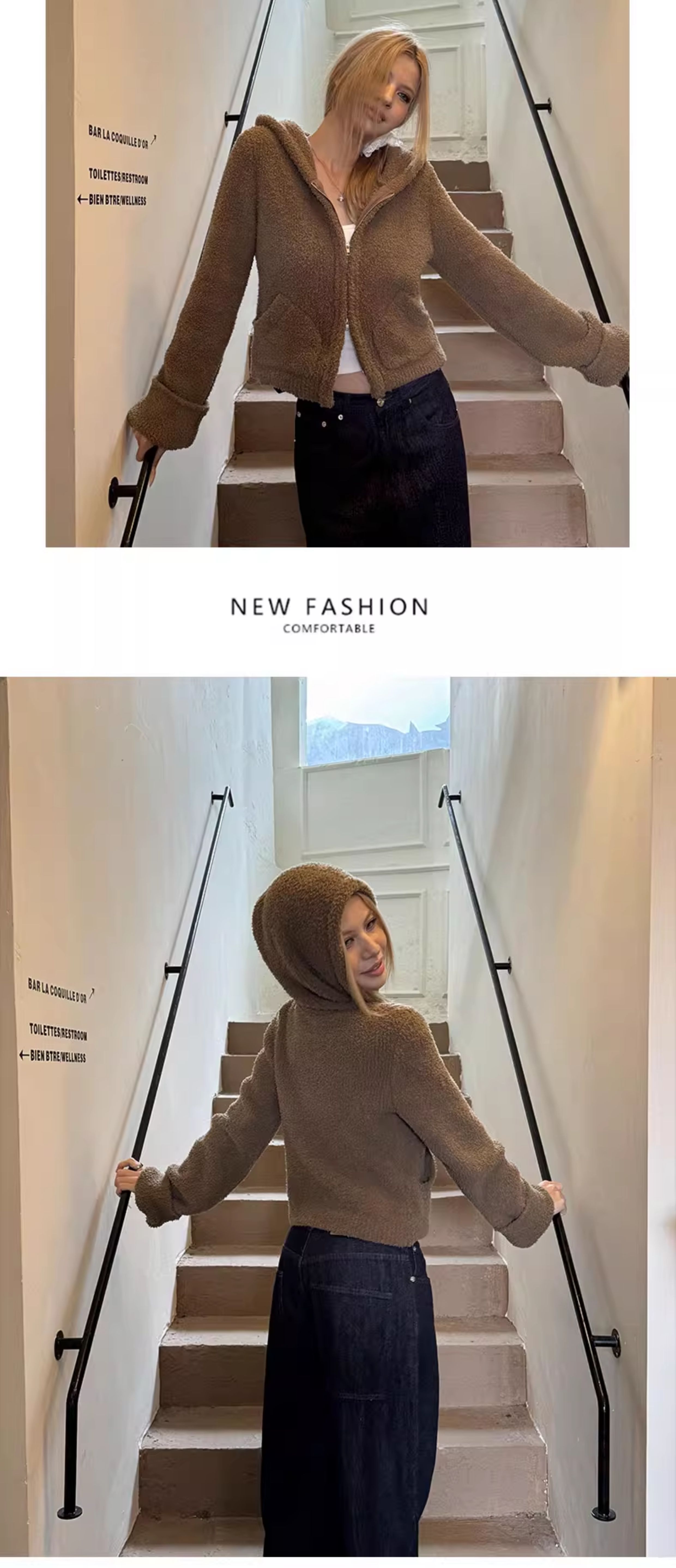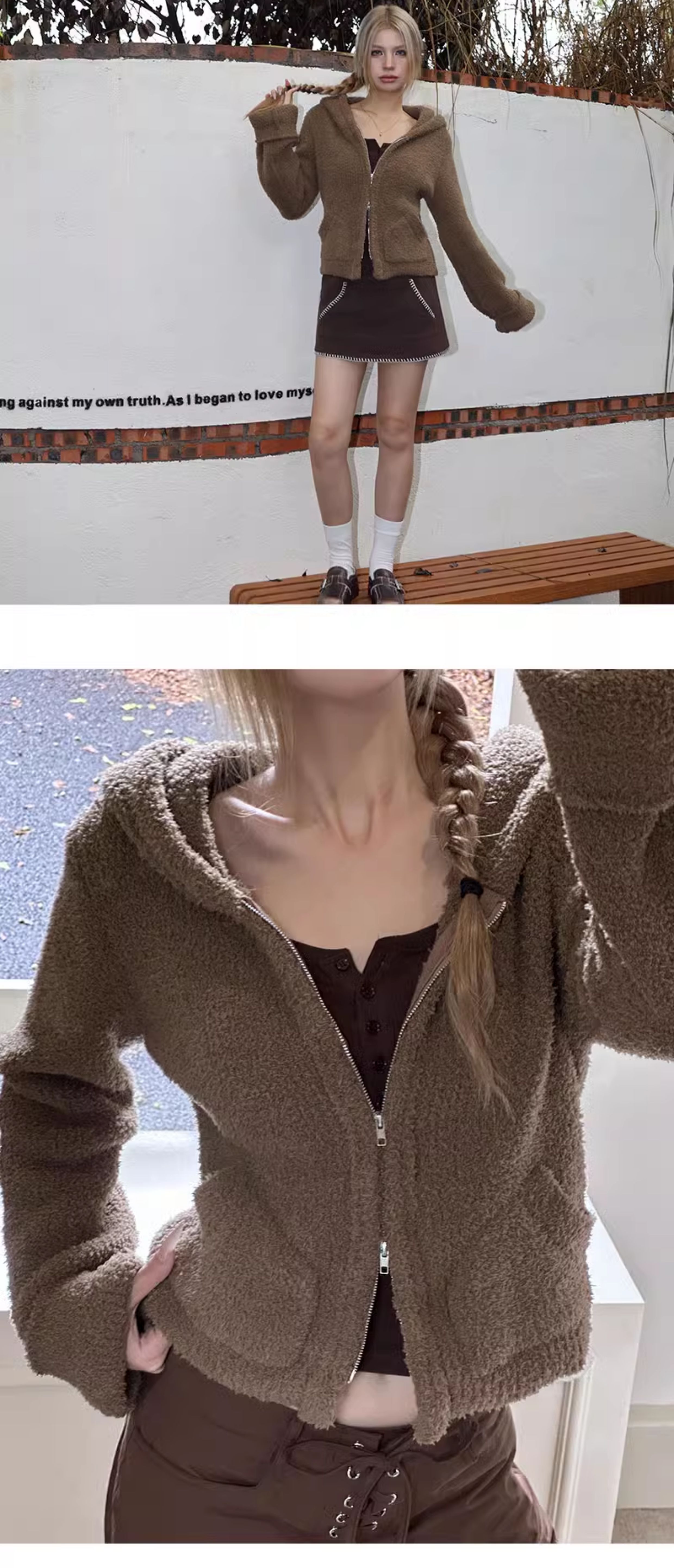 Audwyn Soft Waxy Vintage Hooded Double Zip Knitted Cardigan Jacket