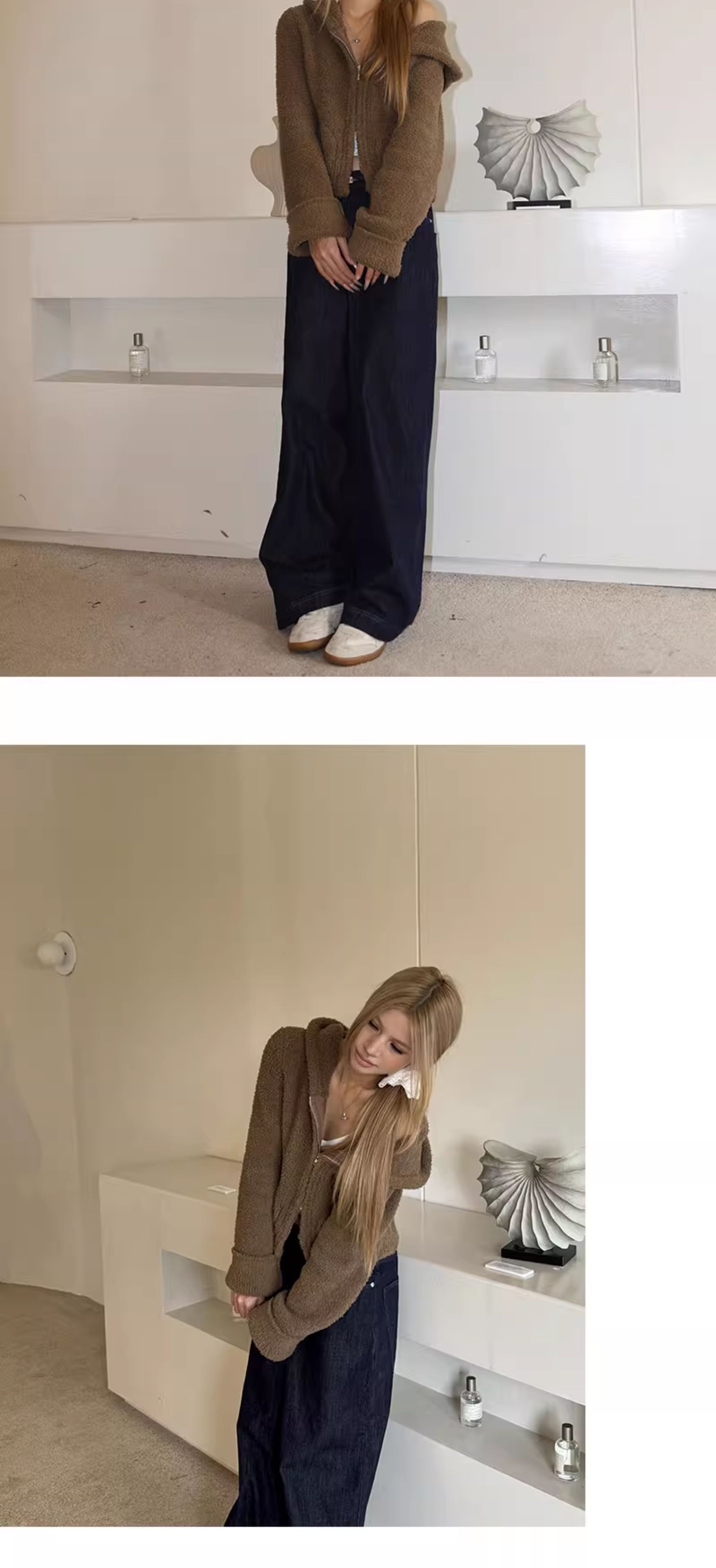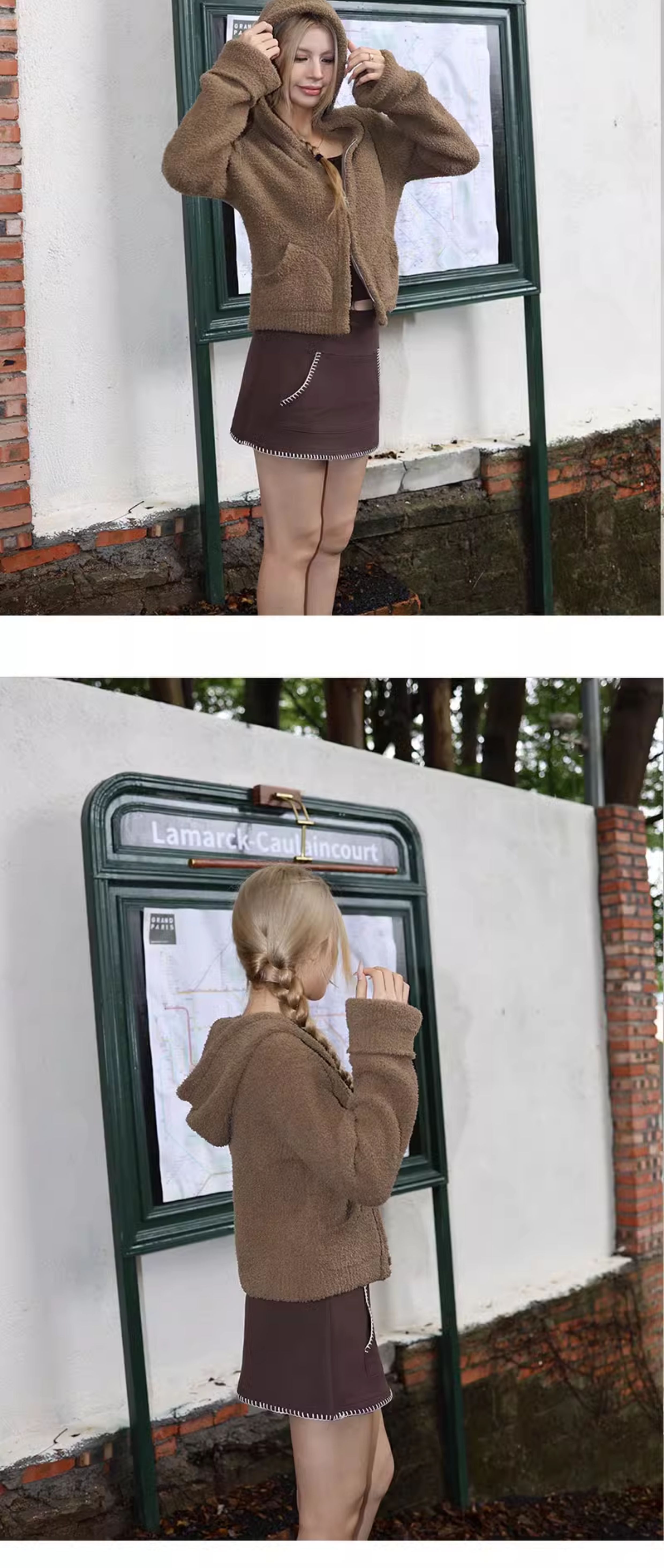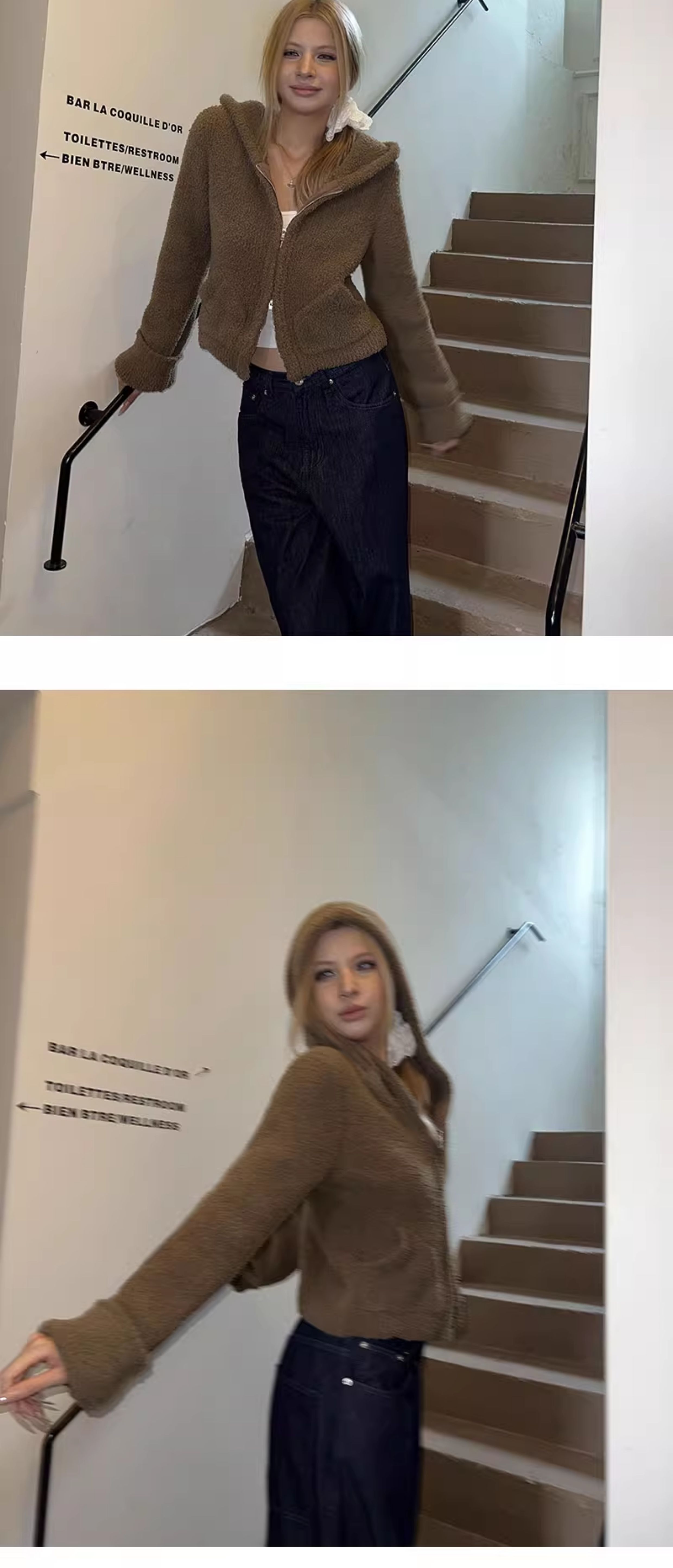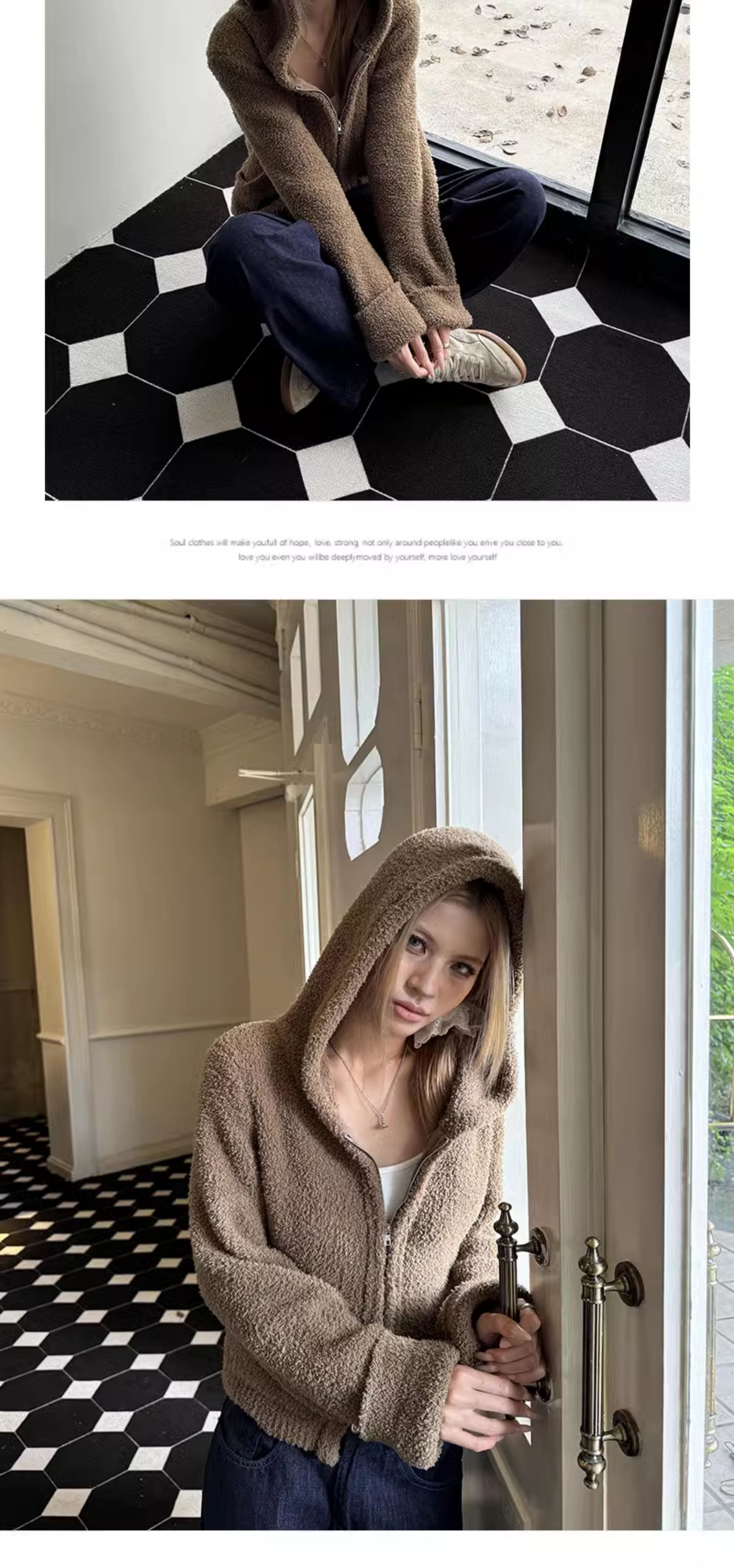 Audwyn Soft Waxy Vintage Hooded Double Zip Knitted Cardigan Jacket