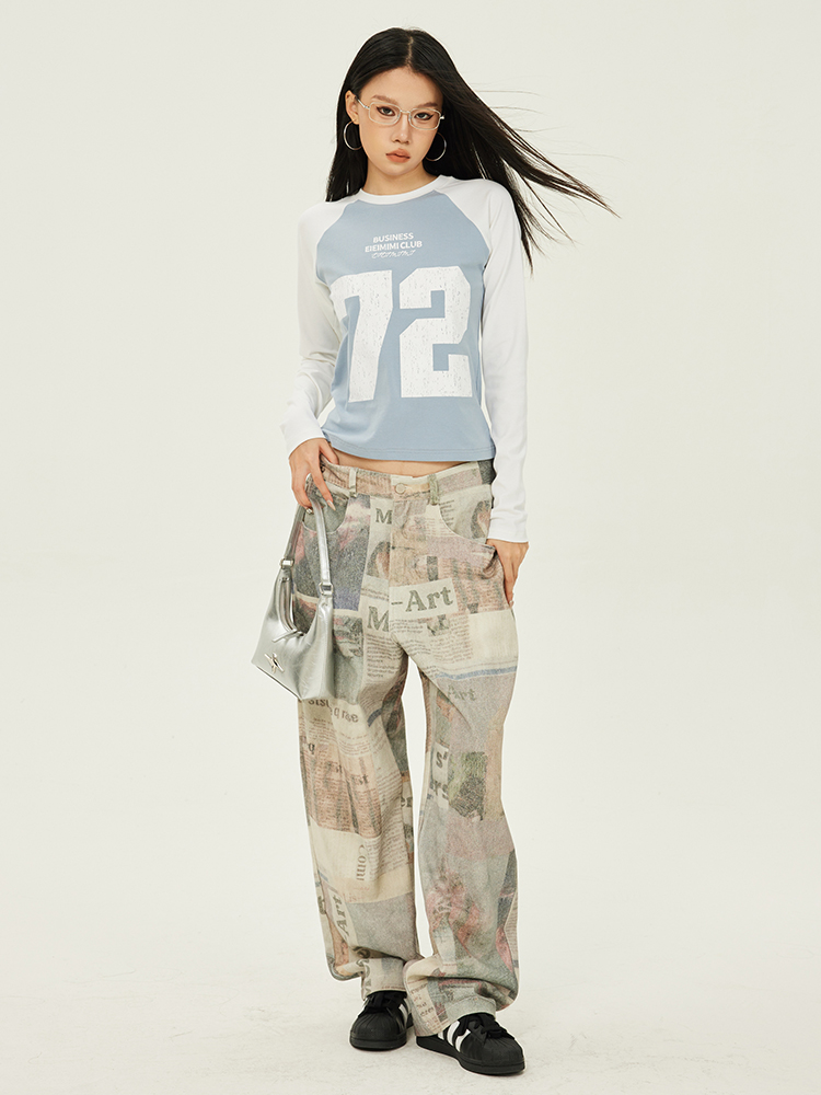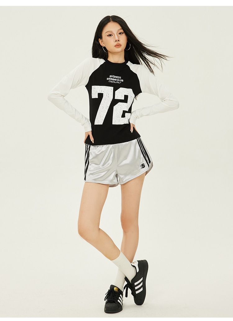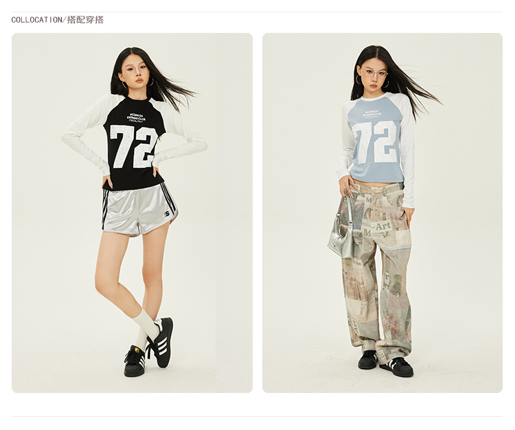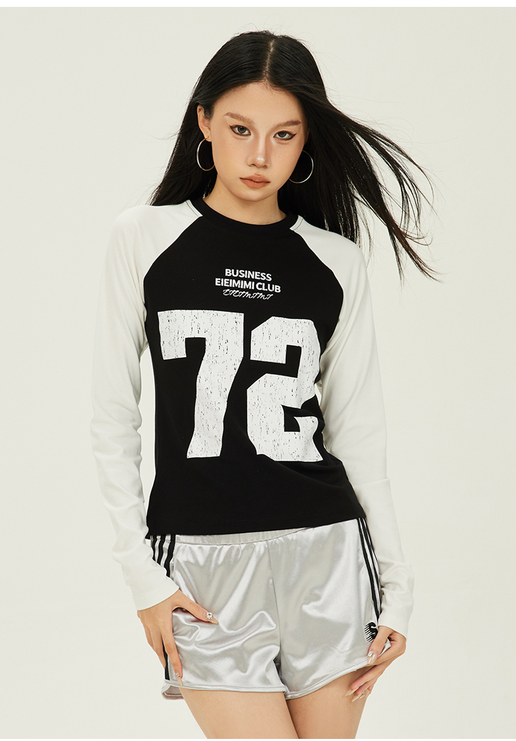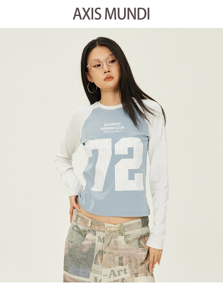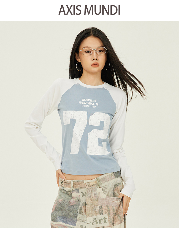 Axis Mundi American Retro Sporty Slim Long Sleeve T-Shirt Women's Versatile Casual Design Sense Trend Top