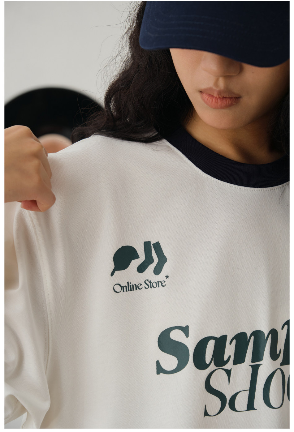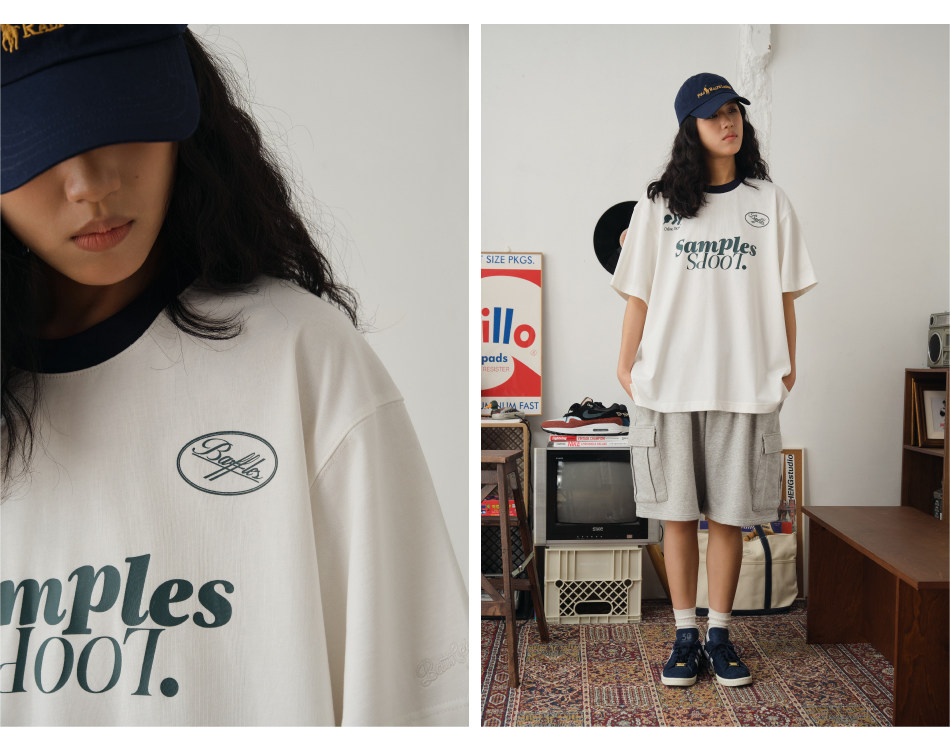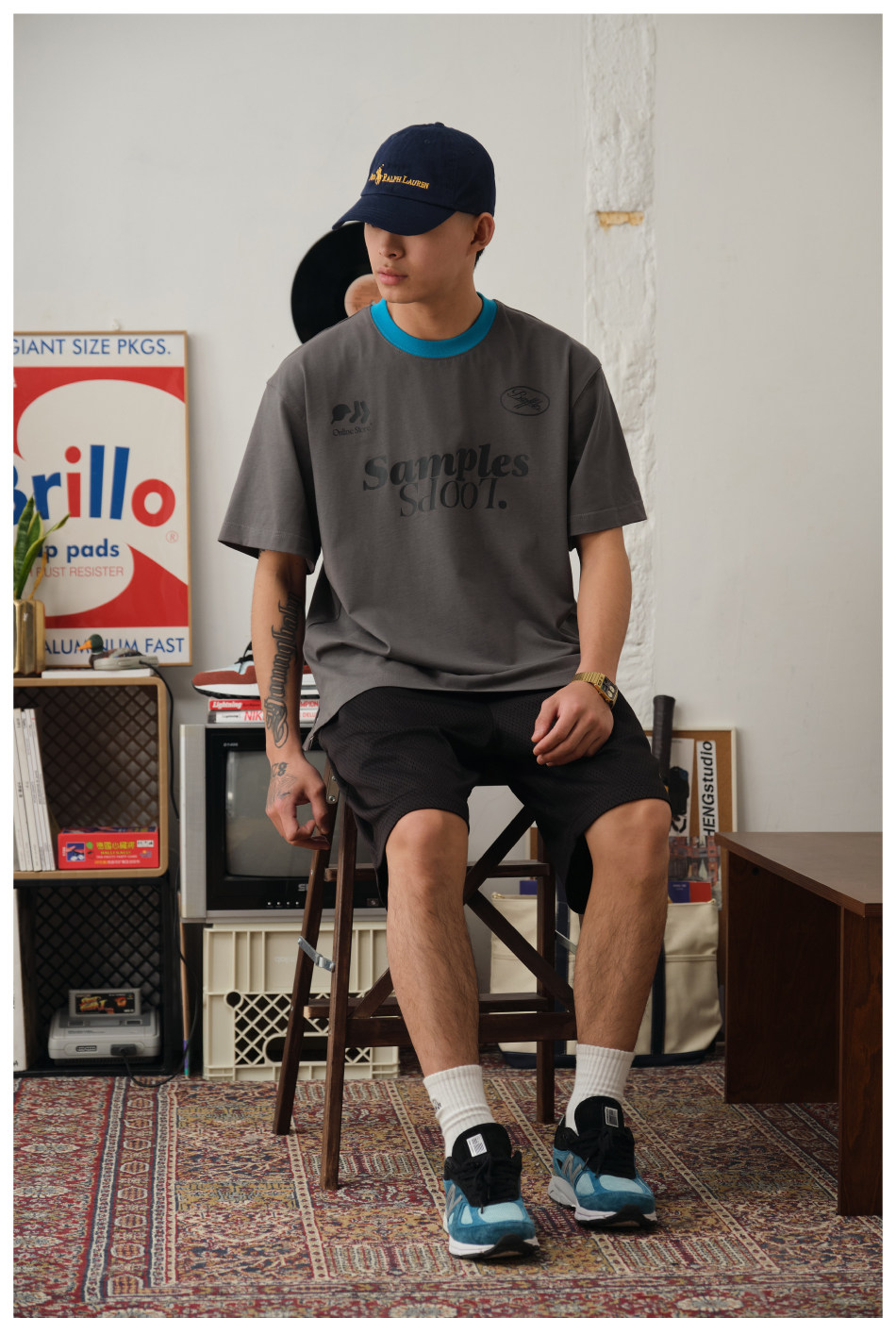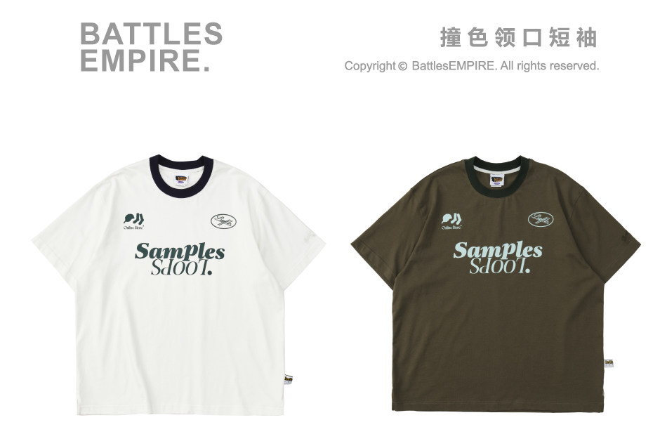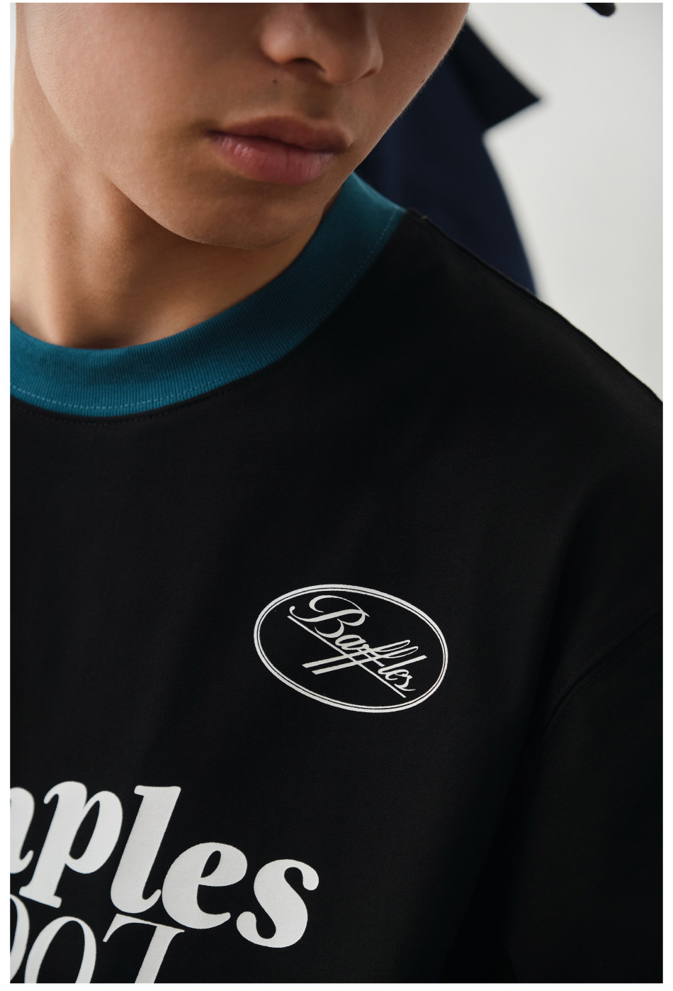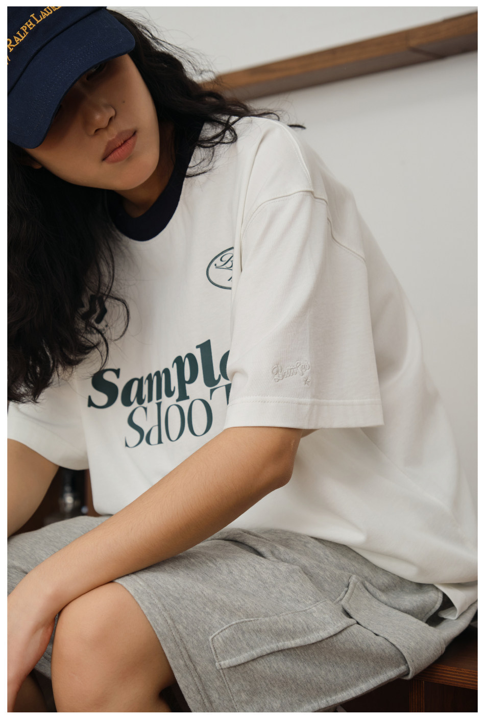 Battles Contrasting Neckline Double Yarn Retro Tee