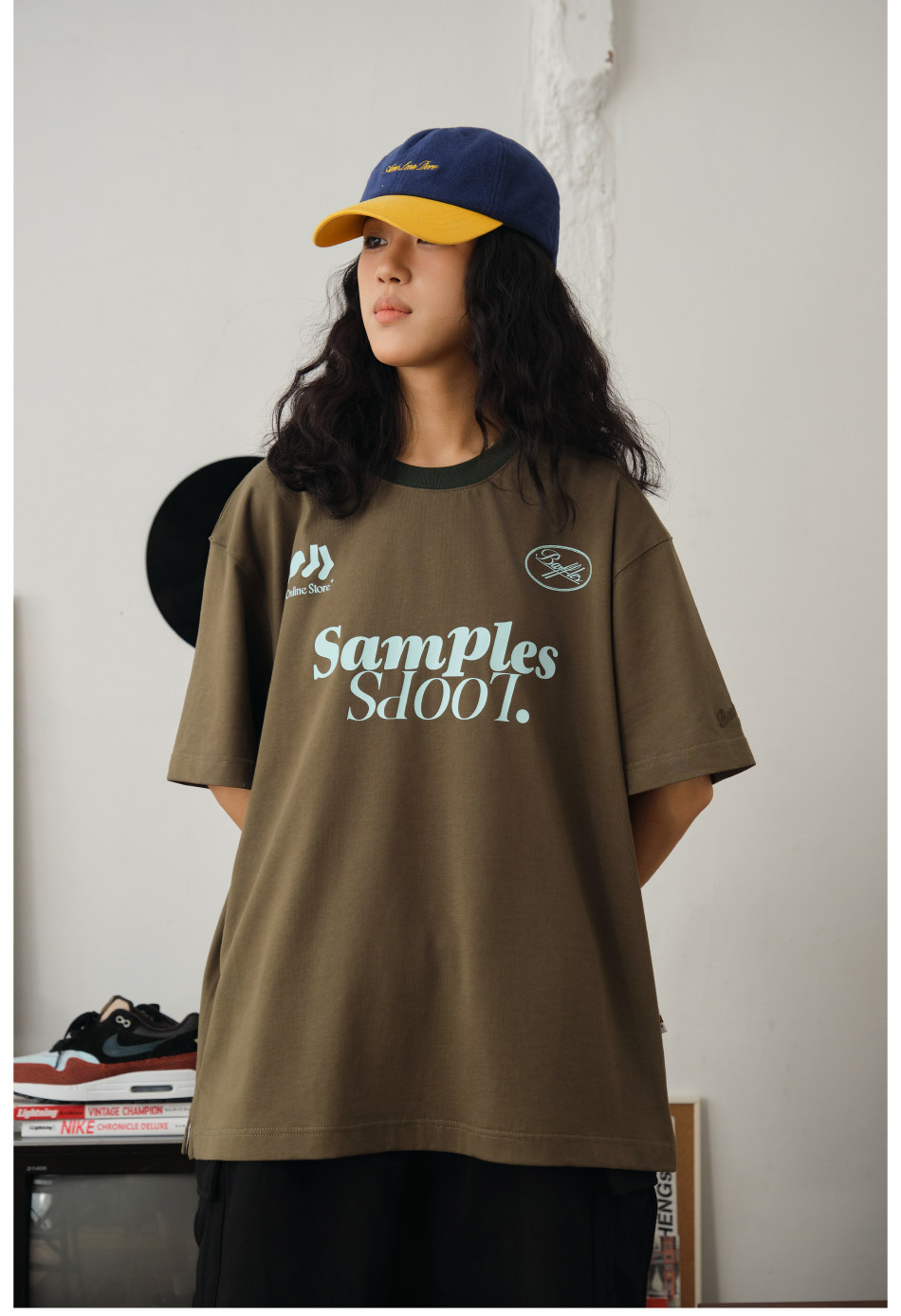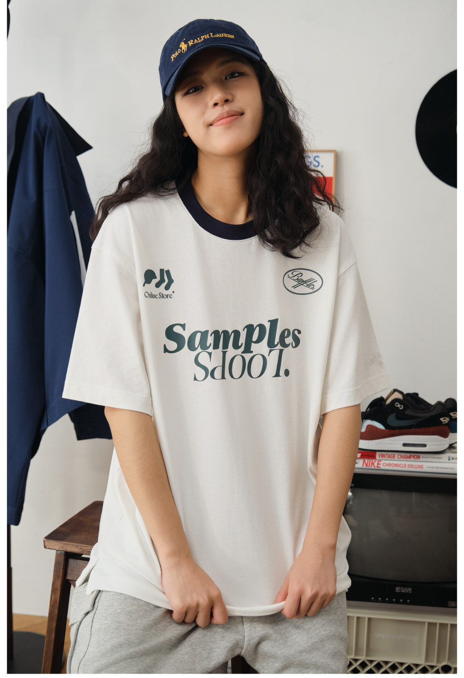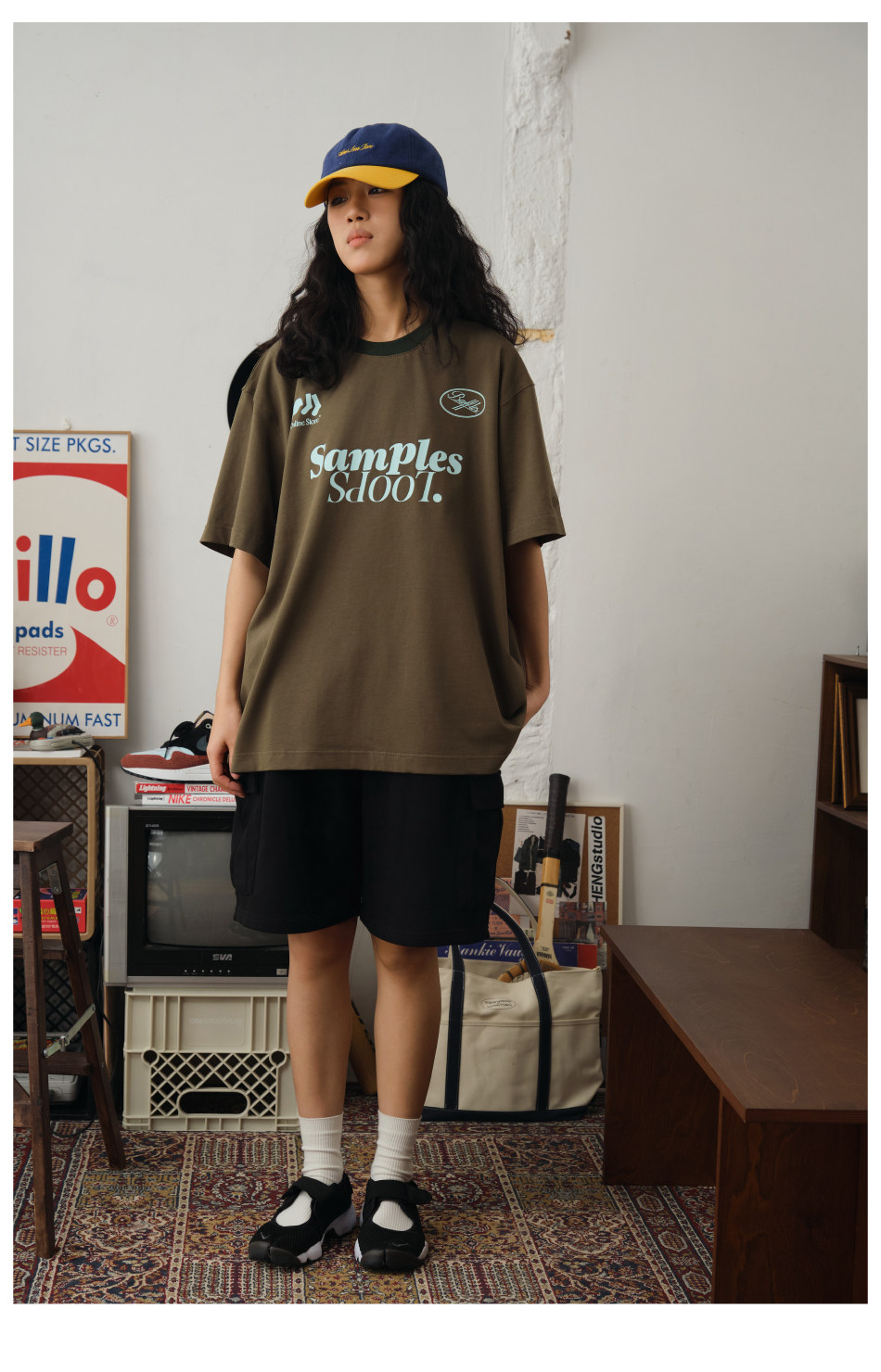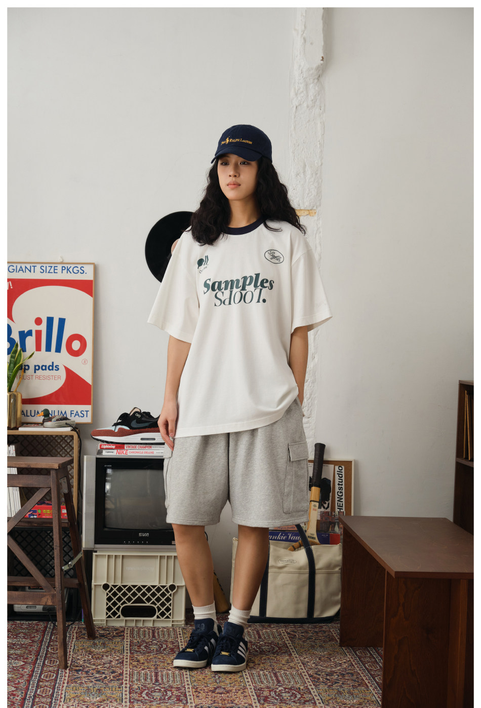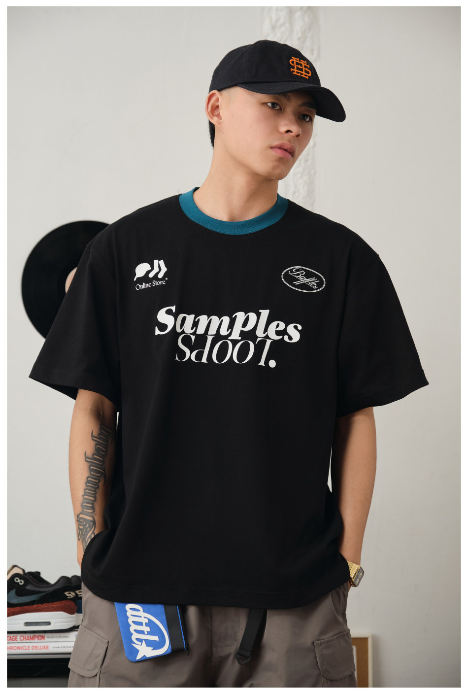 Battles Contrasting Neckline Double Yarn Retro Tee