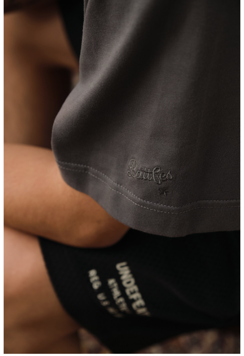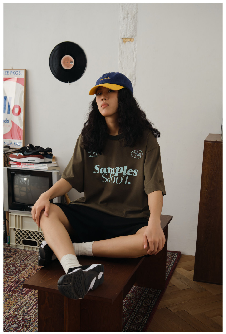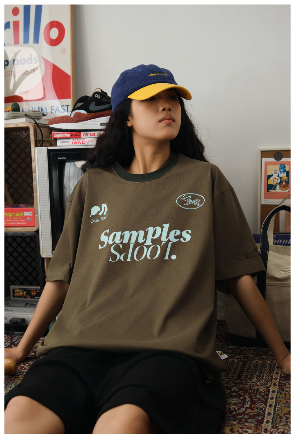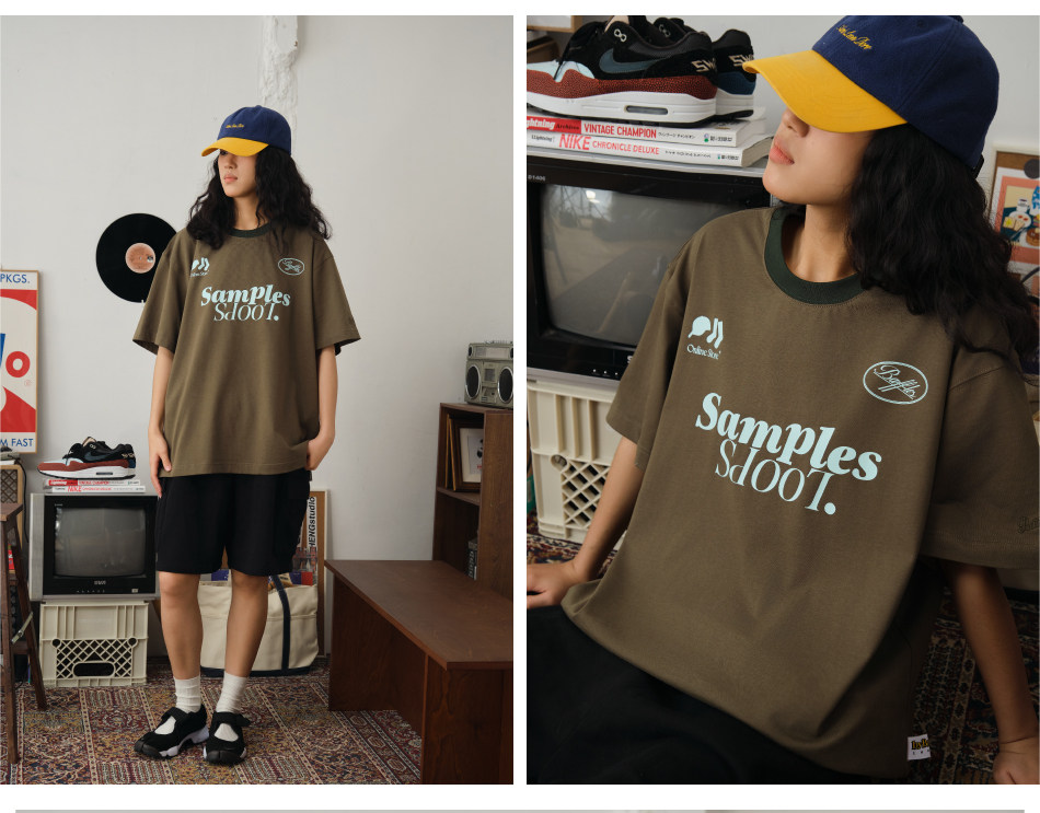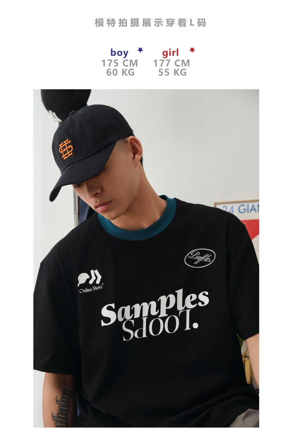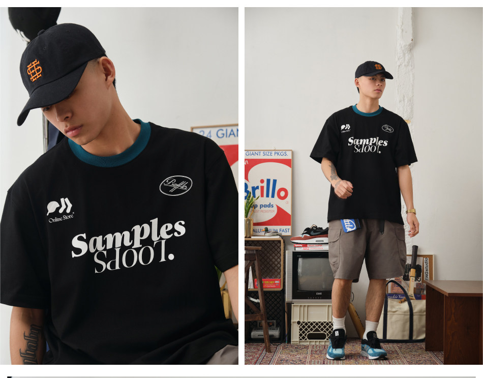 Battles Contrasting Neckline Double Yarn Retro Tee