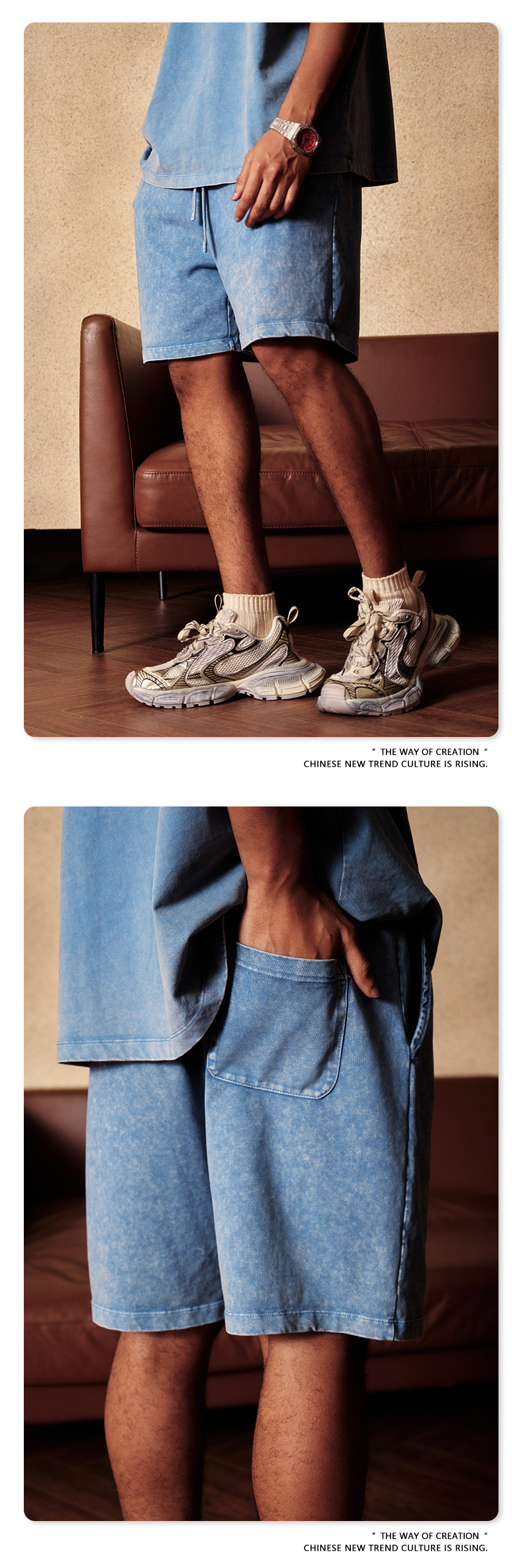 BE Five-point Washed Snowy Shorts