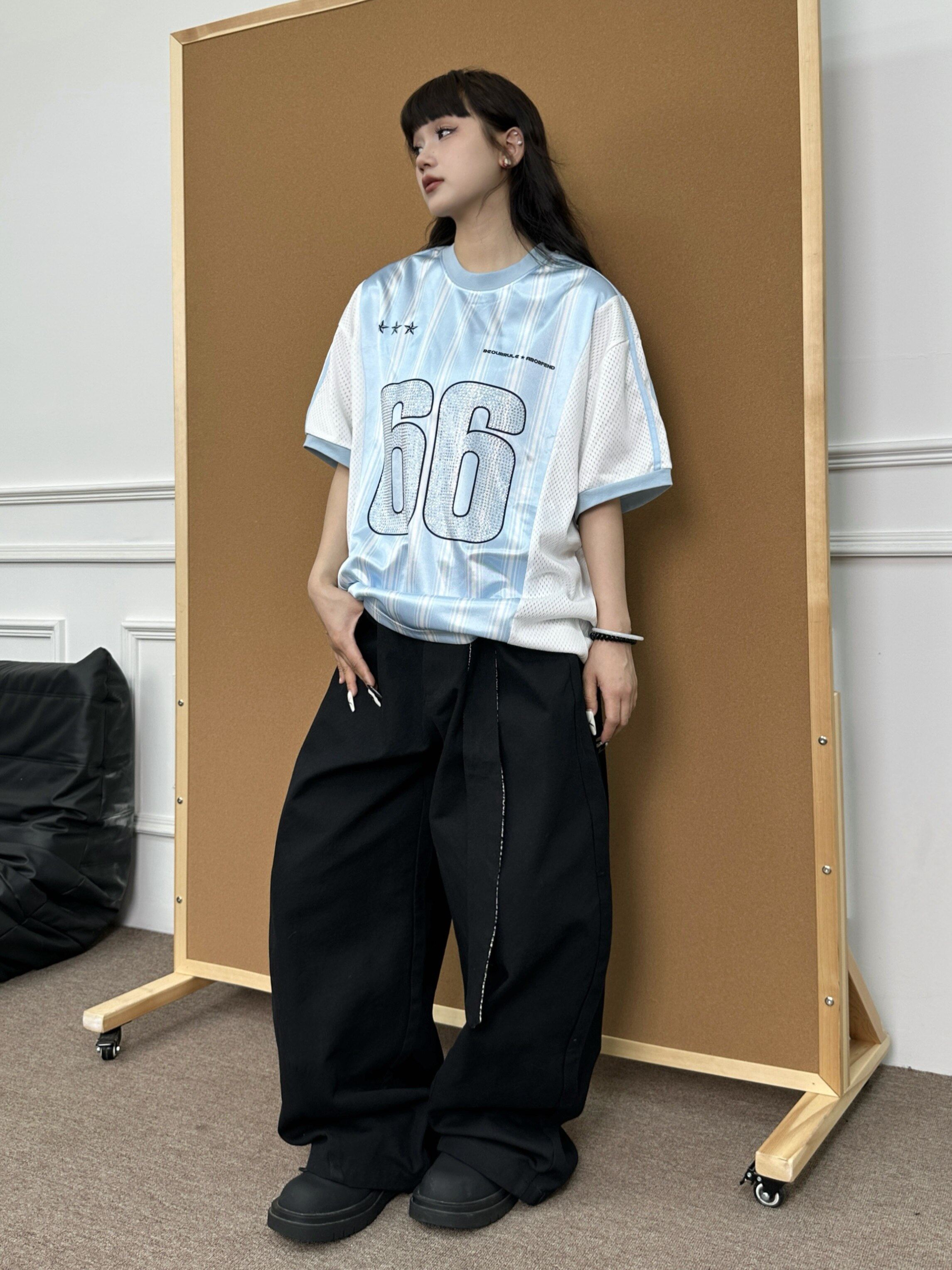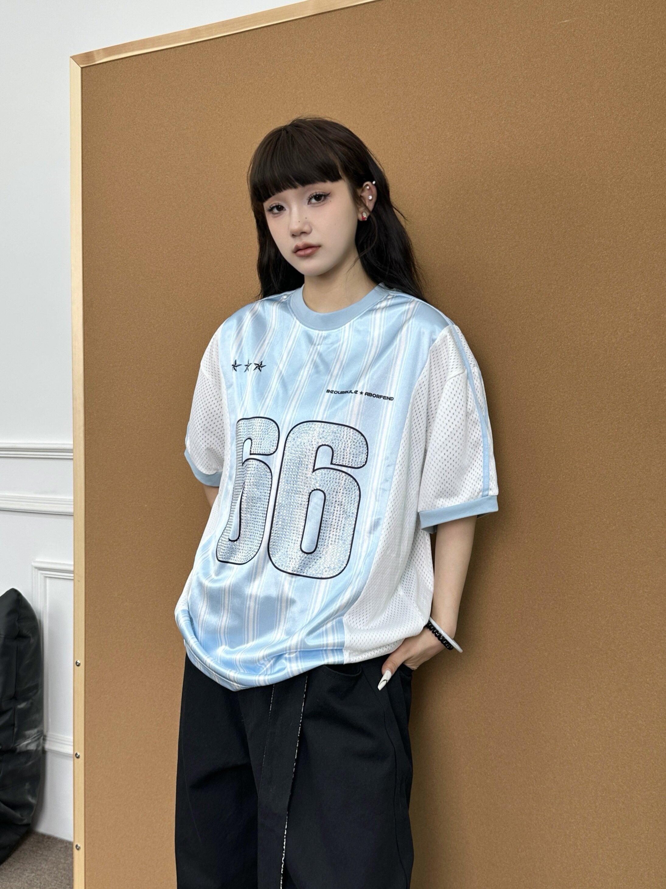 BeOurRule Flash Drill Mesh V-neck Loose Tee