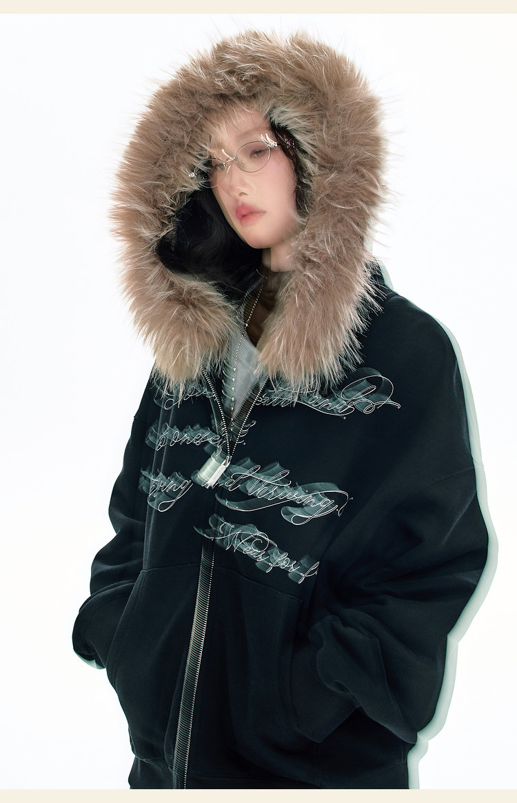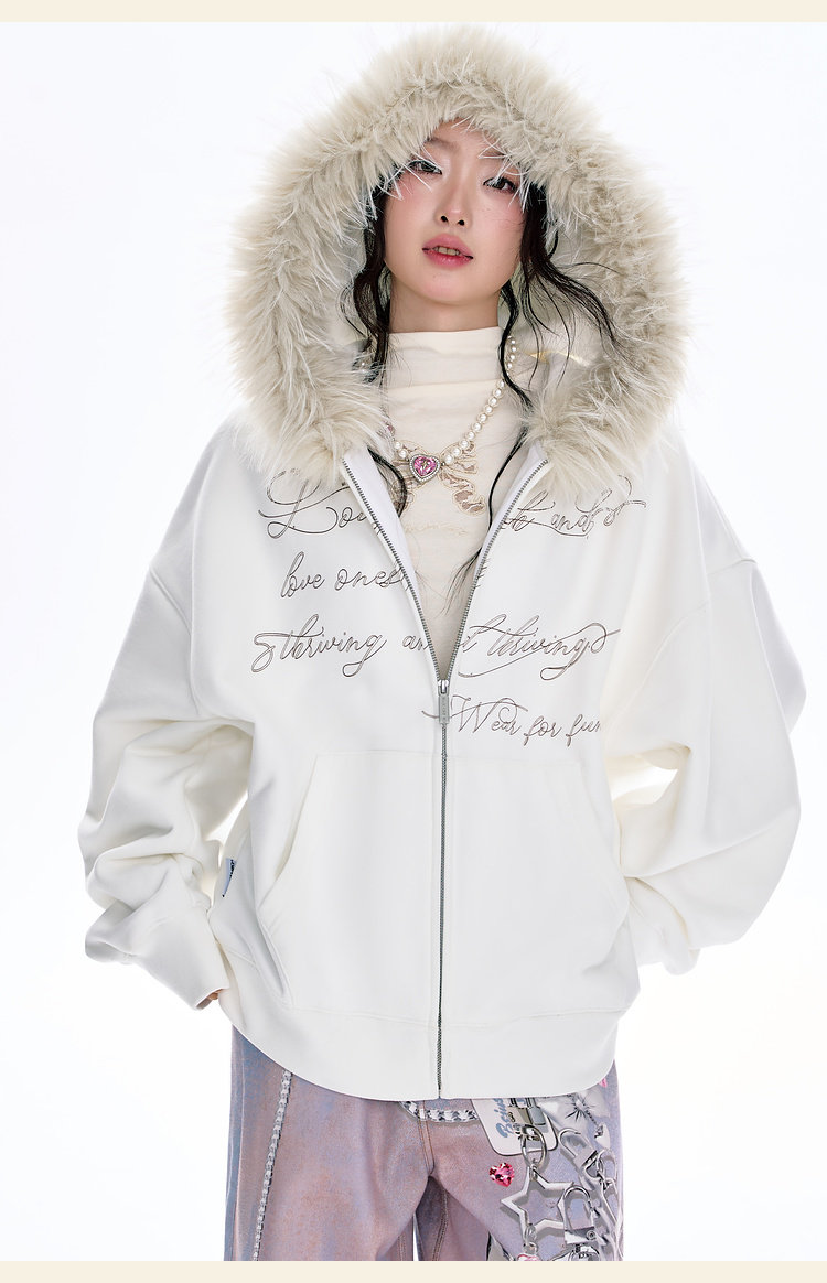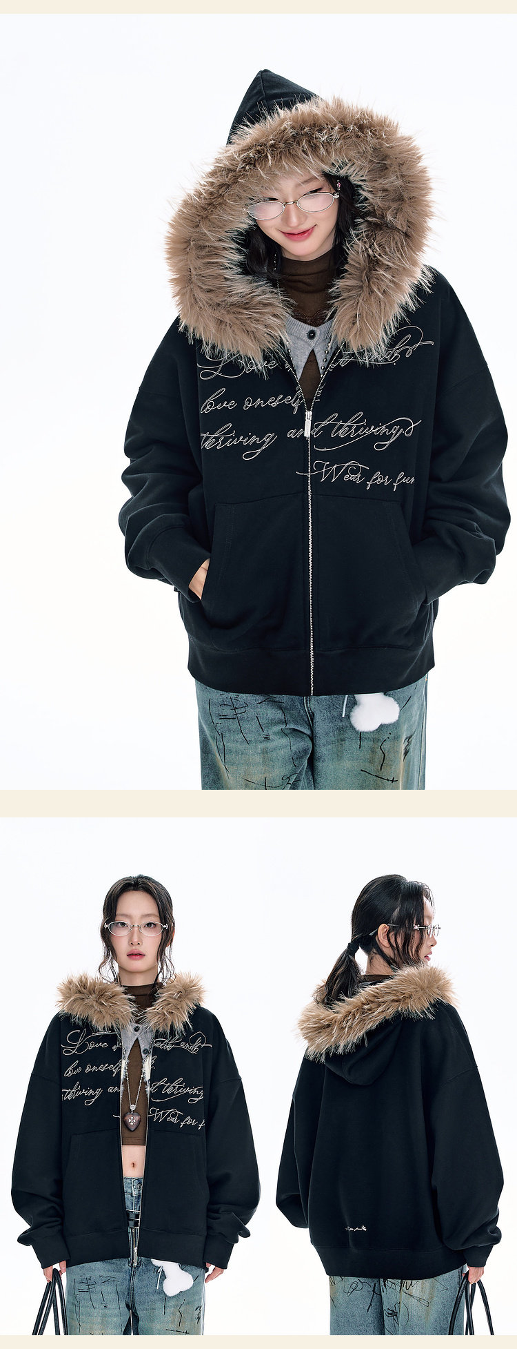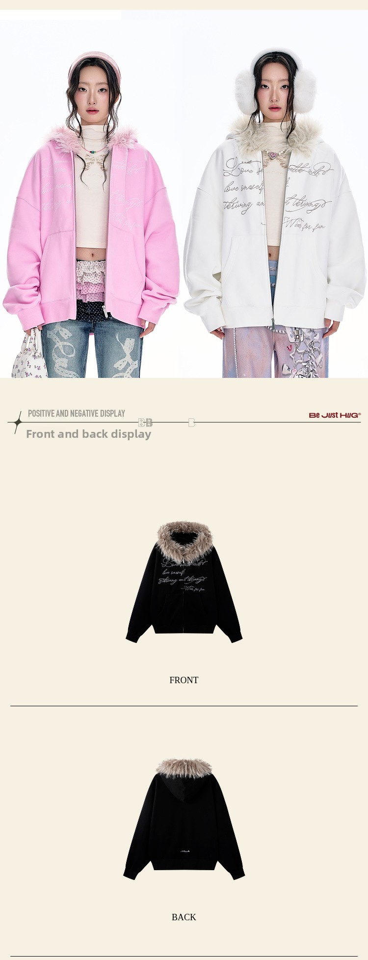 BJHG Vintage Fleece Collar Hooded Sweater Jacket