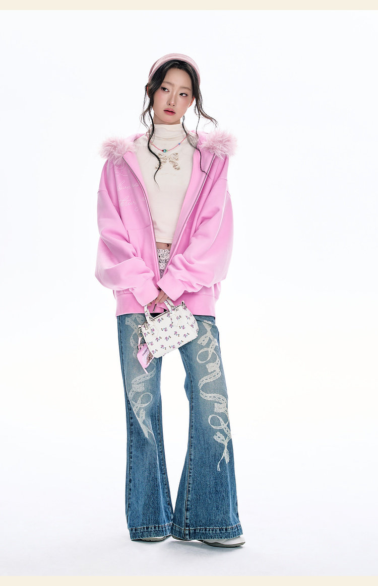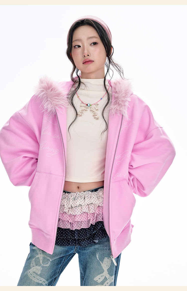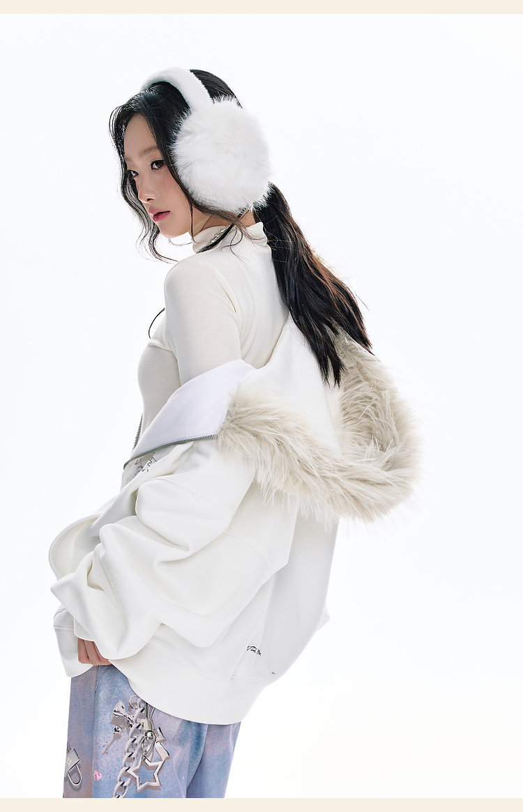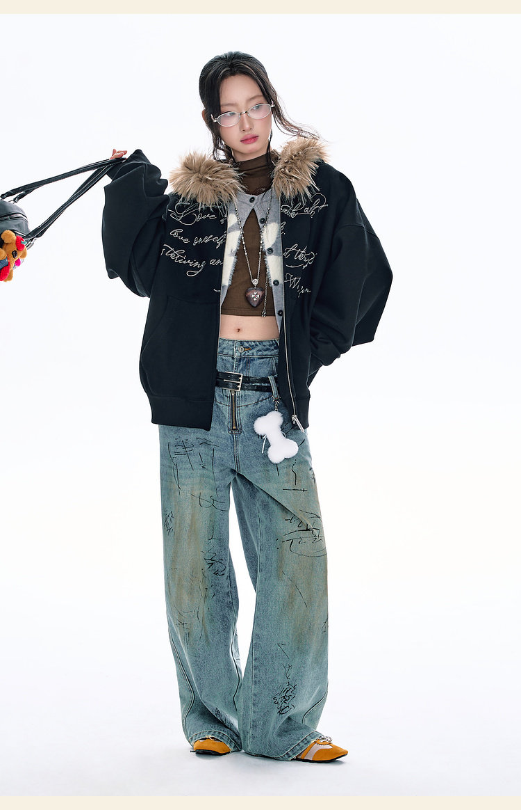 BJHG Vintage Fleece Collar Hooded Sweater Jacket