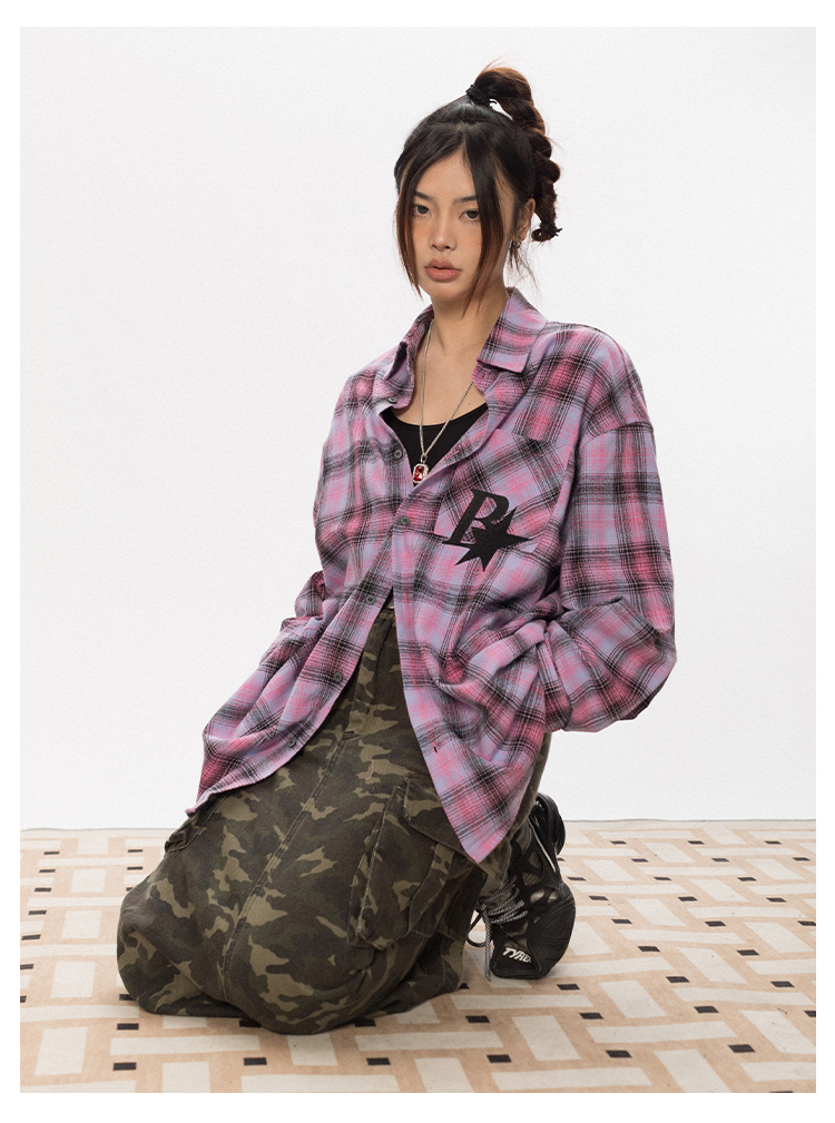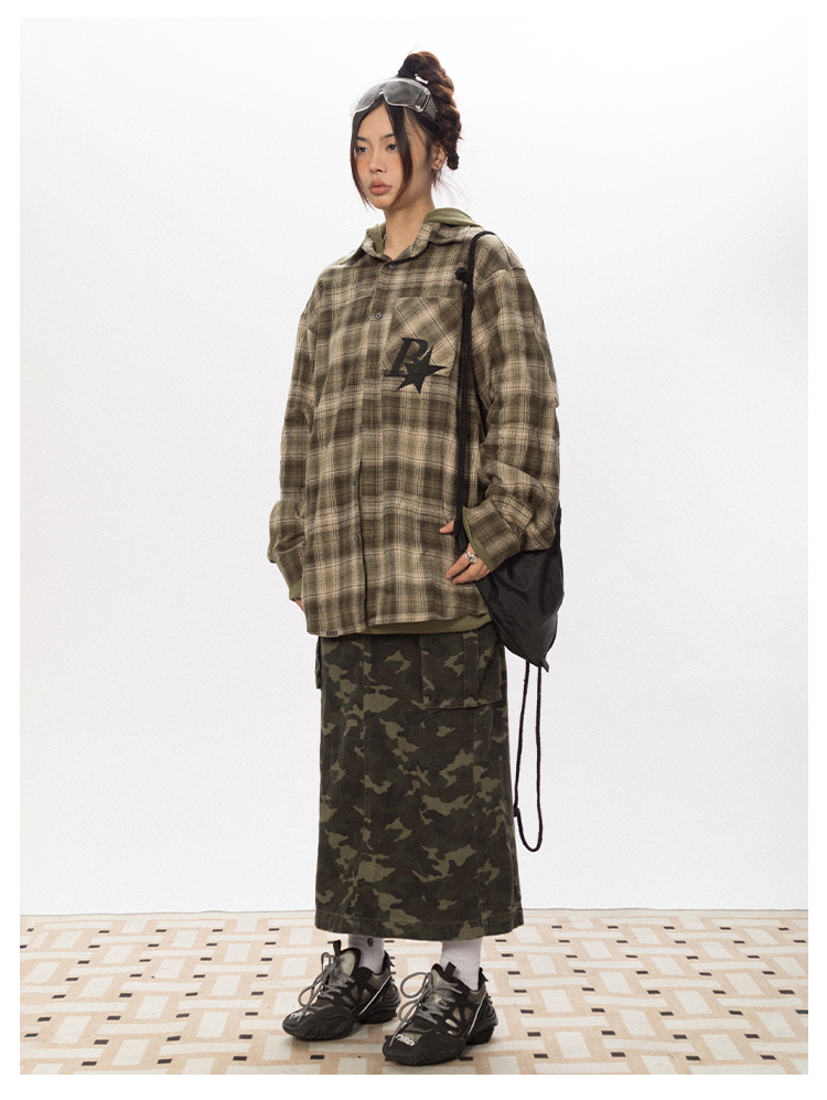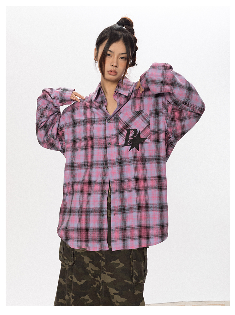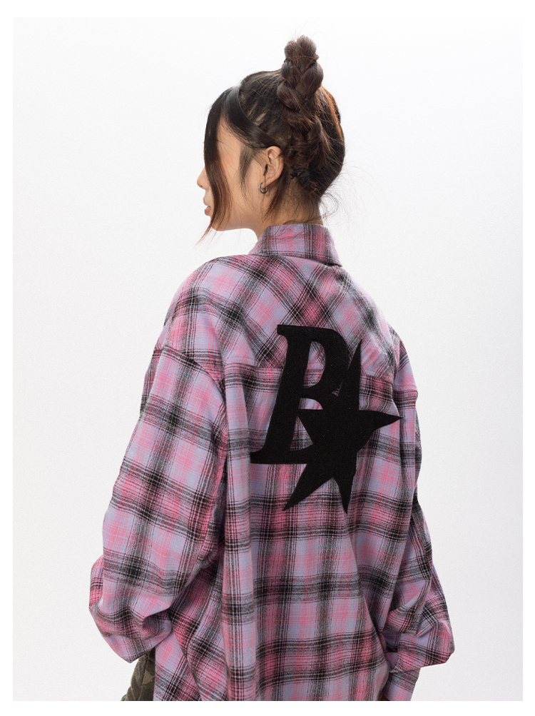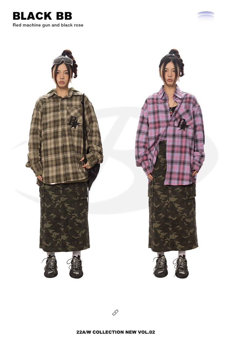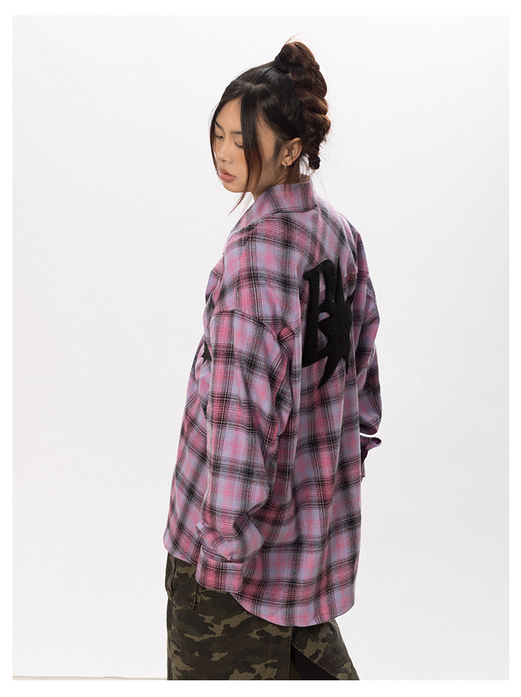 BLACKBB Vintage Plaid Flocked B Letter Print Shirt