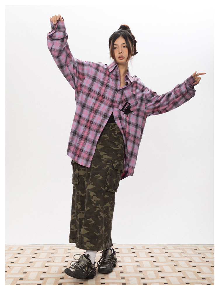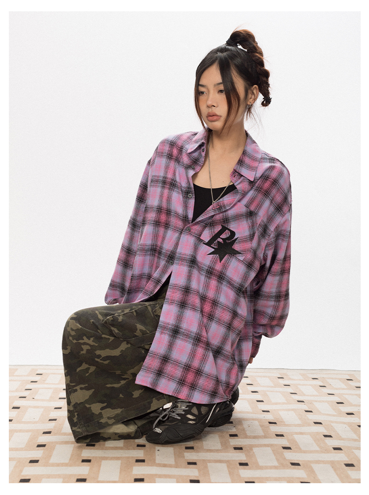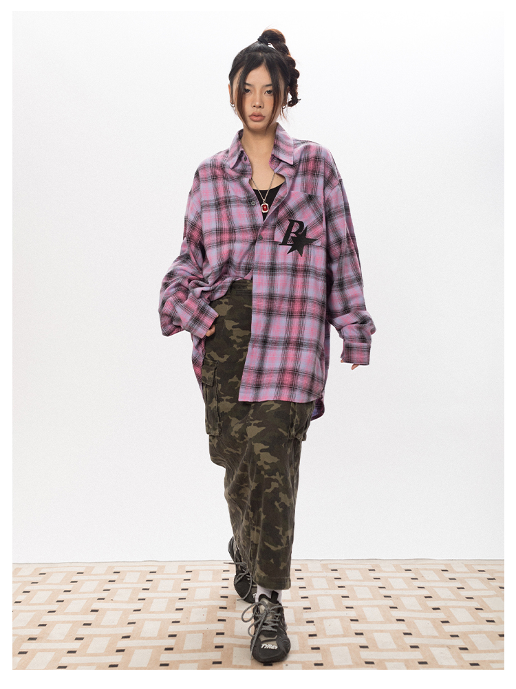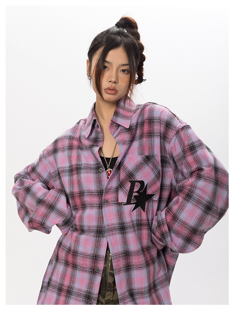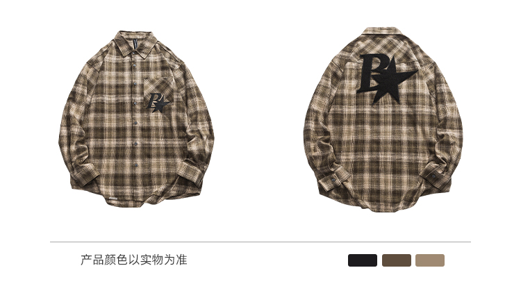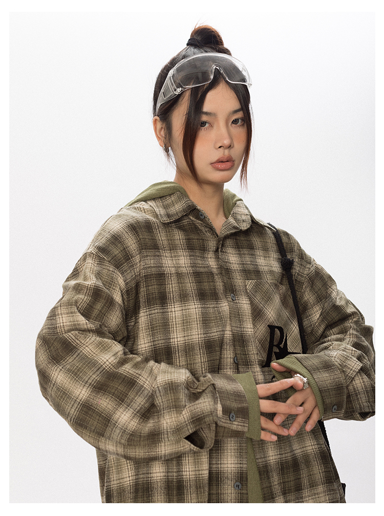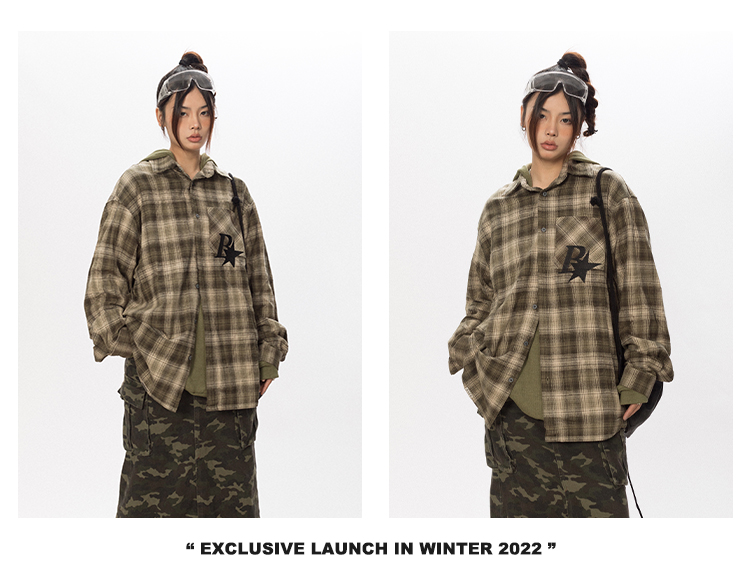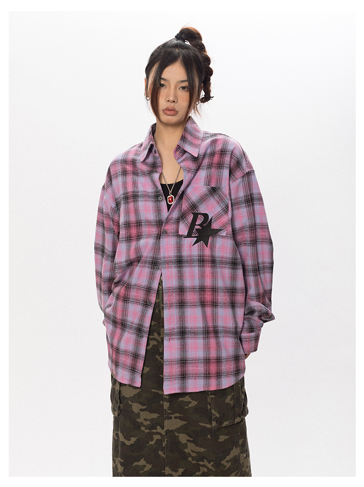 BLACKBB Vintage Plaid Flocked B Letter Print Shirt