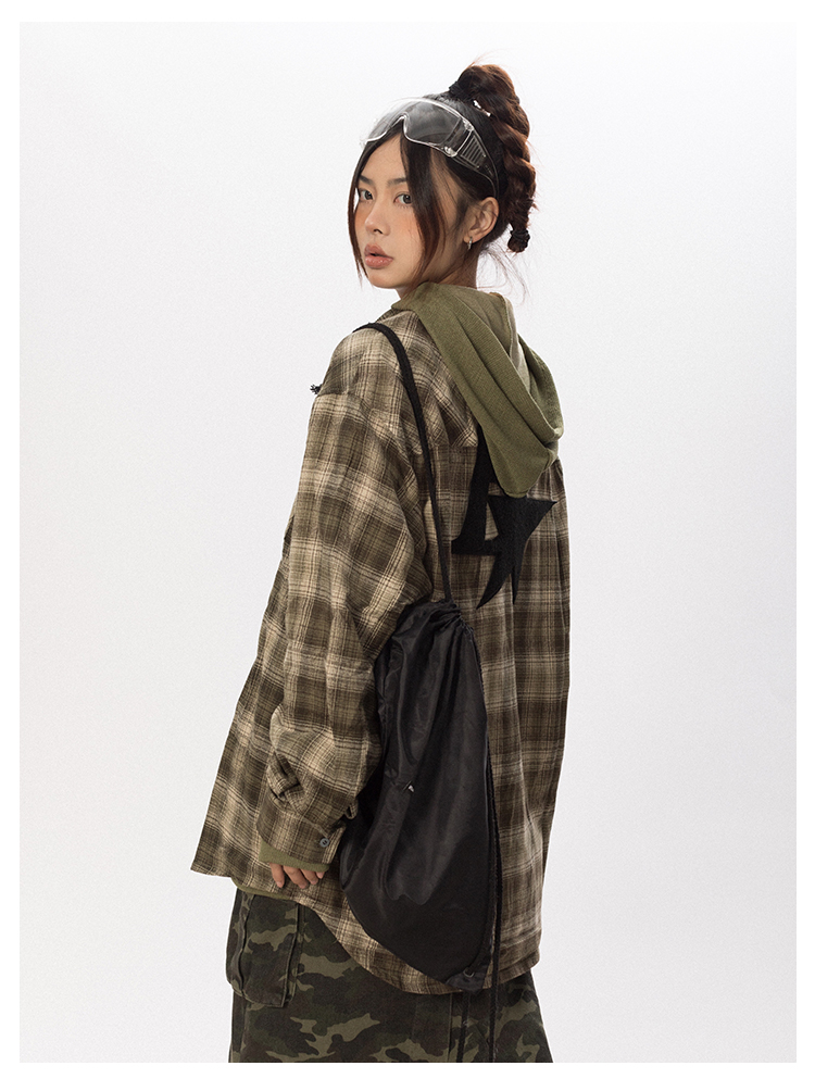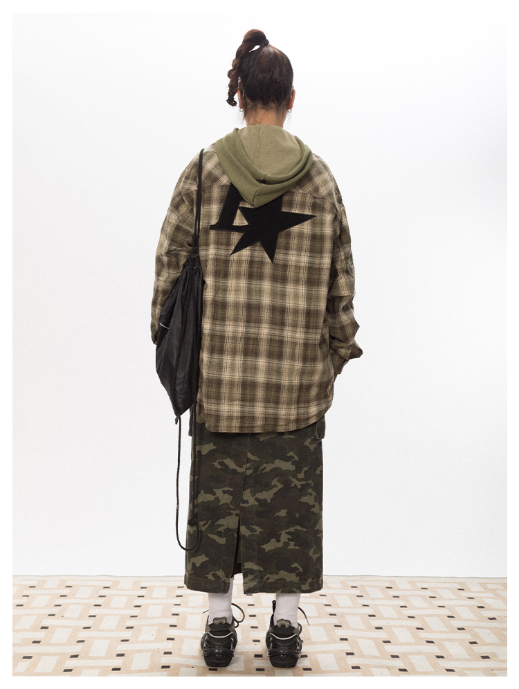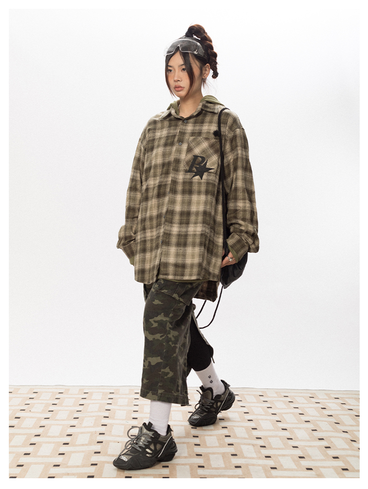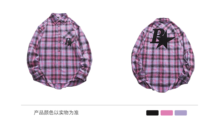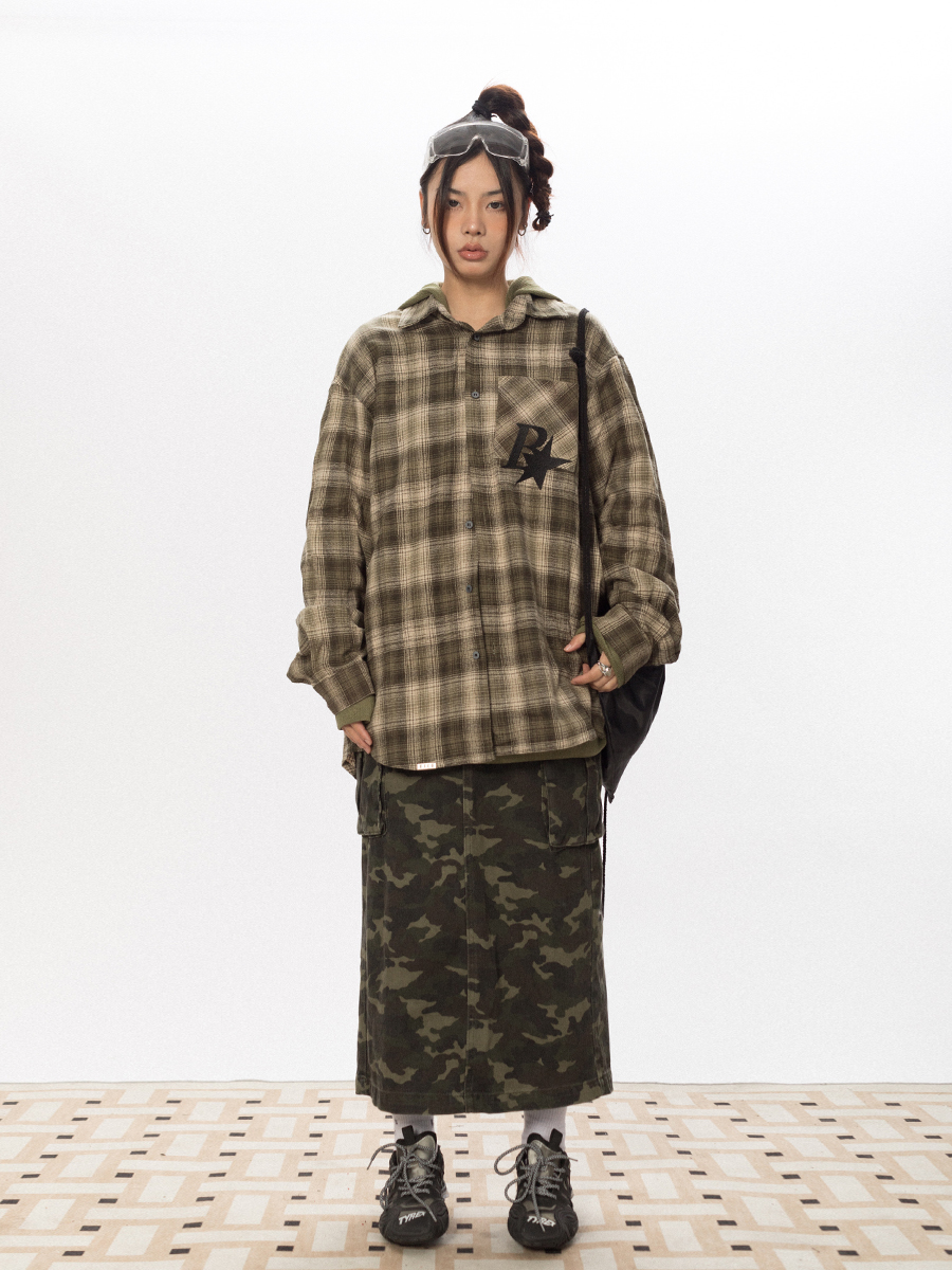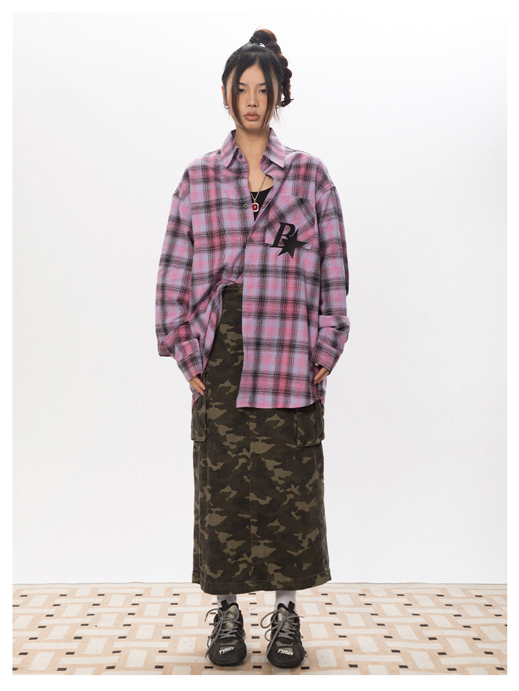 BLACKBB Vintage Plaid Flocked B Letter Print Shirt