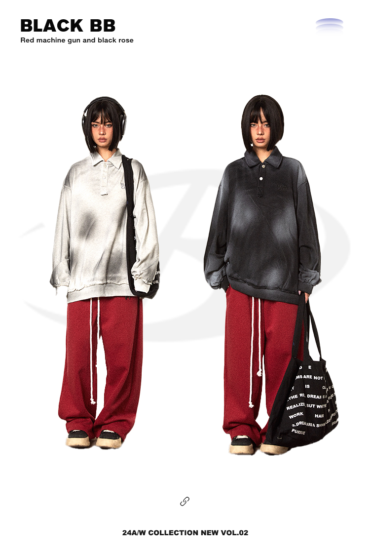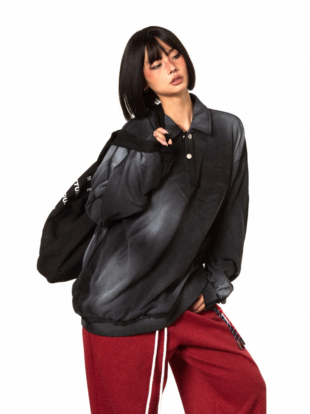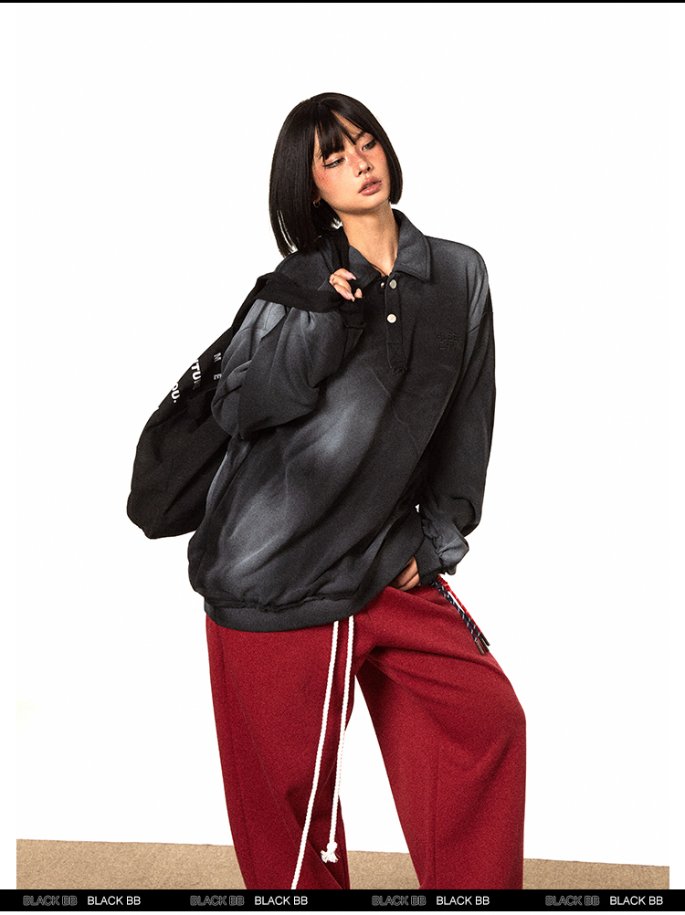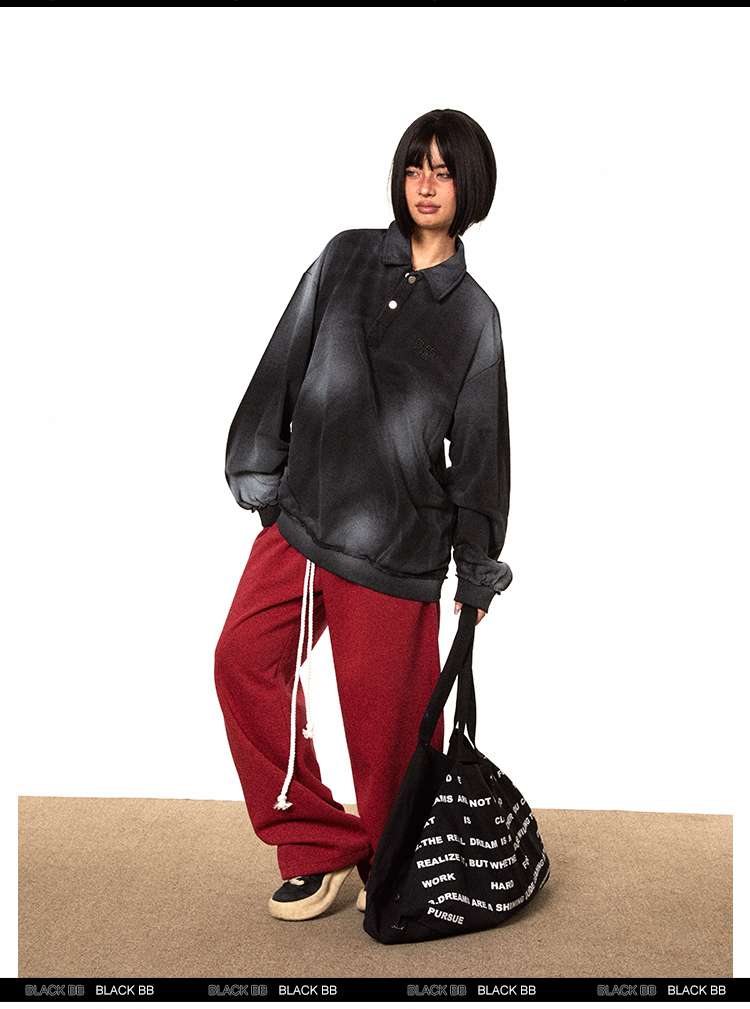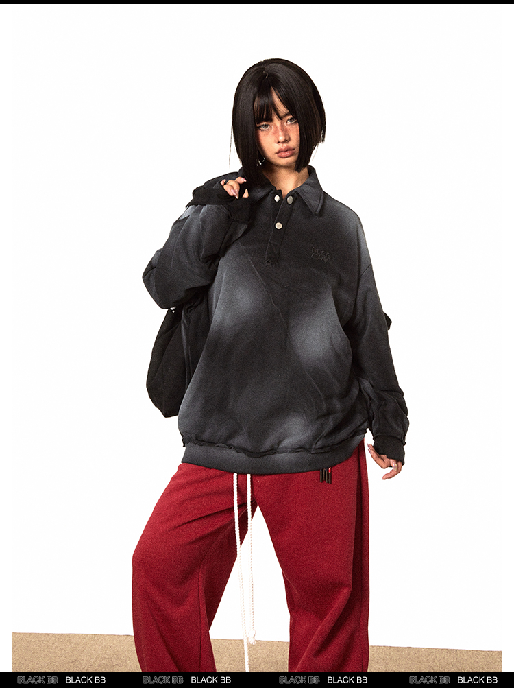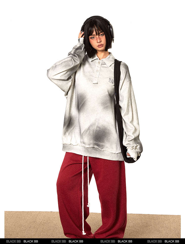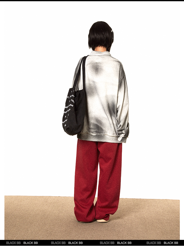 BLACKBB Washed Distressed Dirty Vintage American Tie-Dye Sweat Shirt