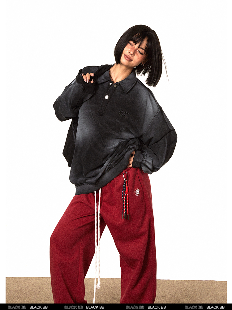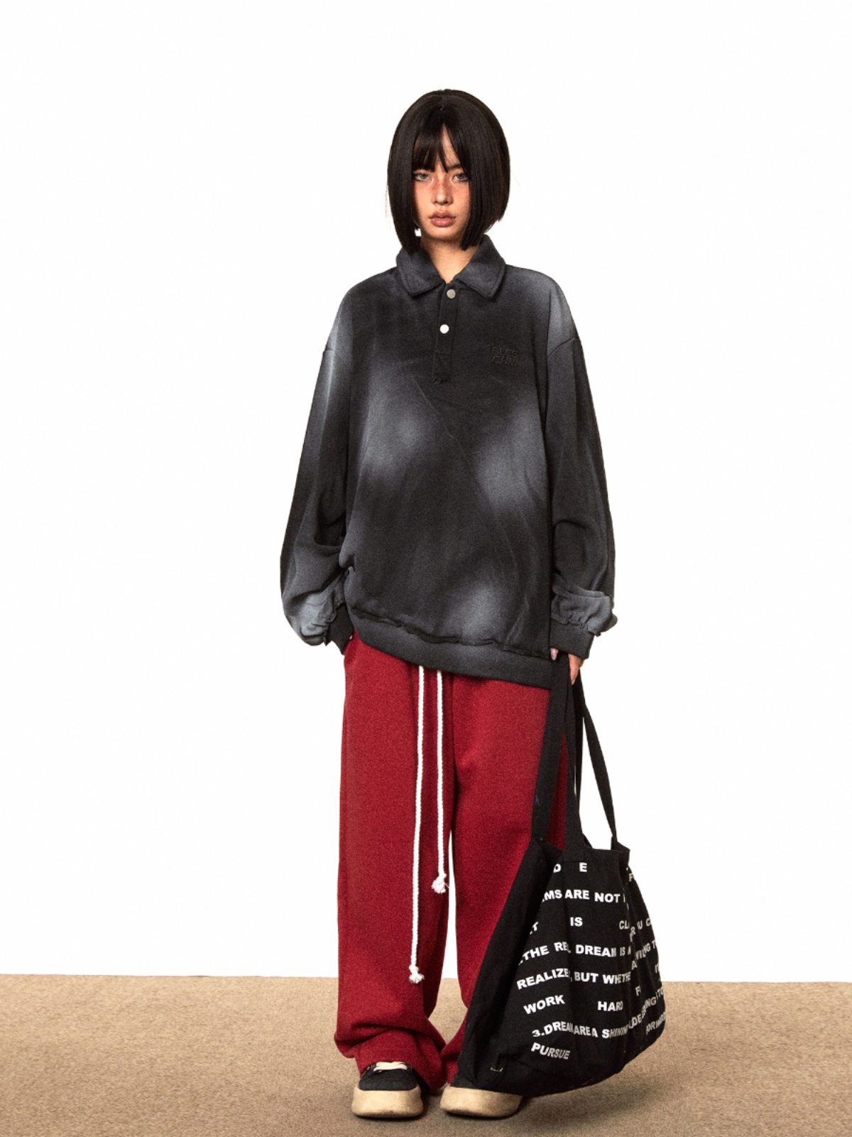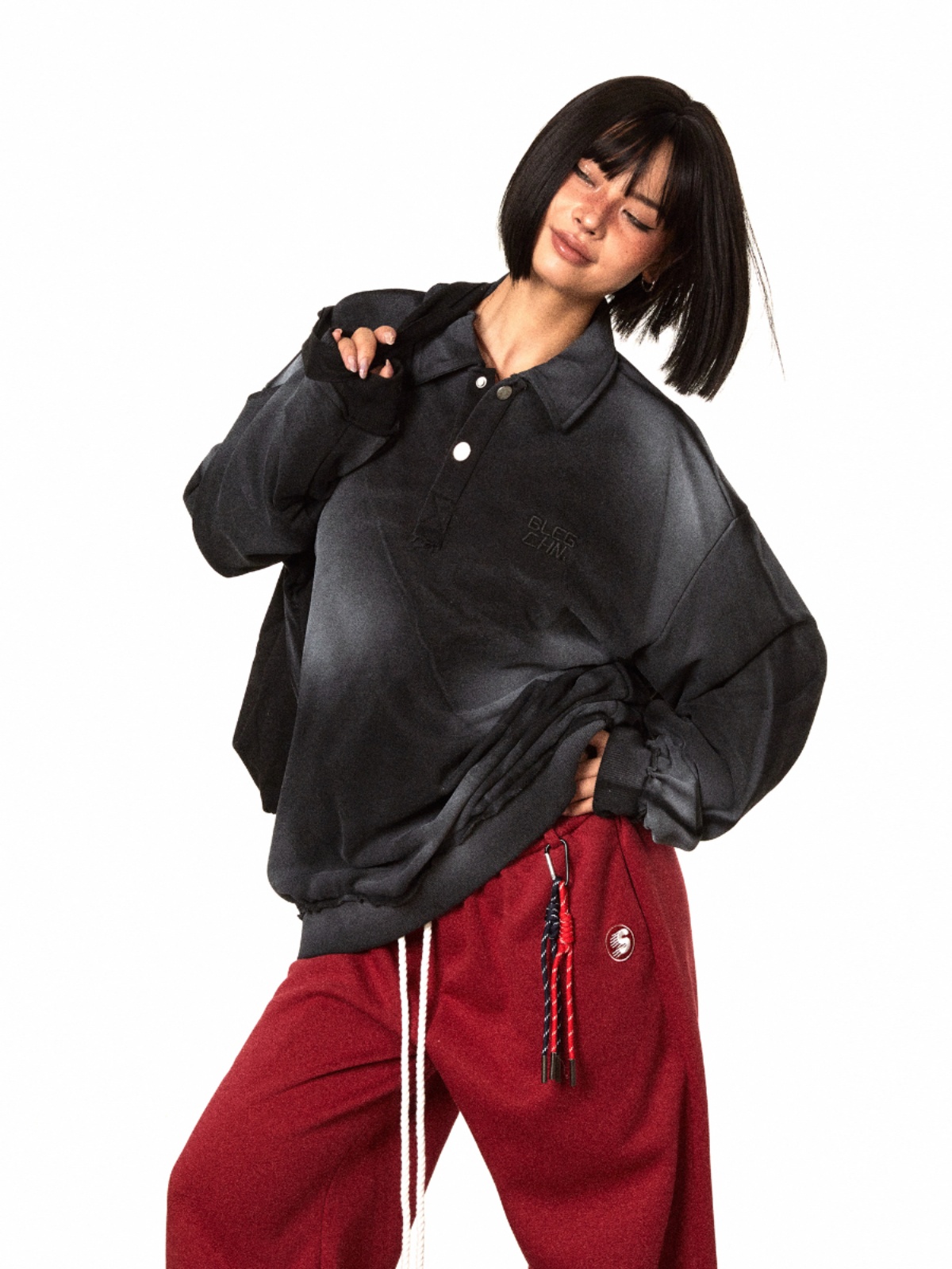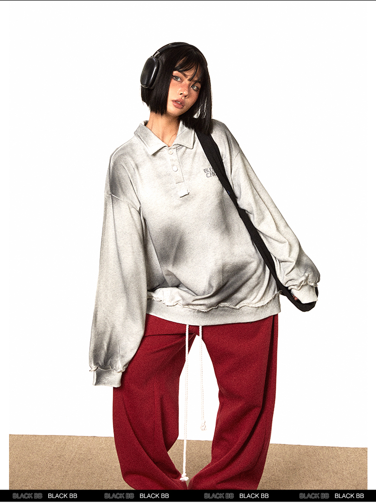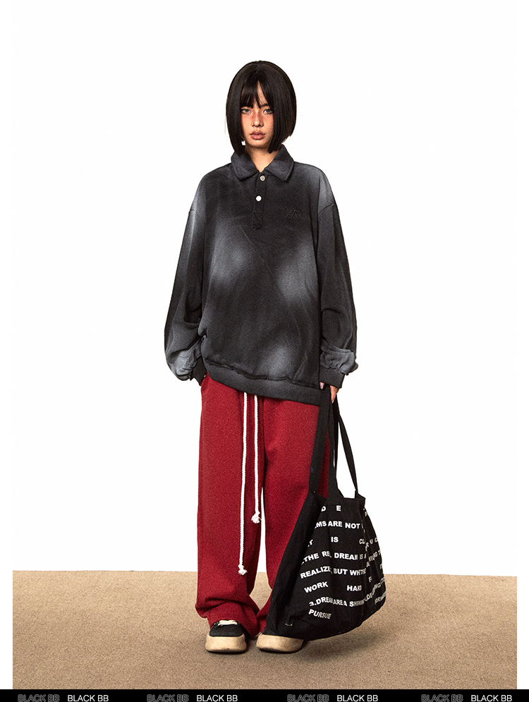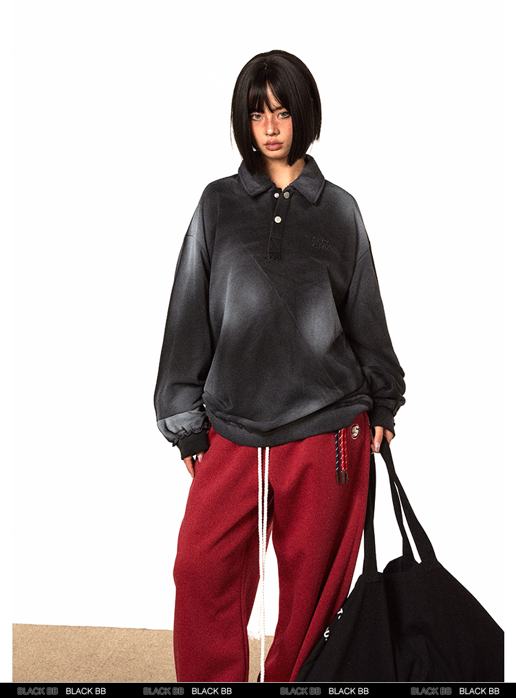 BLACKBB Washed Distressed Dirty Vintage American Tie-Dye Sweat Shirt
