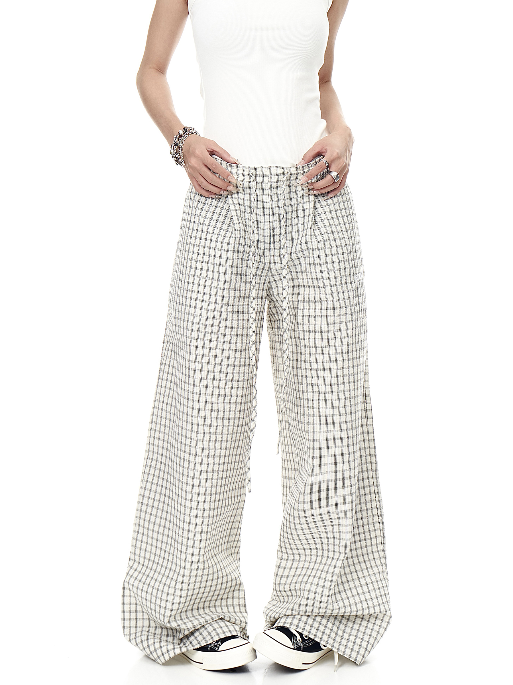 BLACKLISTS Lazy Casual Checked Wide Leg Floor Pants