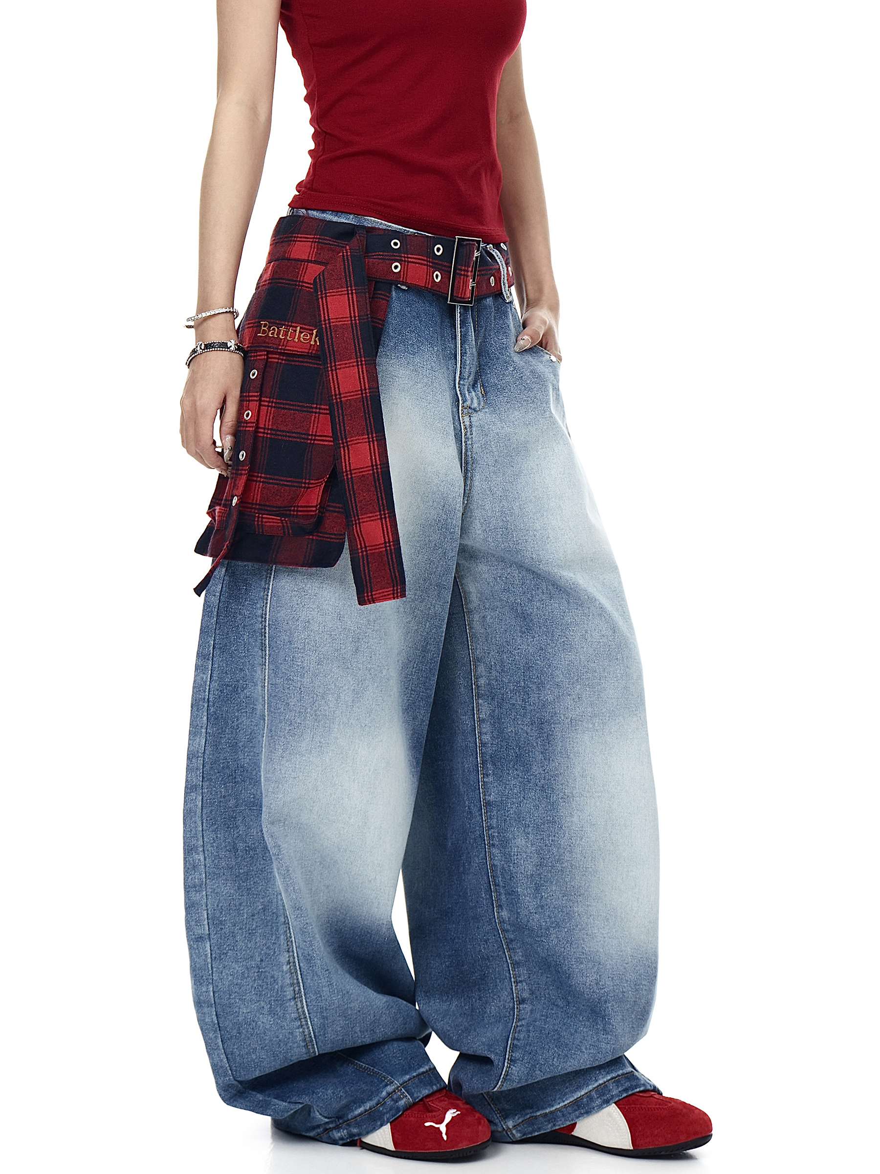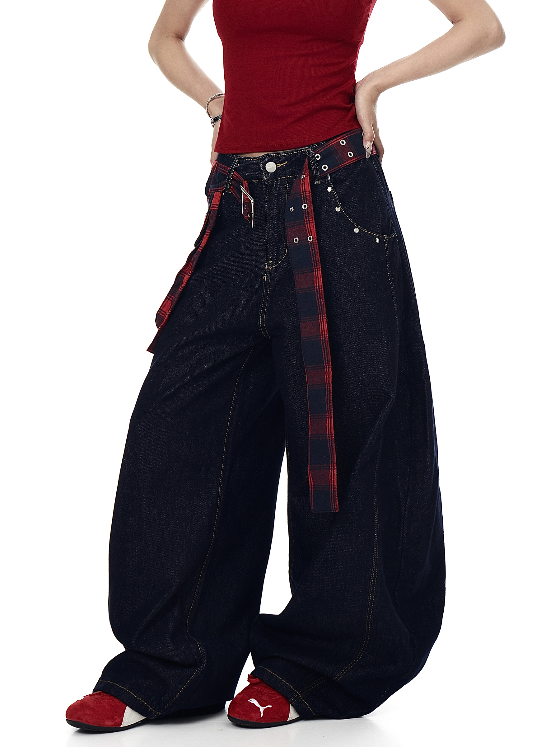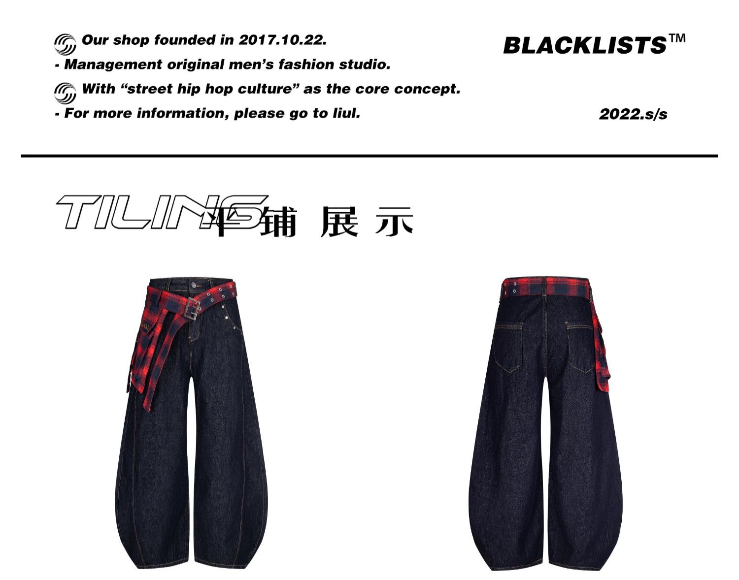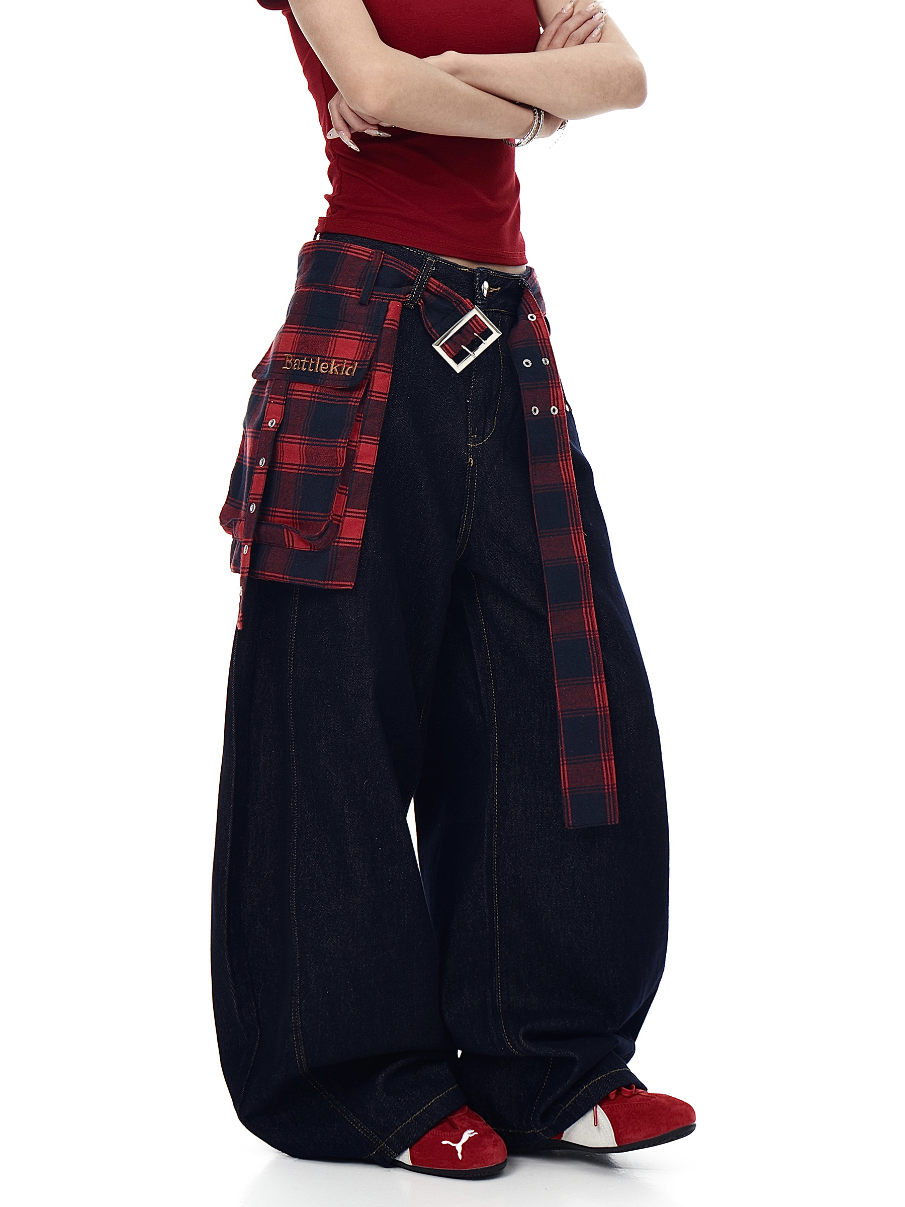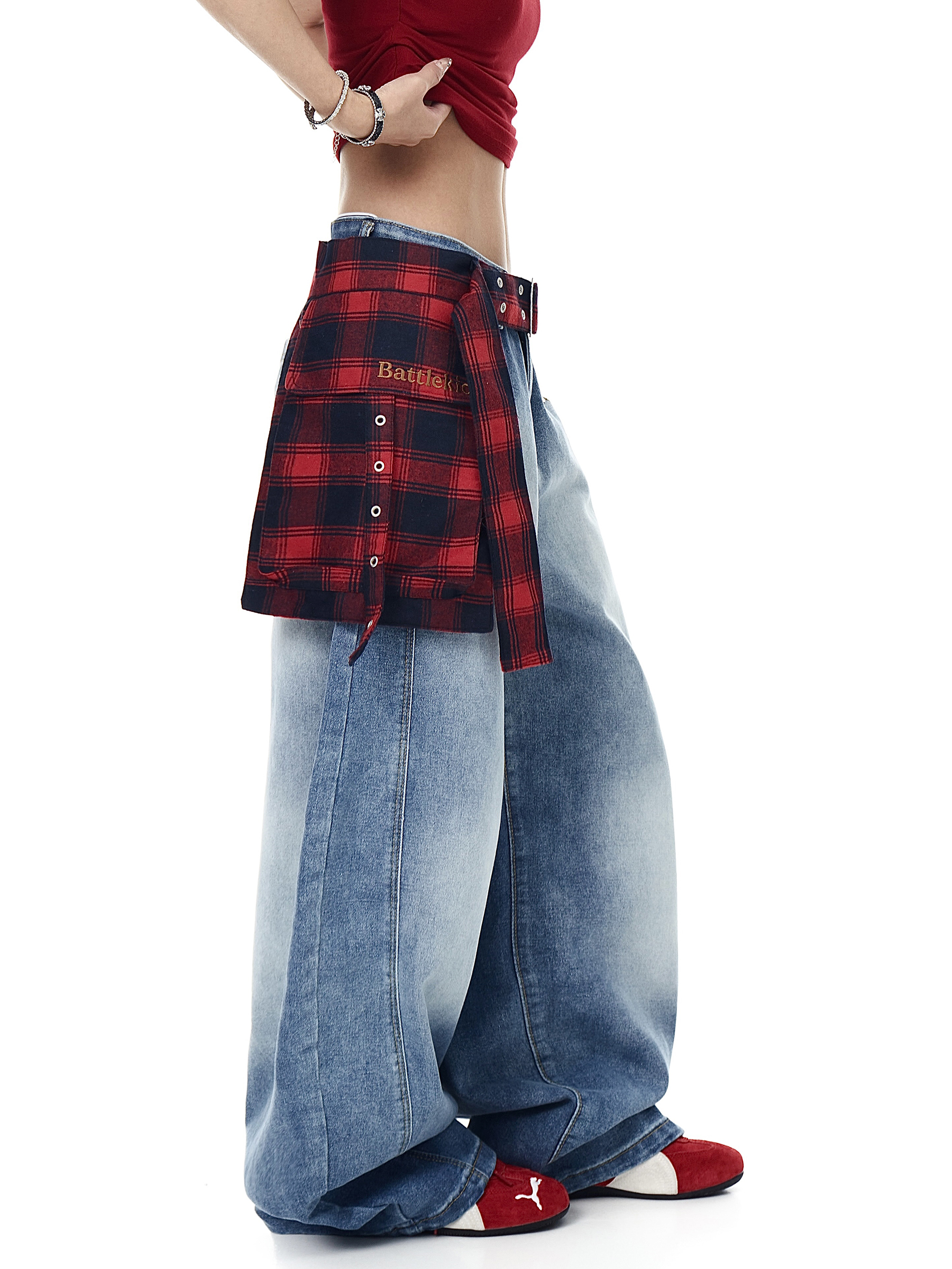 BLACKLISTS Plaid Skirt Waist Seal Fart Curtain Scimitar Jeans