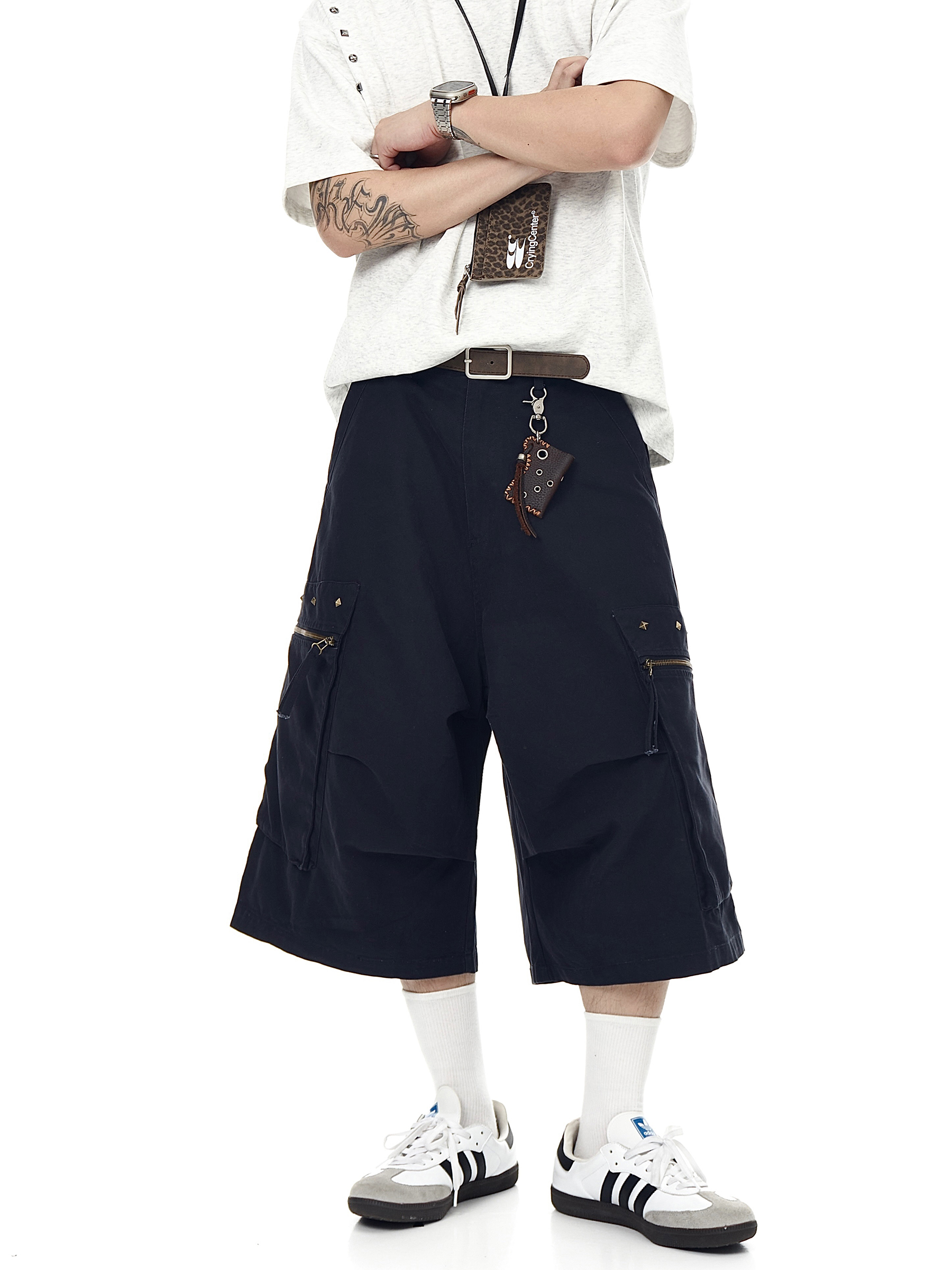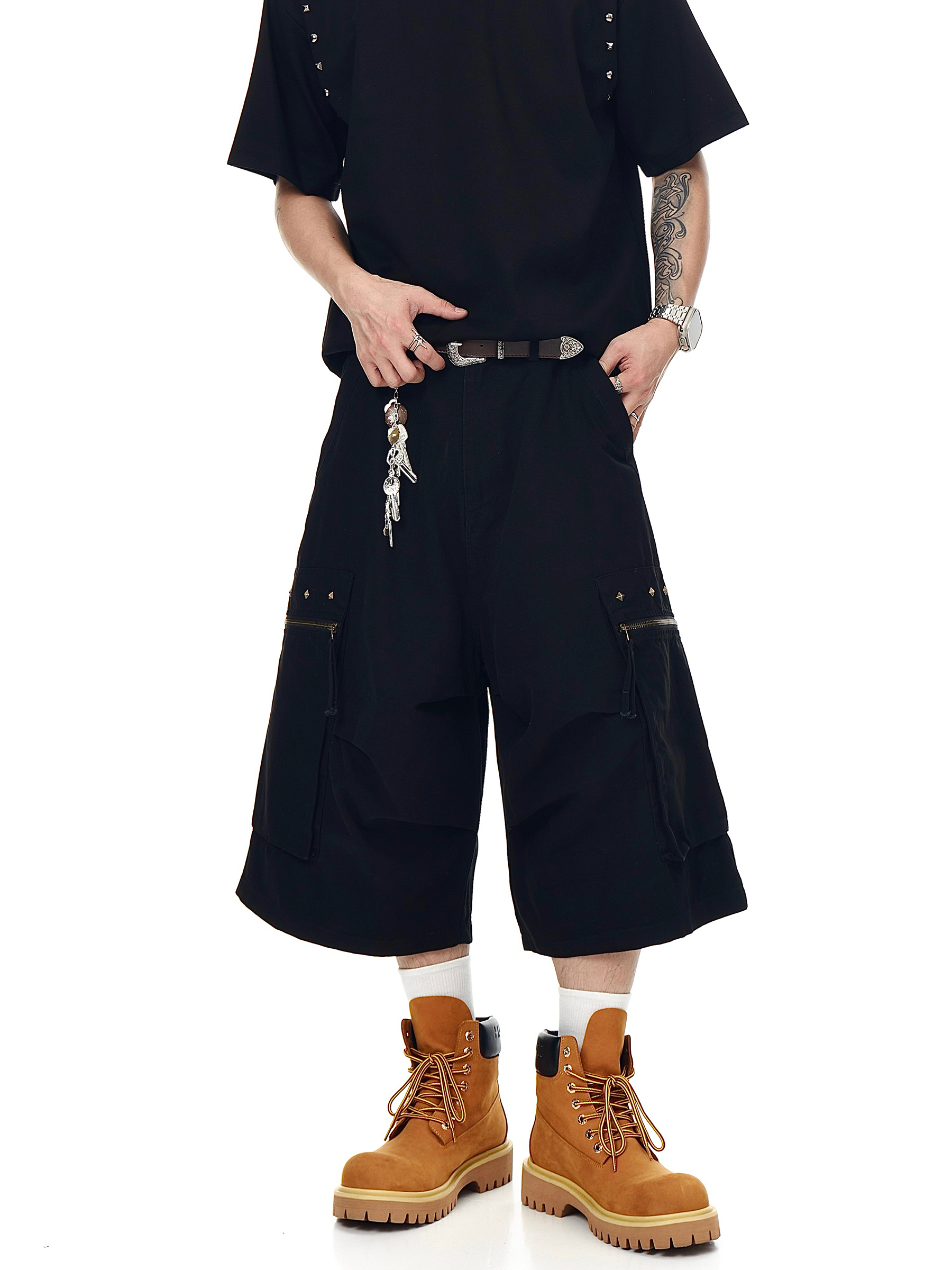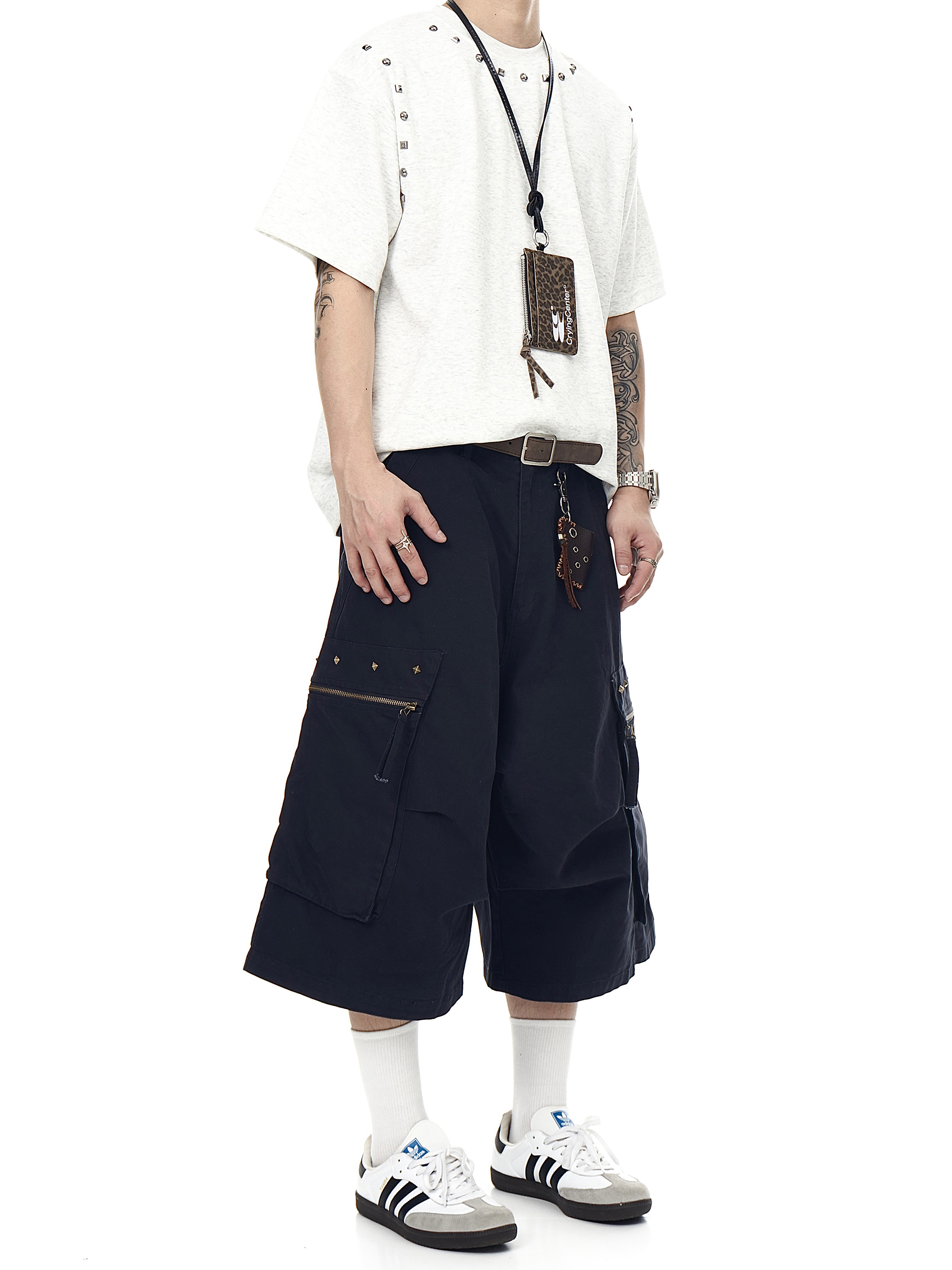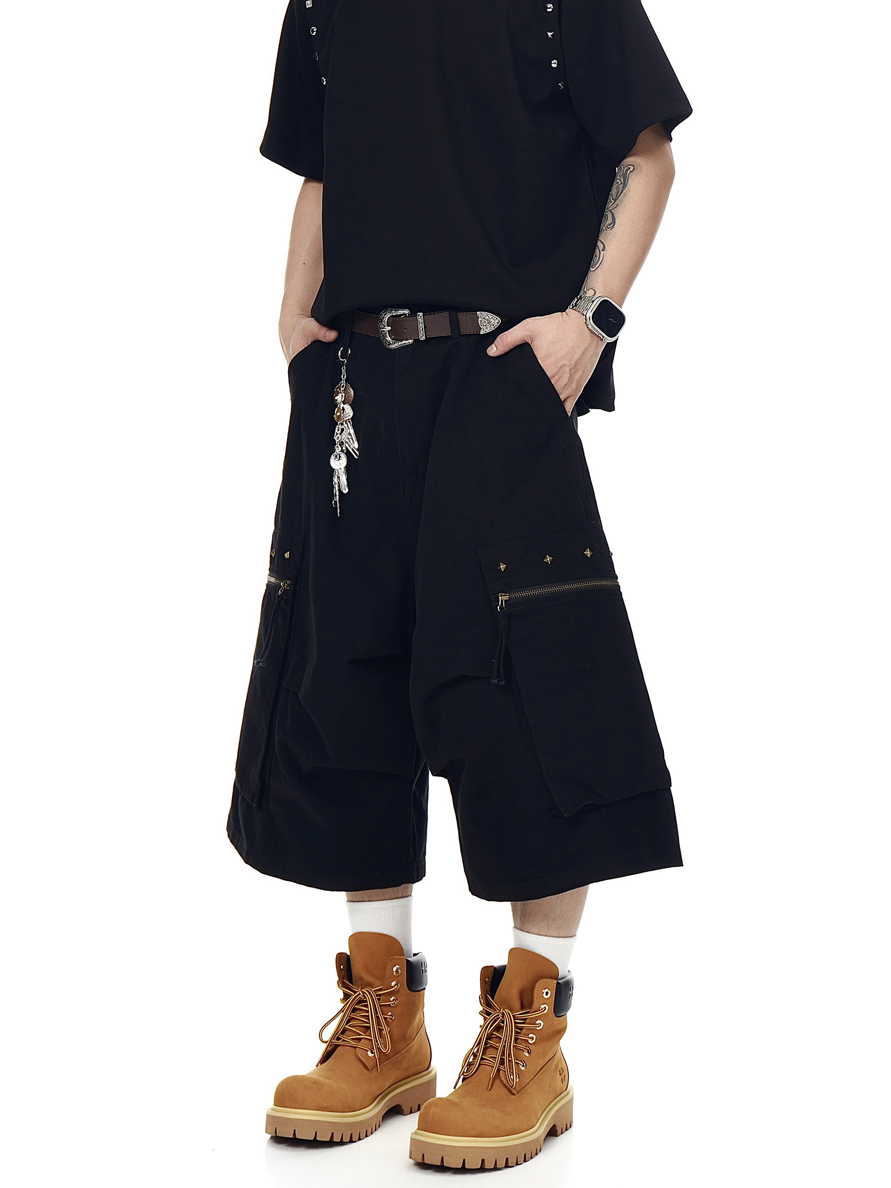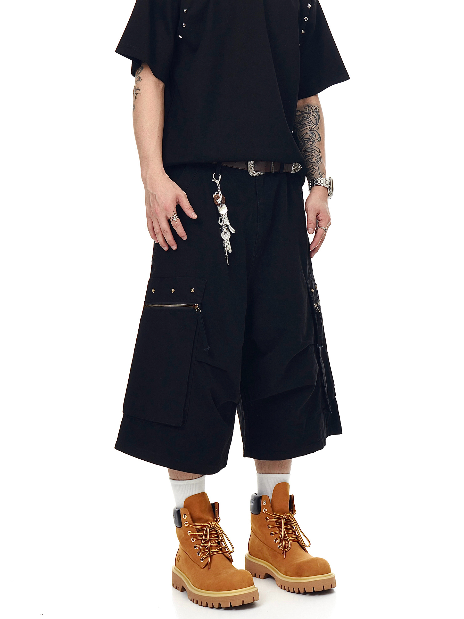 BLACKLISTS Pleated Rivet Multi-pocket Tooling Shorts