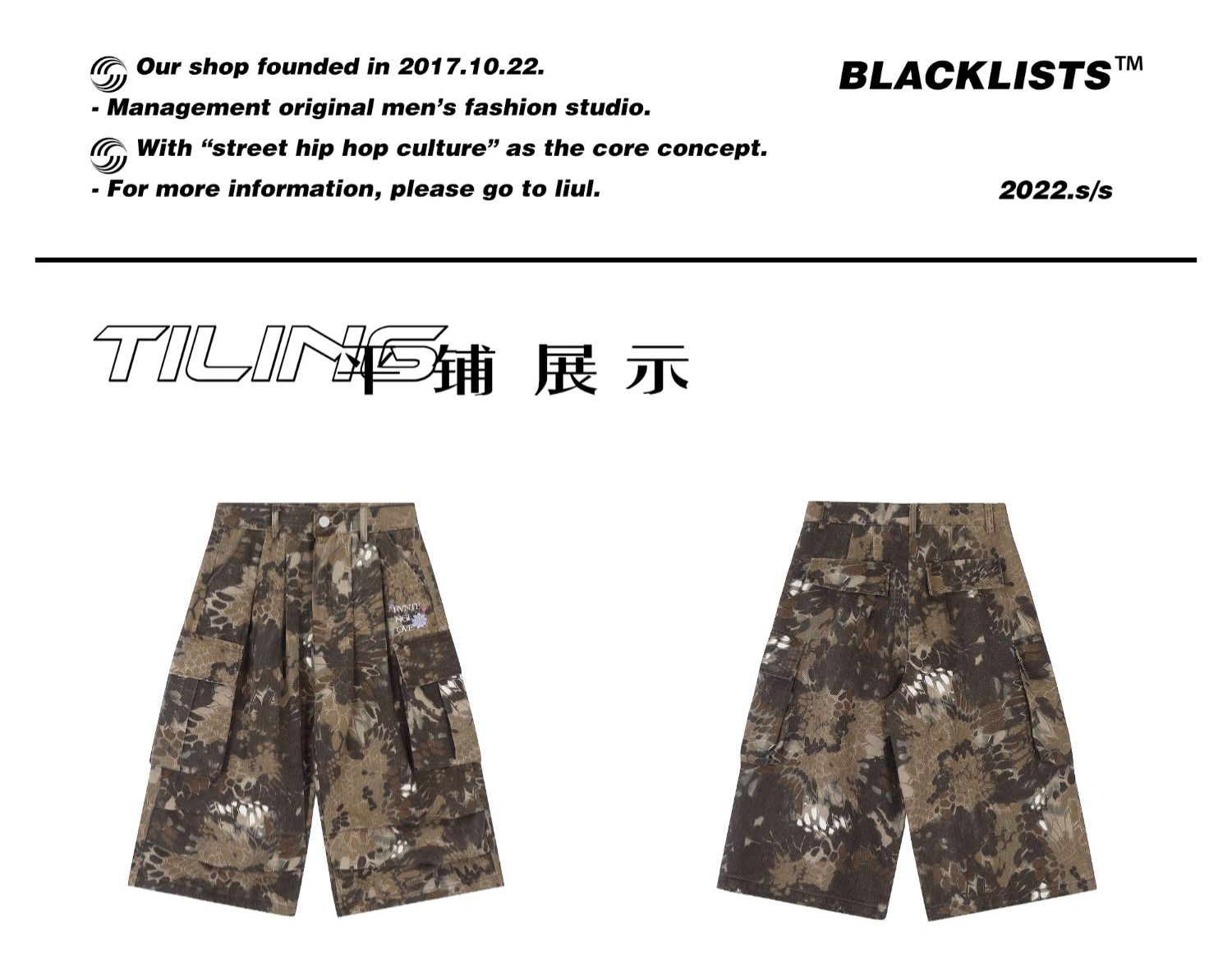 BLACKLISTS Snake Pattern Camouflage Tooling Shorts