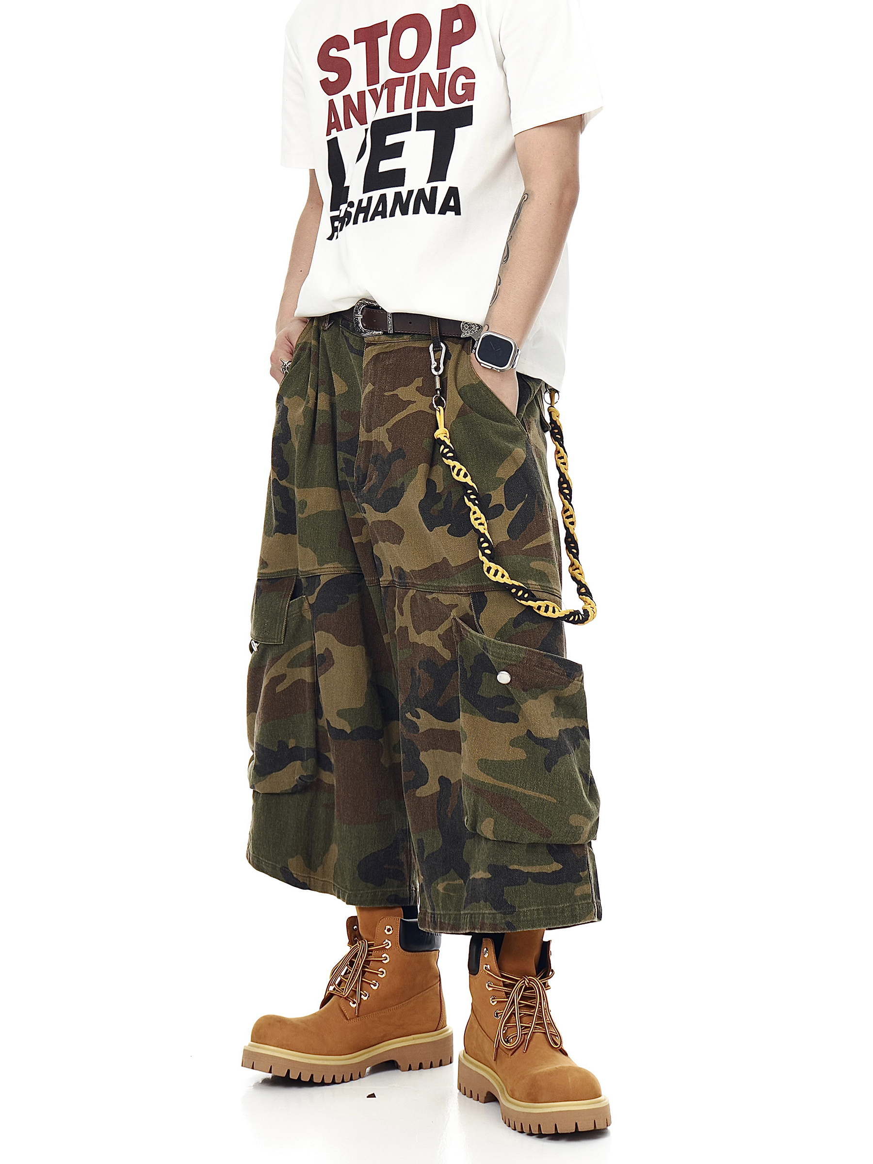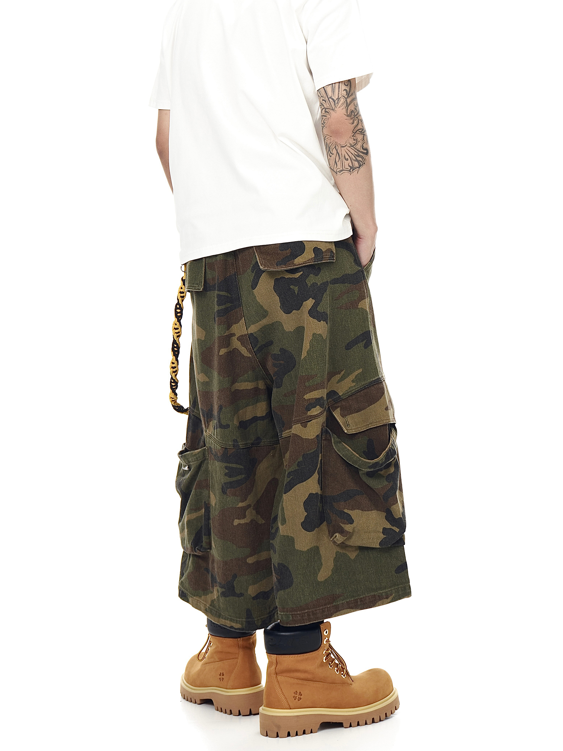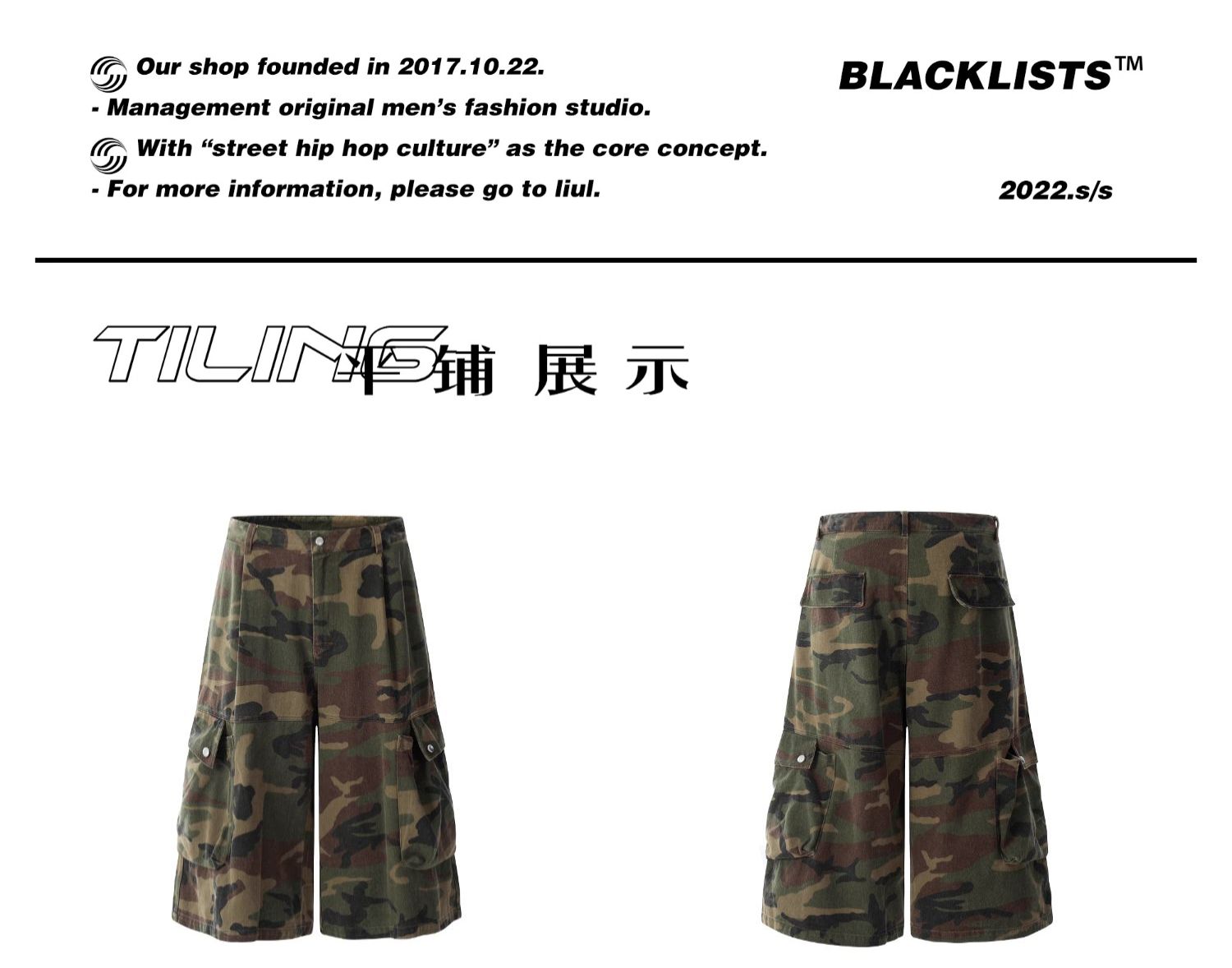 BLACKLISTS Washed Old Big Pocket Camouflage Tooling Shorts