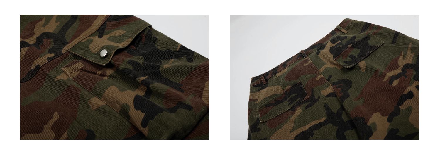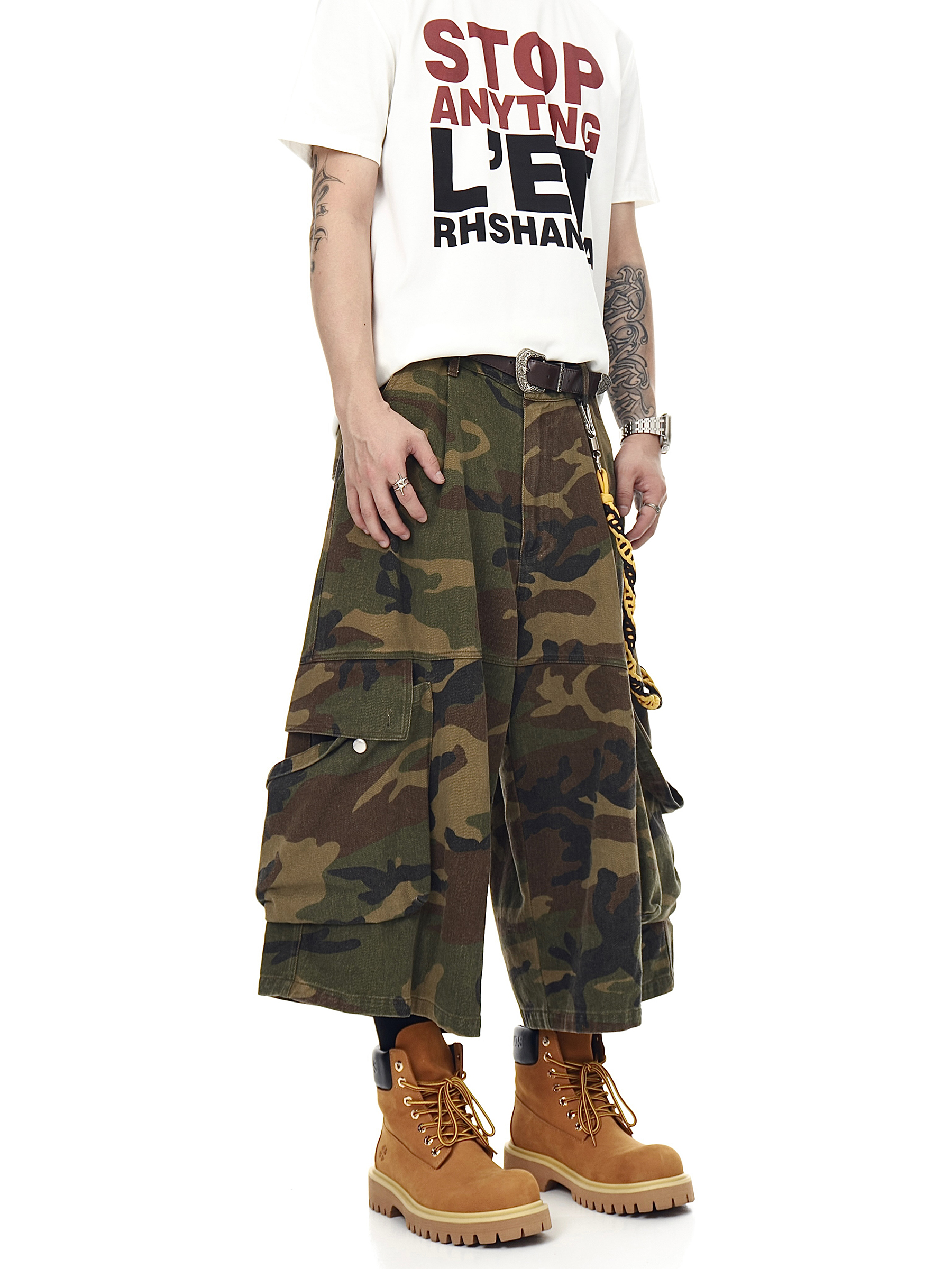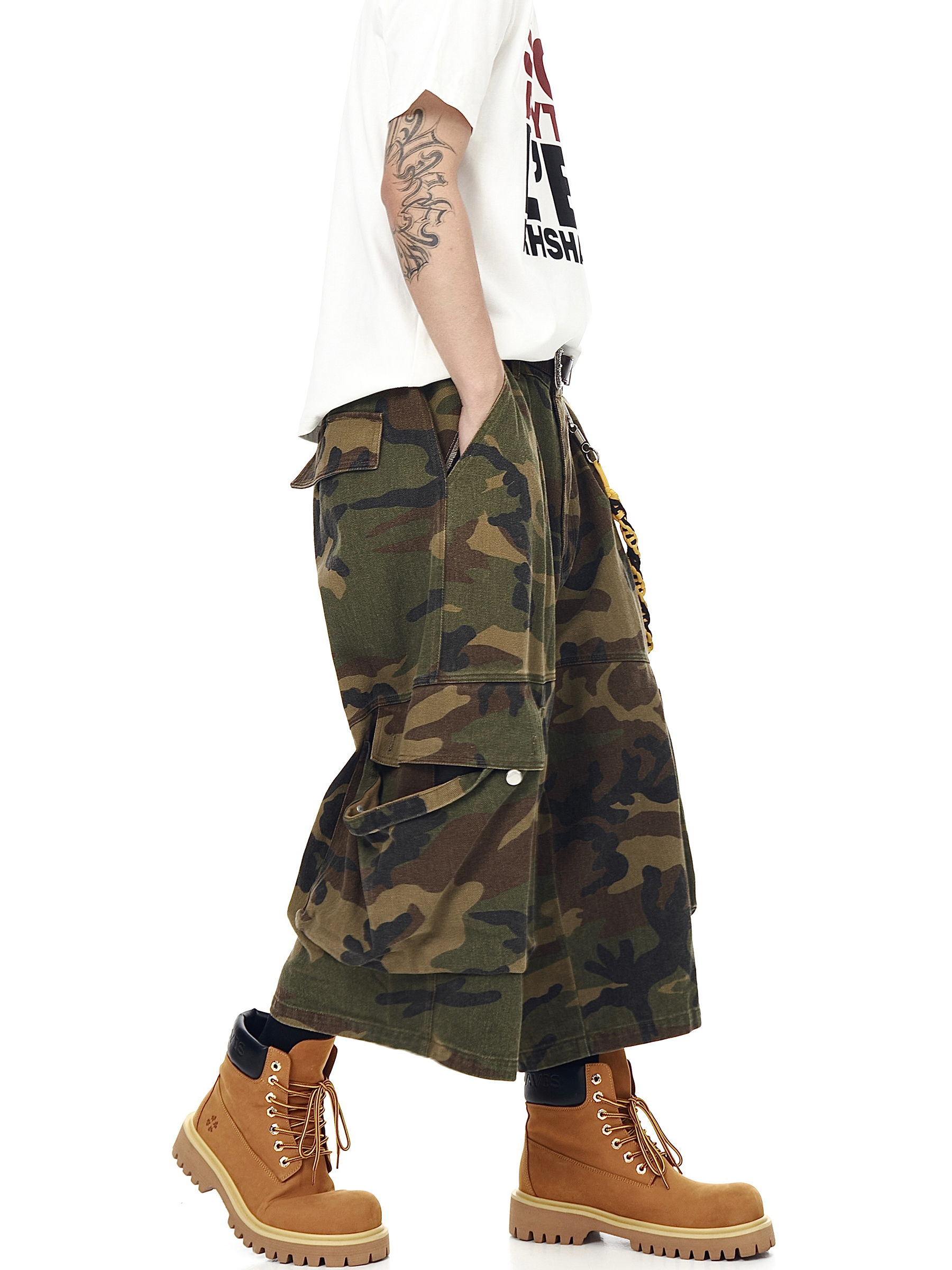 BLACKLISTS Washed Old Big Pocket Camouflage Tooling Shorts