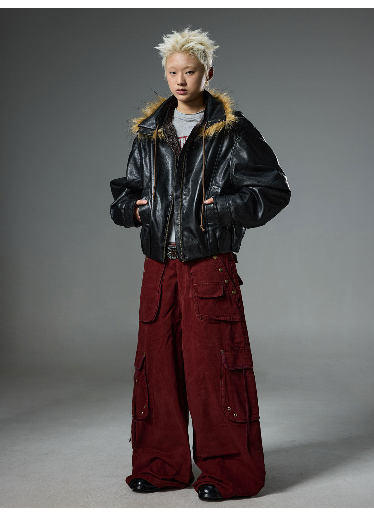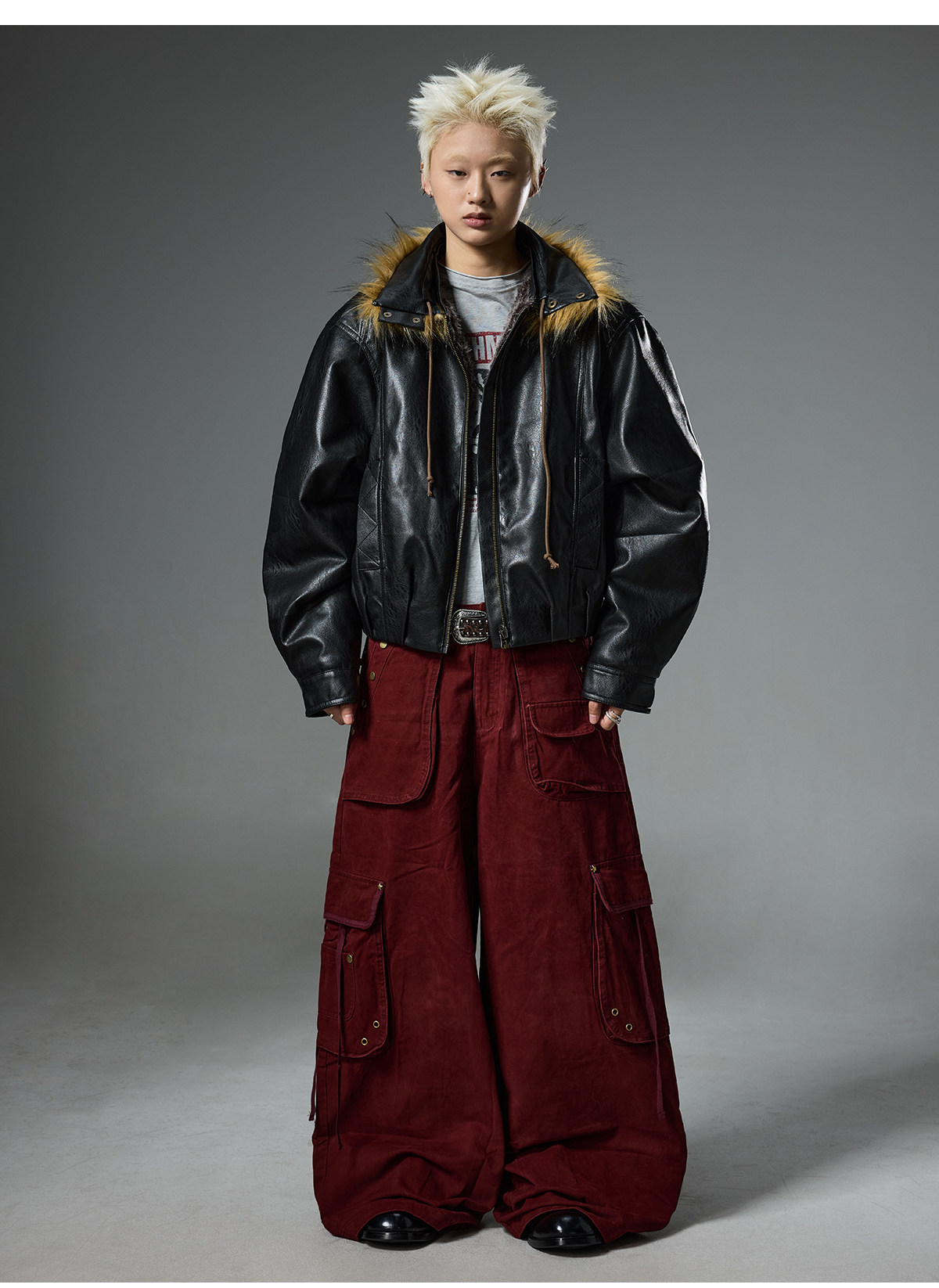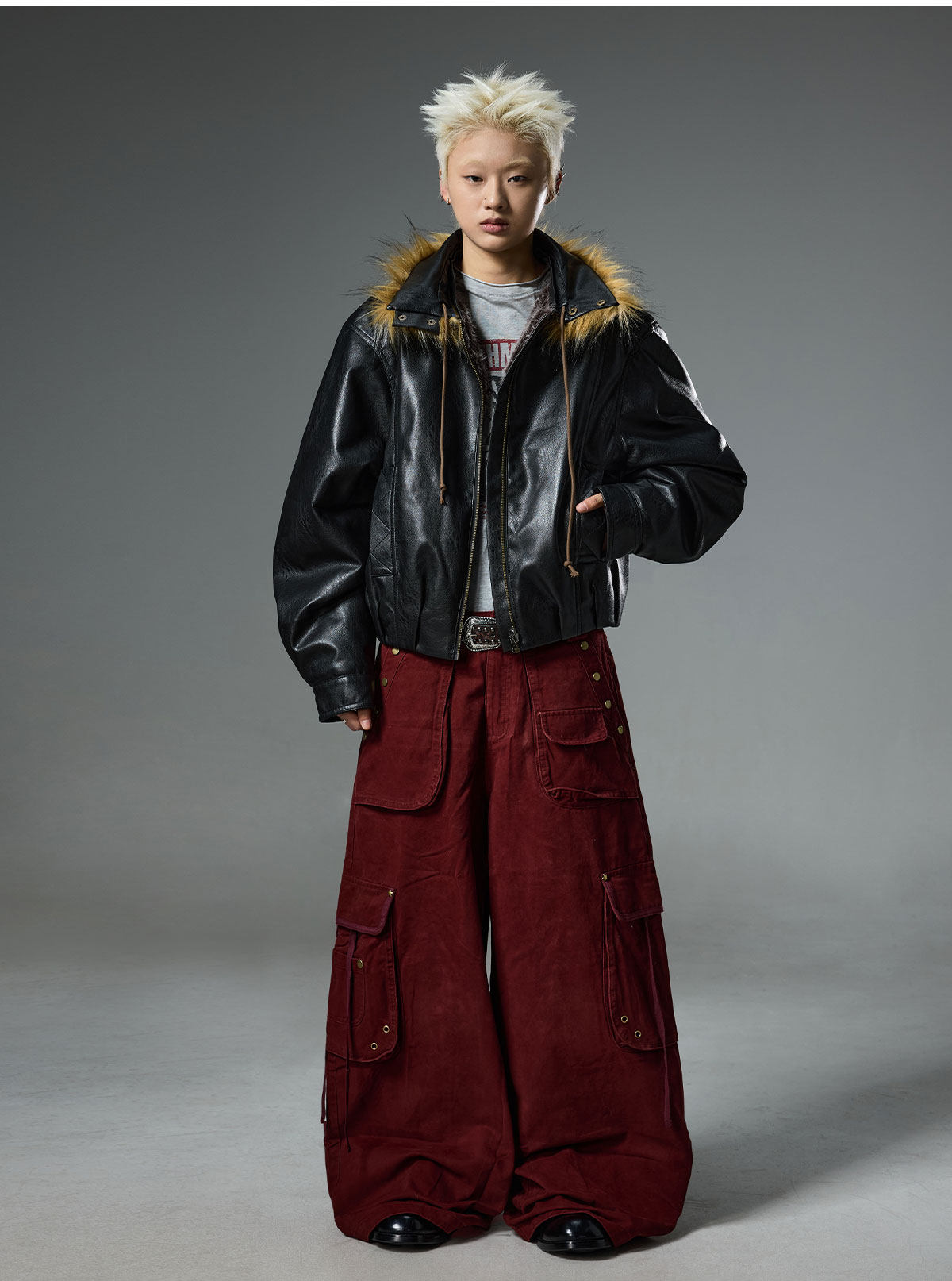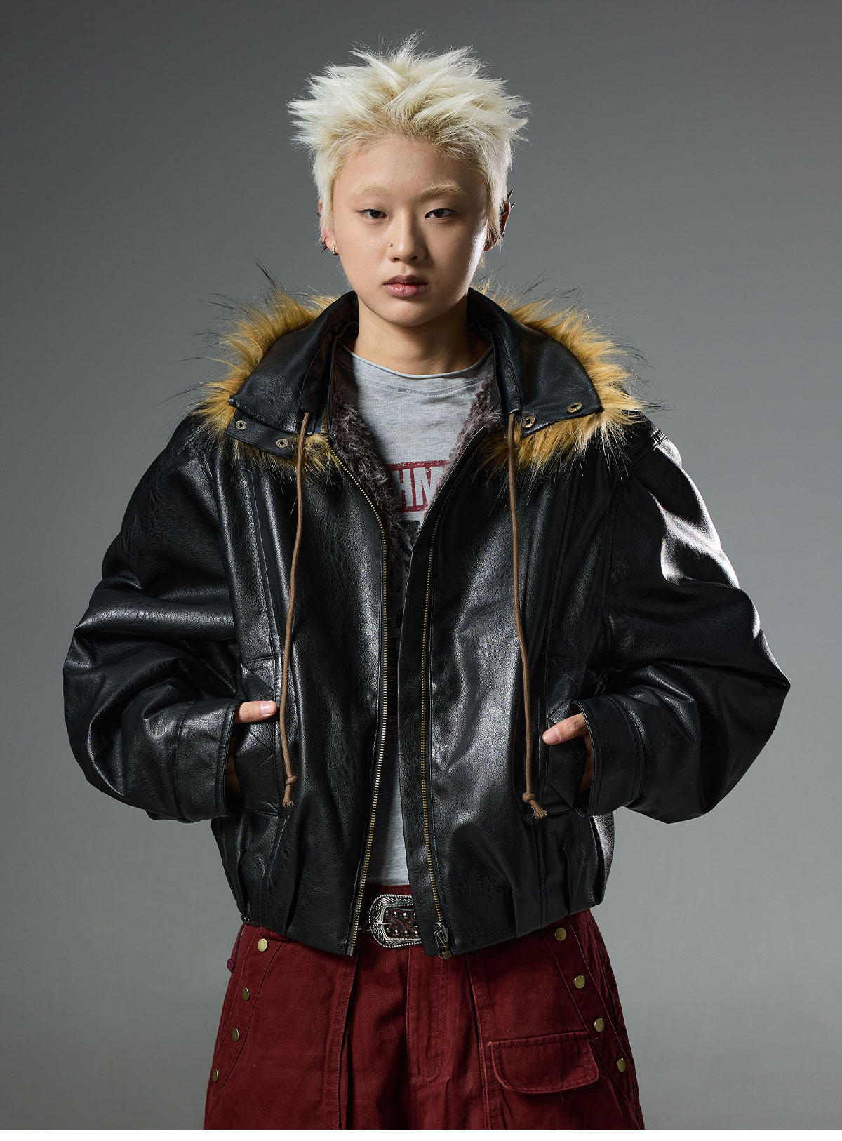 BTSG retro double-sided wear fur collar leather jacket