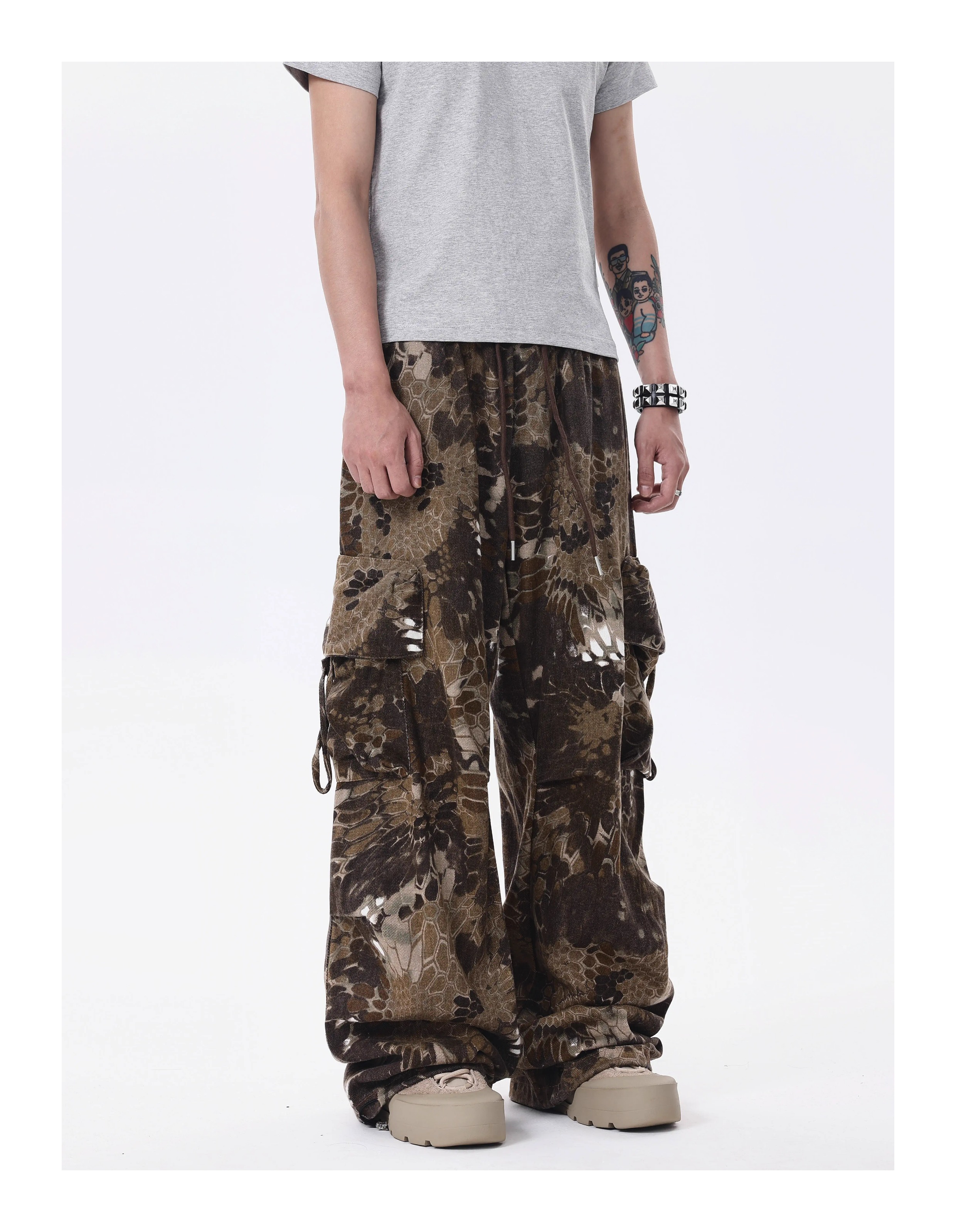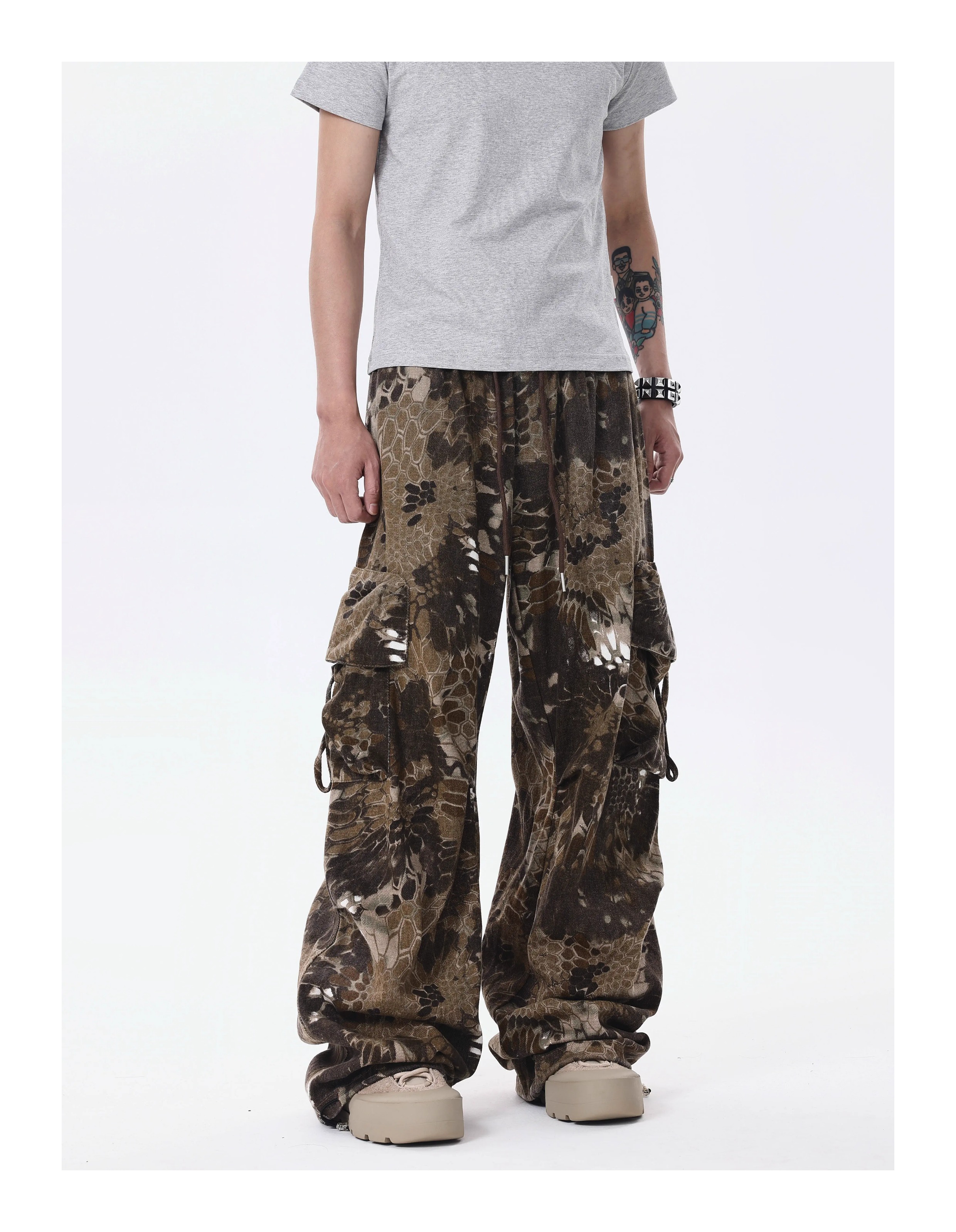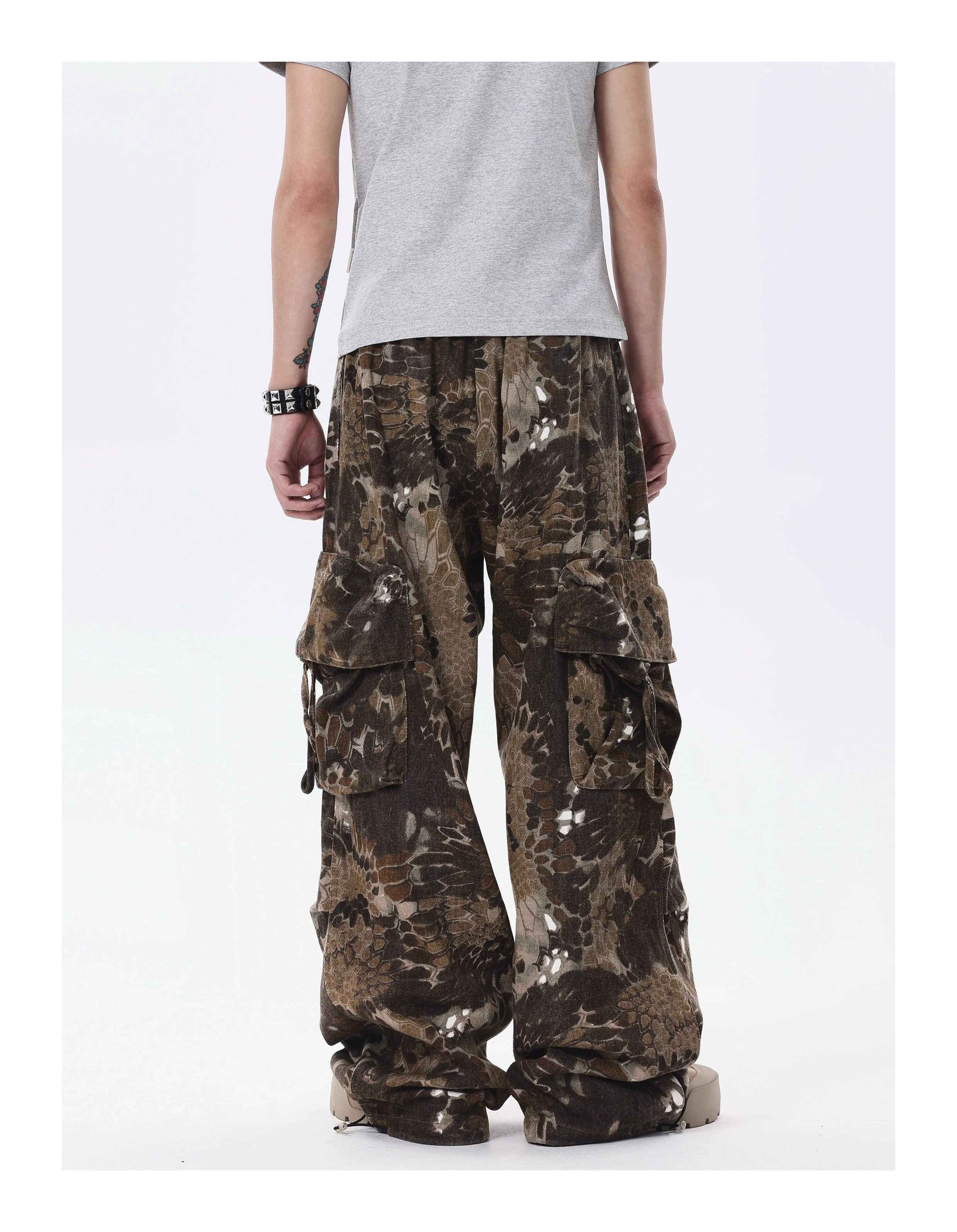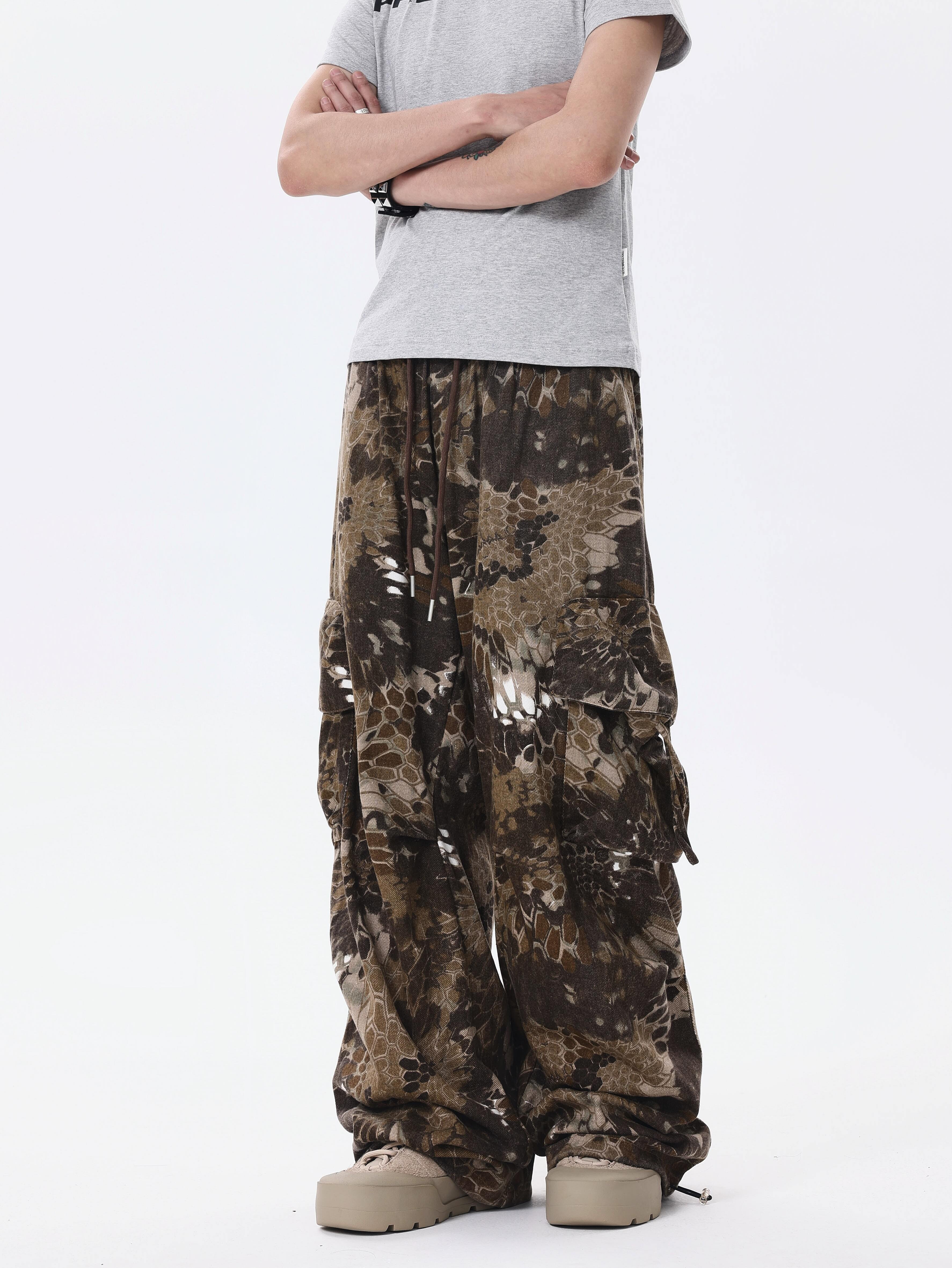 BTSG* American Retro Wasteland Snake Camouflage Multi-Pocket Cargo Pants