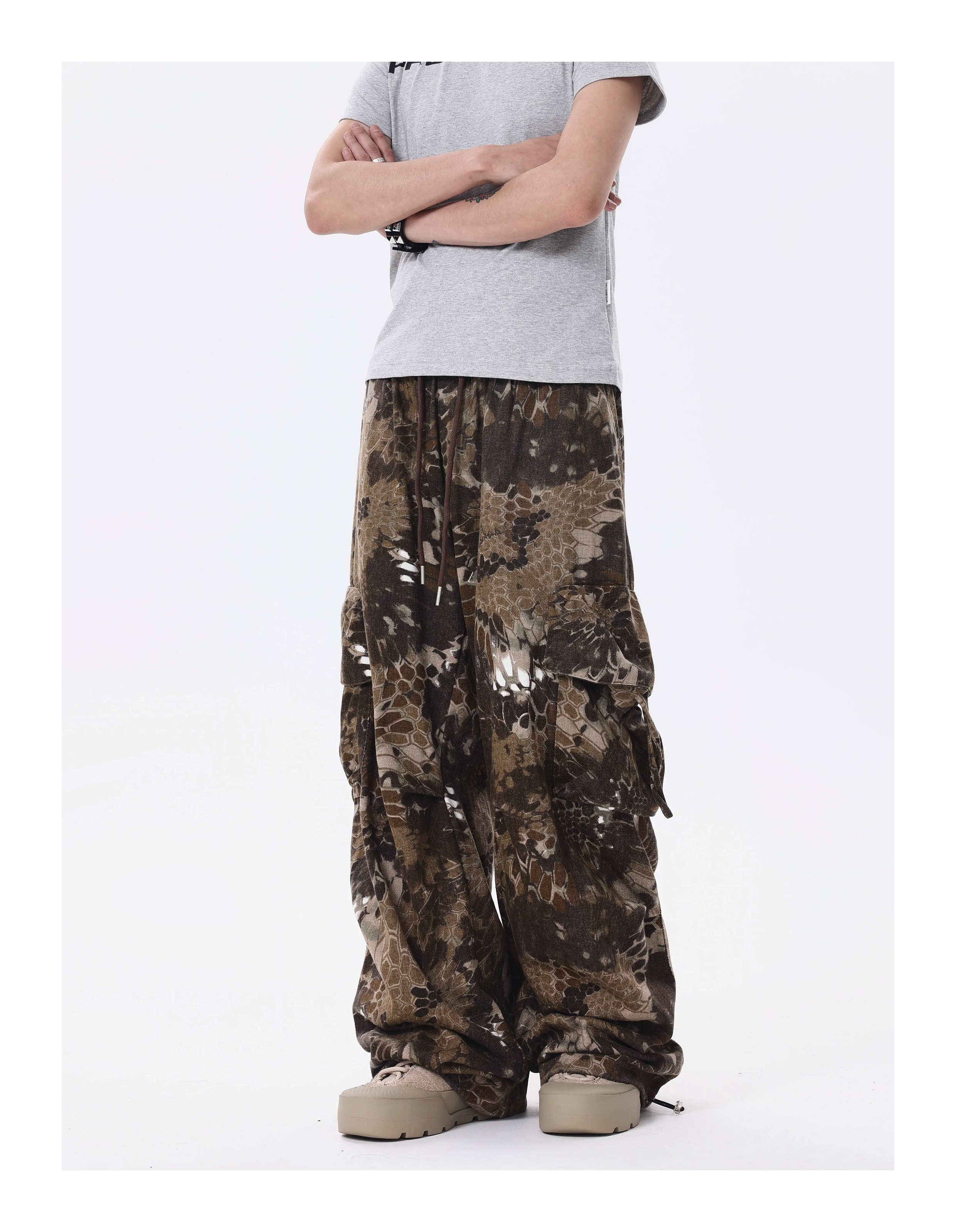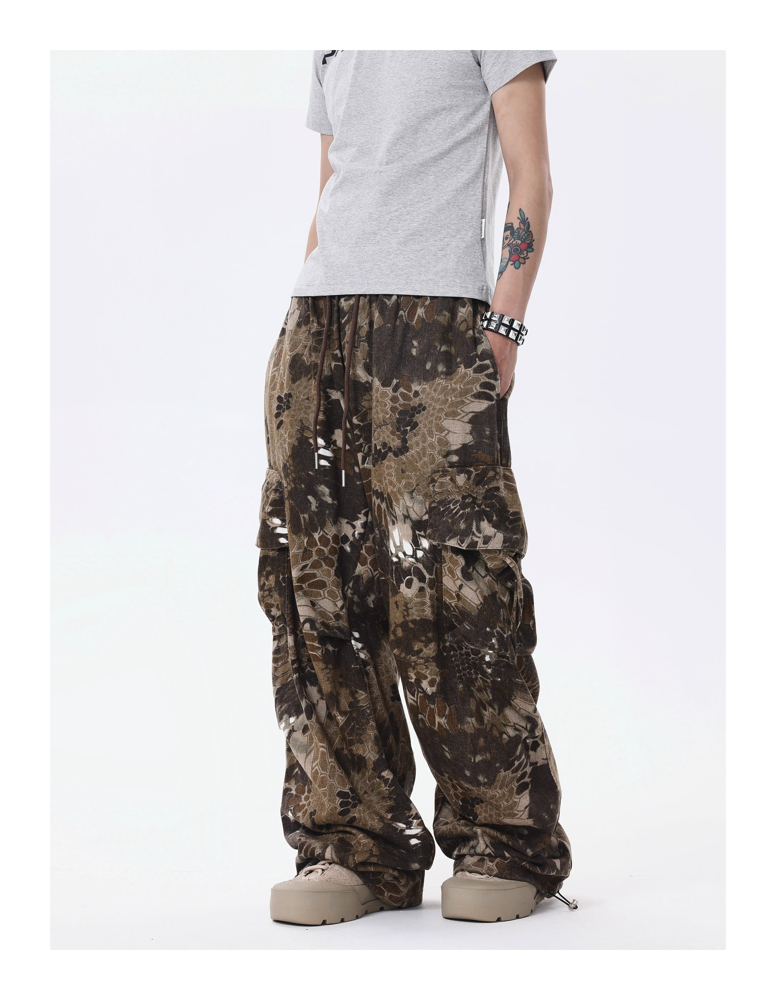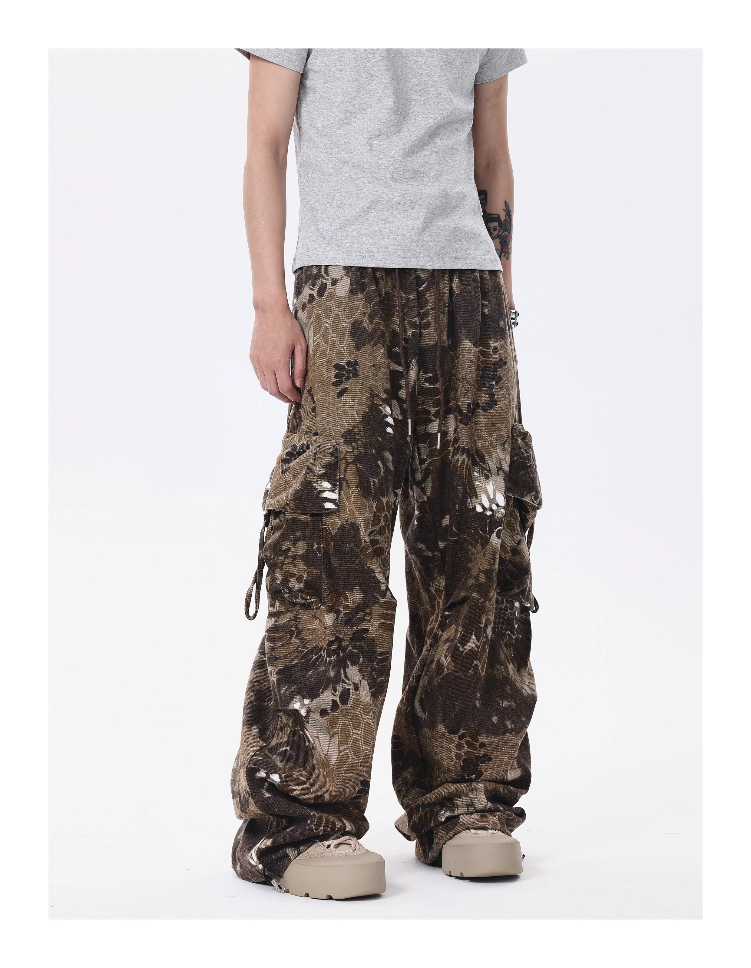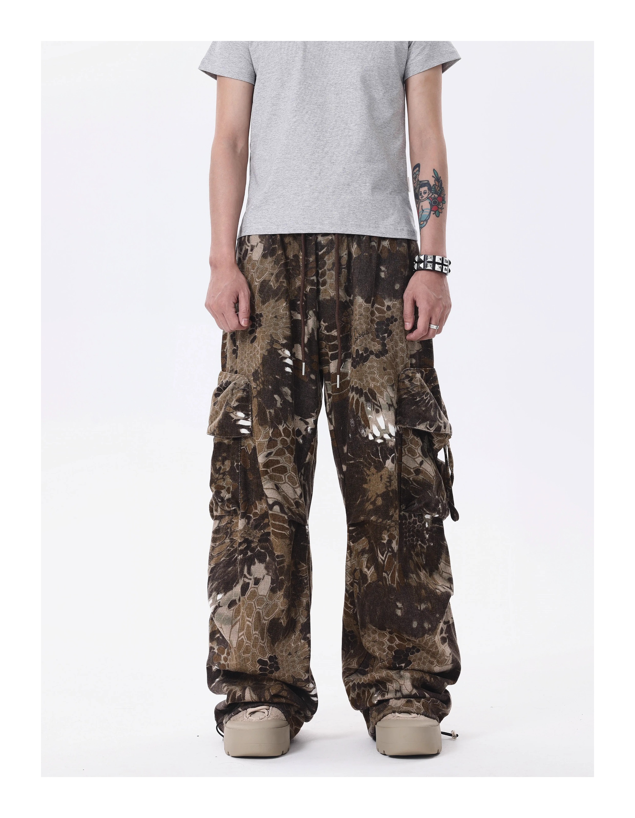 BTSG* American Retro Wasteland Snake Camouflage Multi-Pocket Cargo Pants