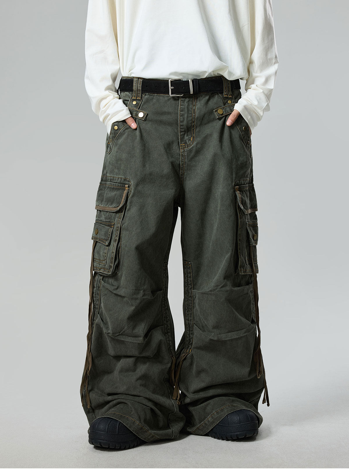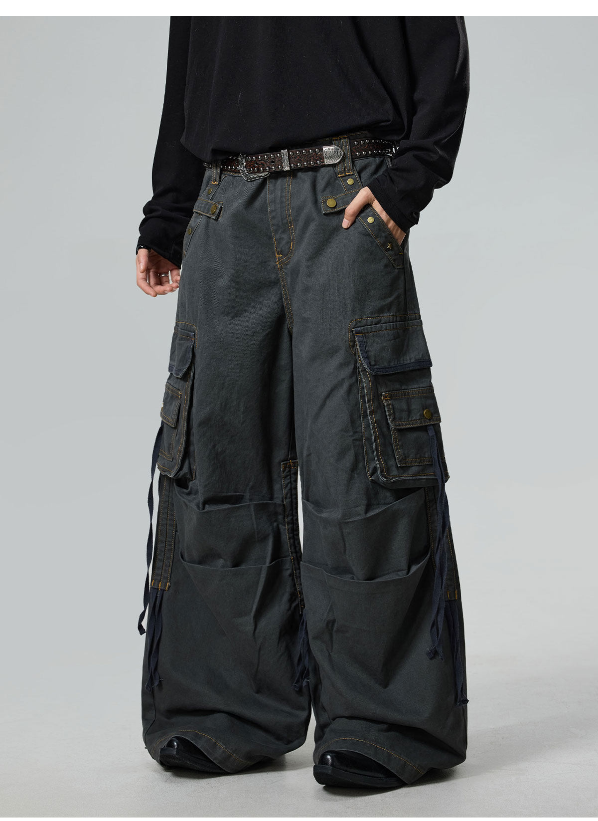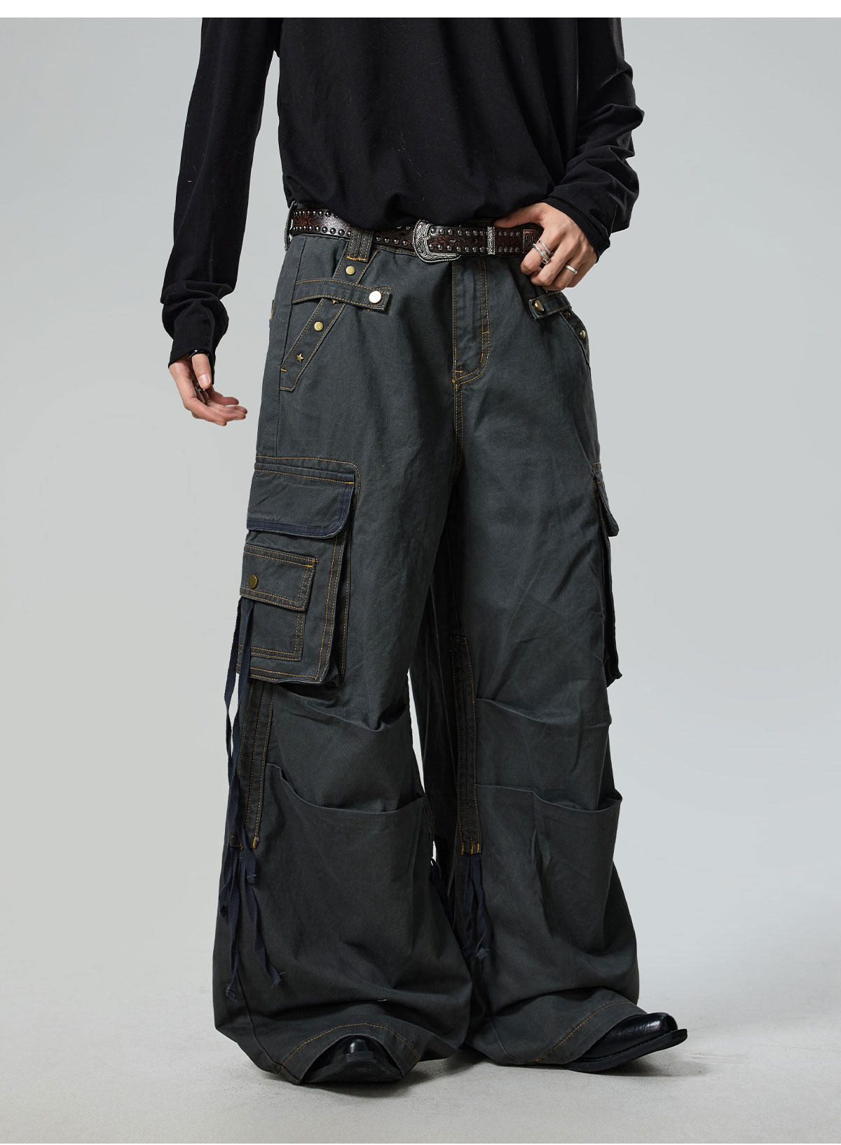 BTSG Blockbuster Wash Design Multi-Pocket Wide Leg Pants