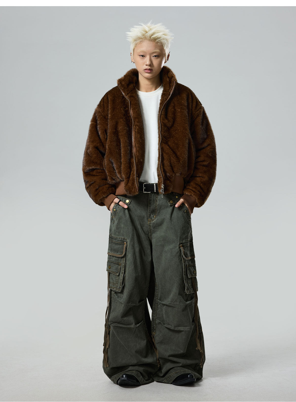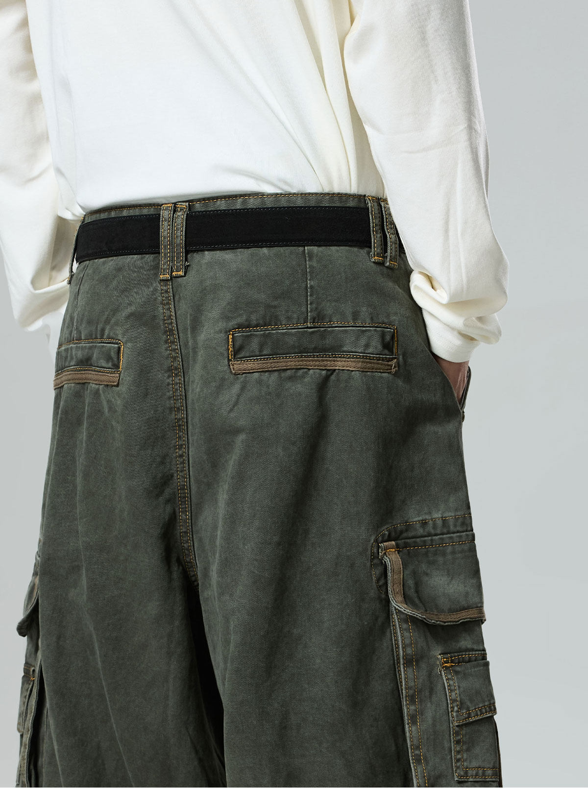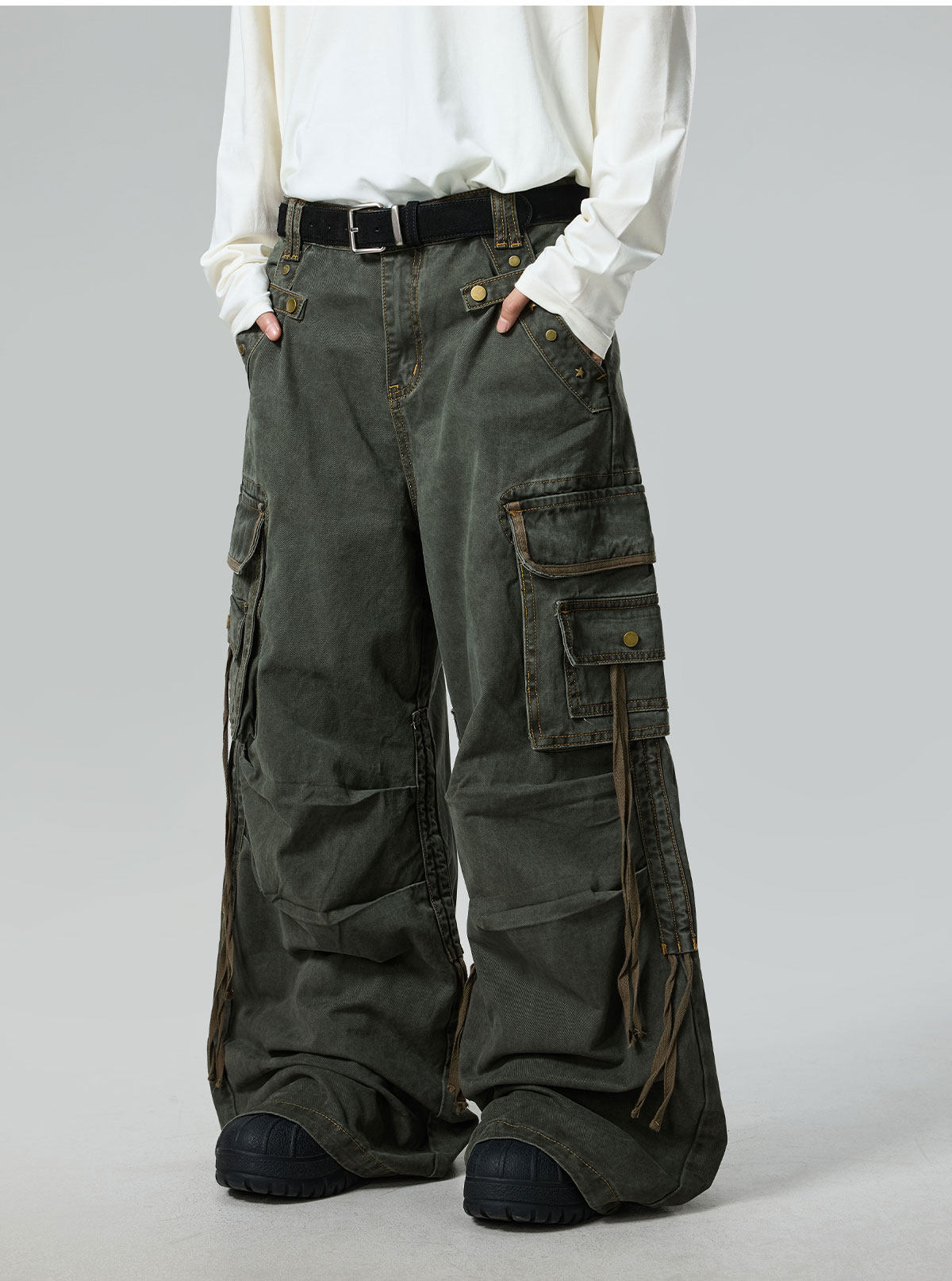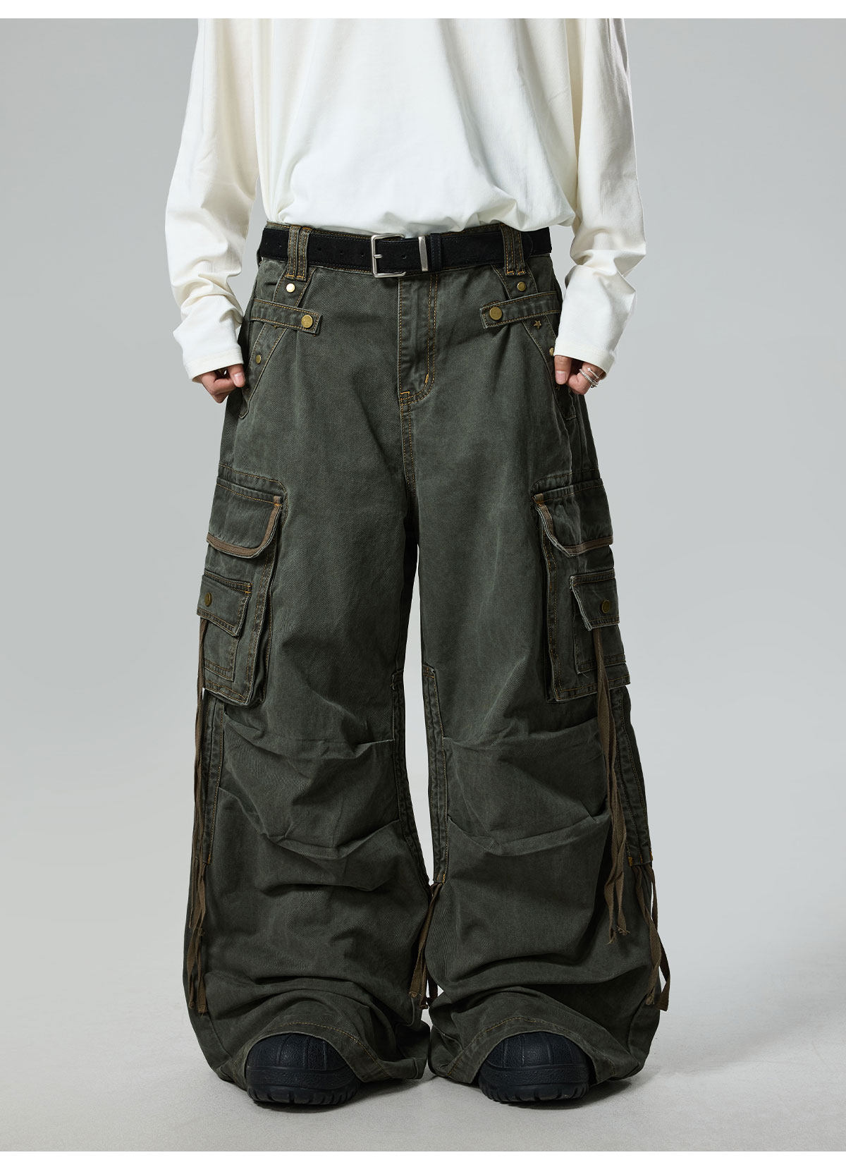 BTSG Blockbuster Wash Design Multi-Pocket Wide Leg Pants
