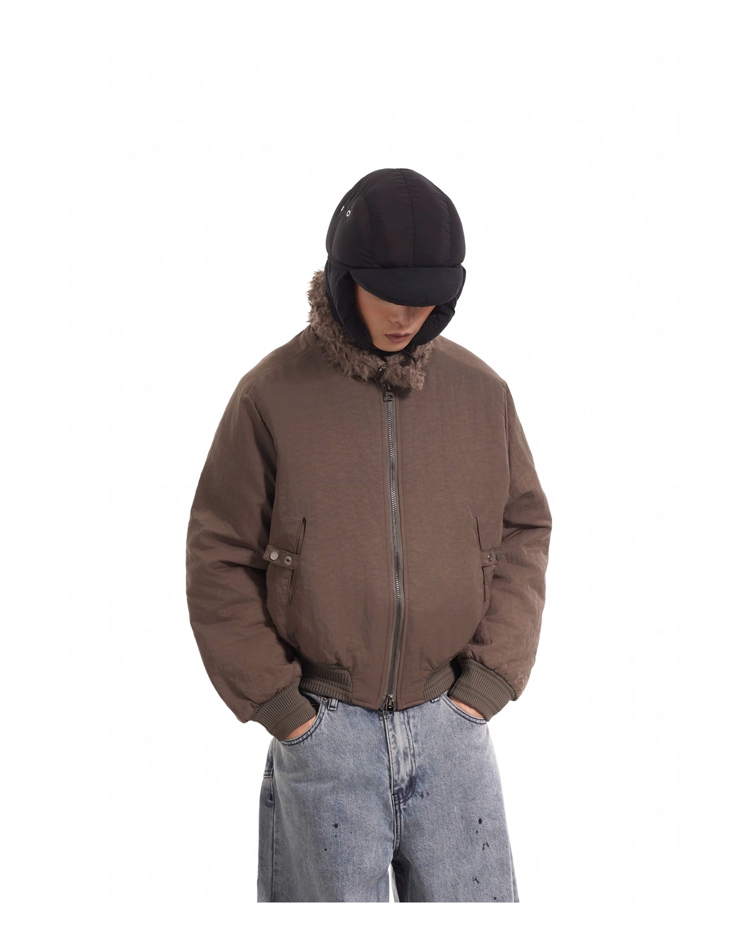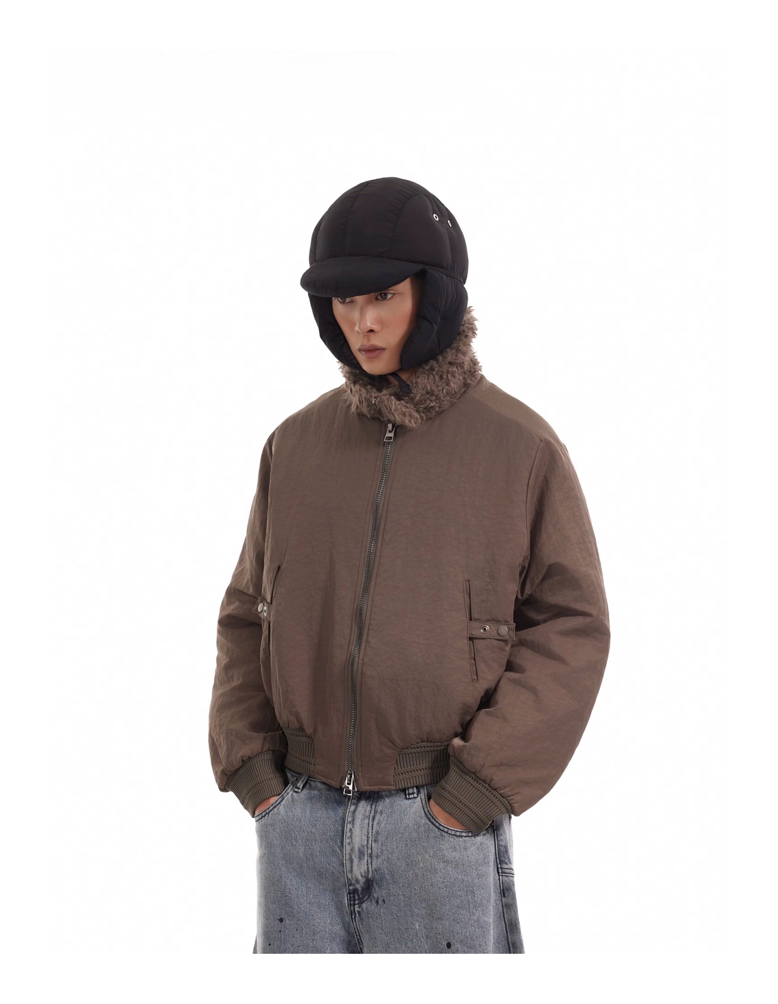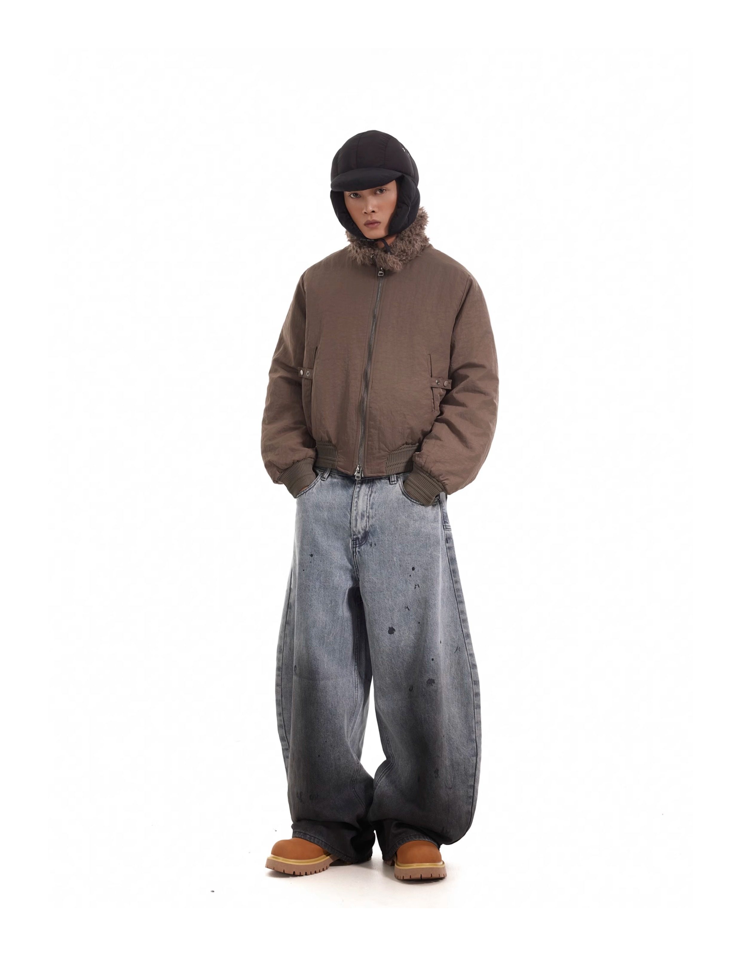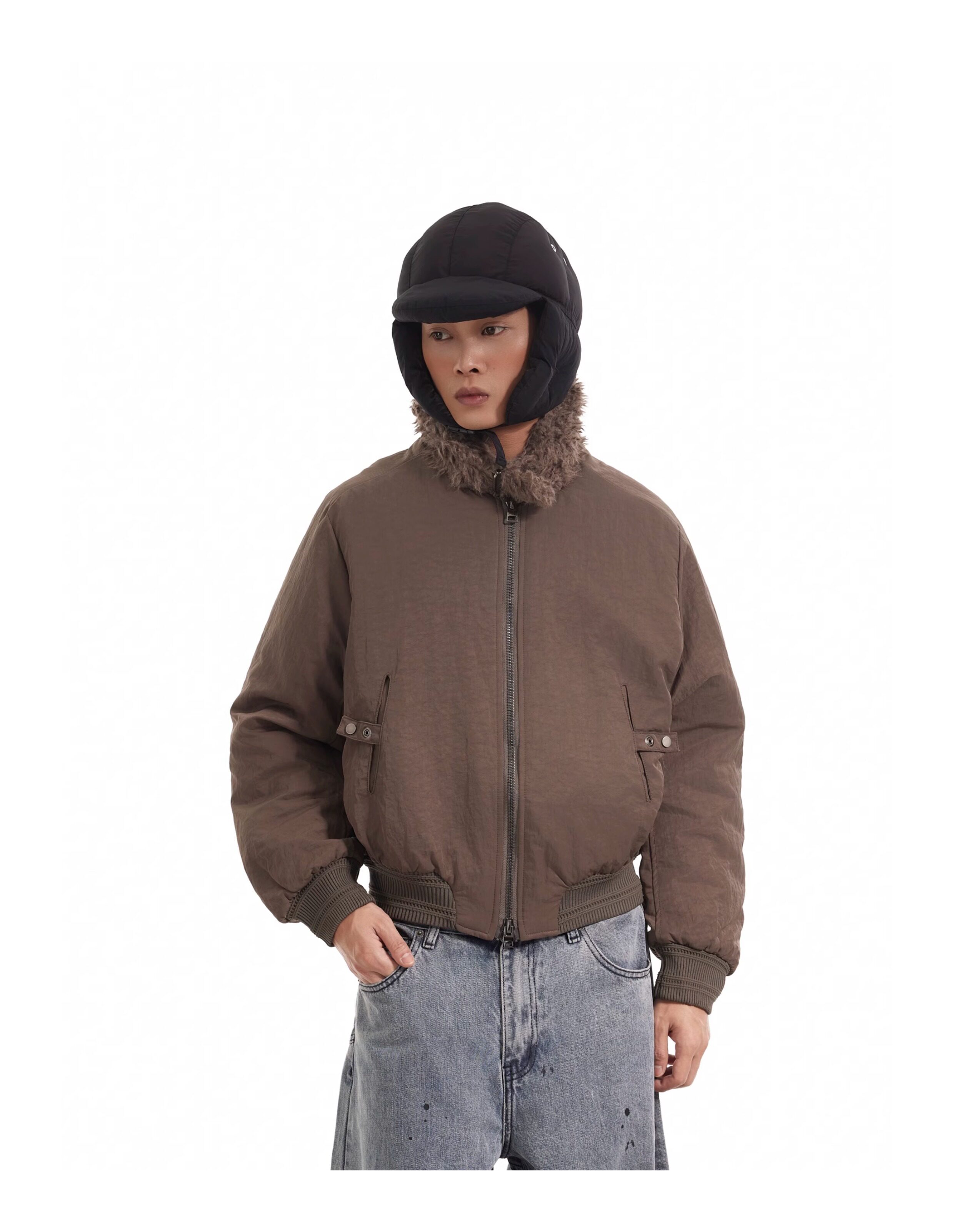 BTSG Boxy Deconstructed fleece collar jacket