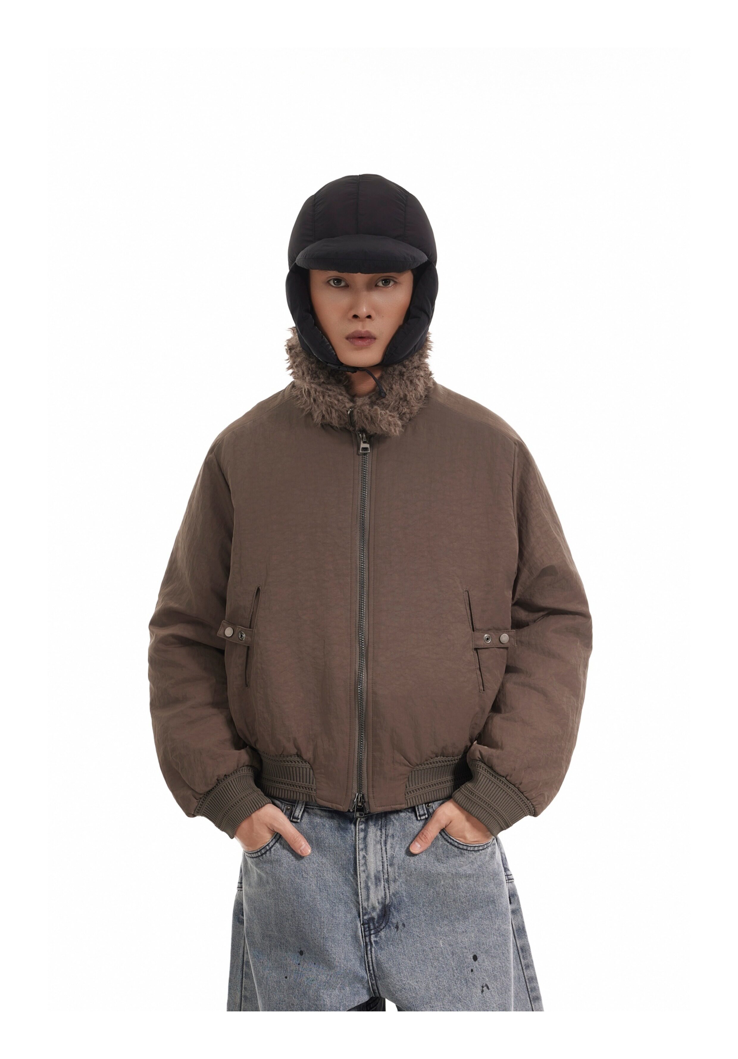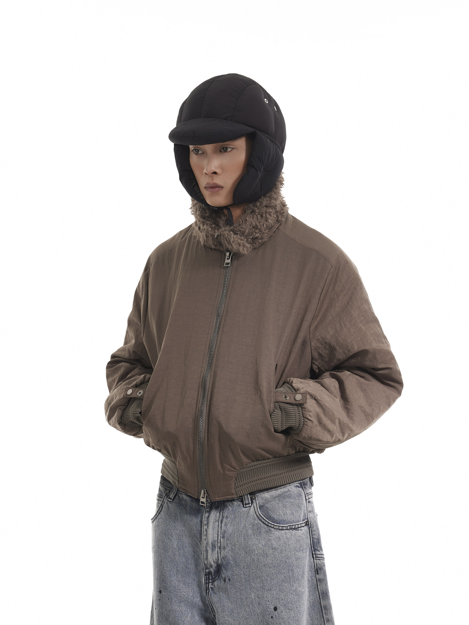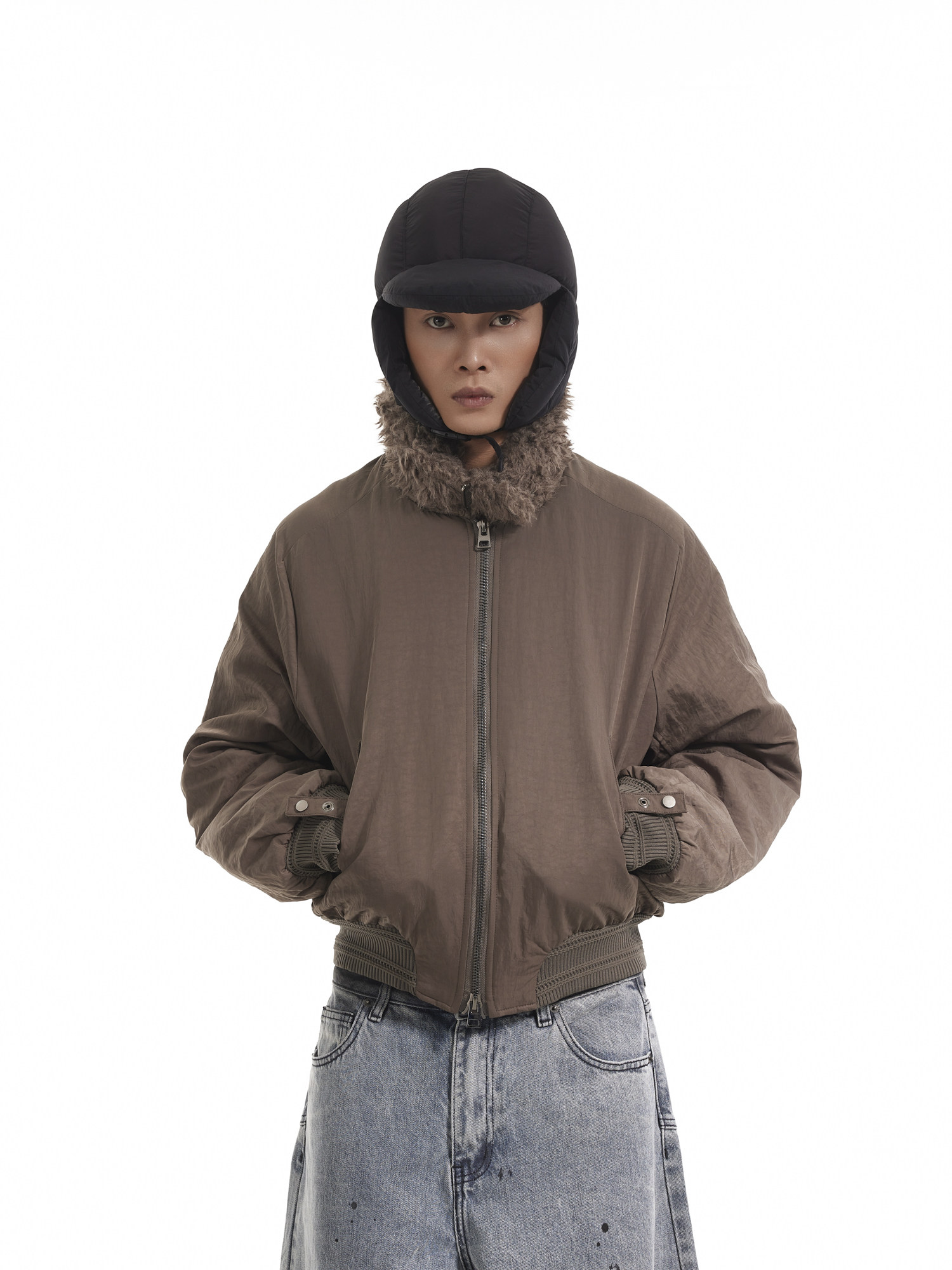 BTSG Boxy Deconstructed fleece collar jacket