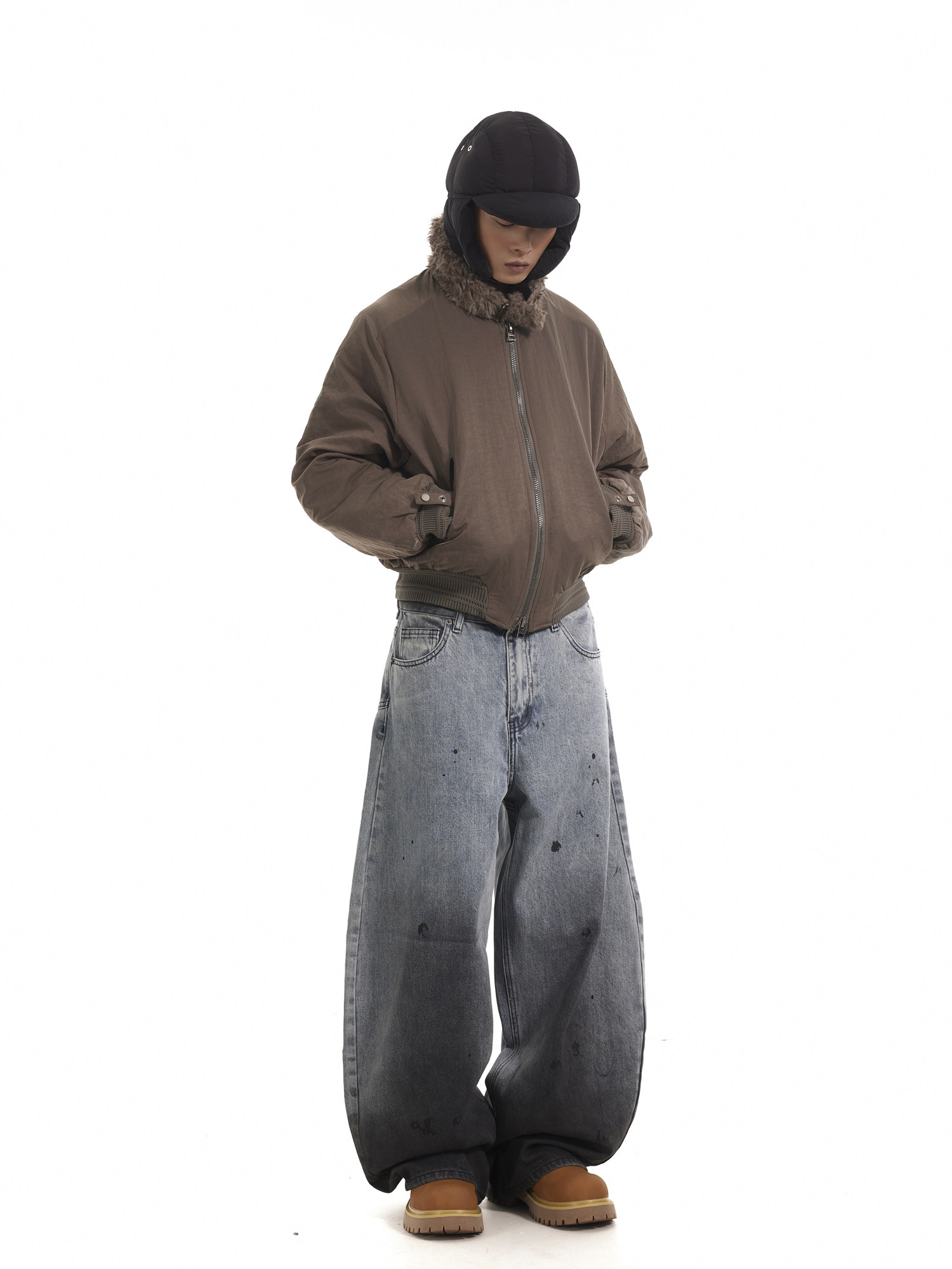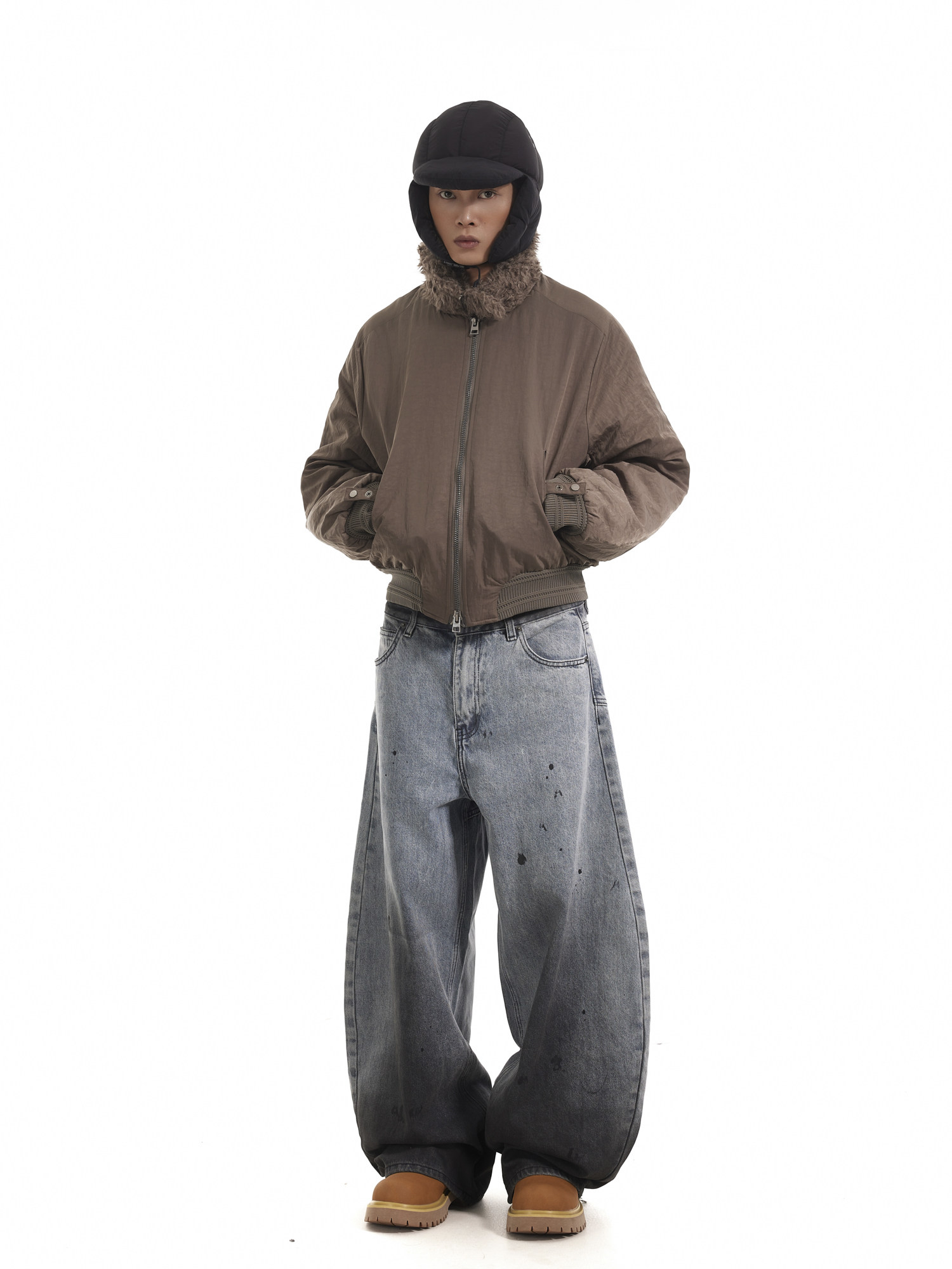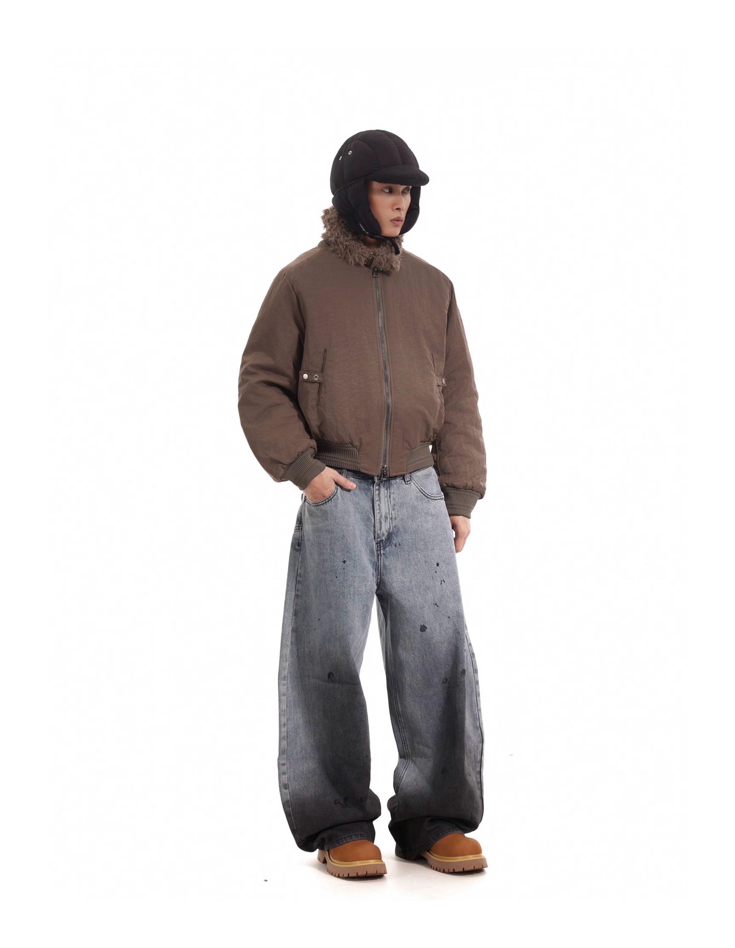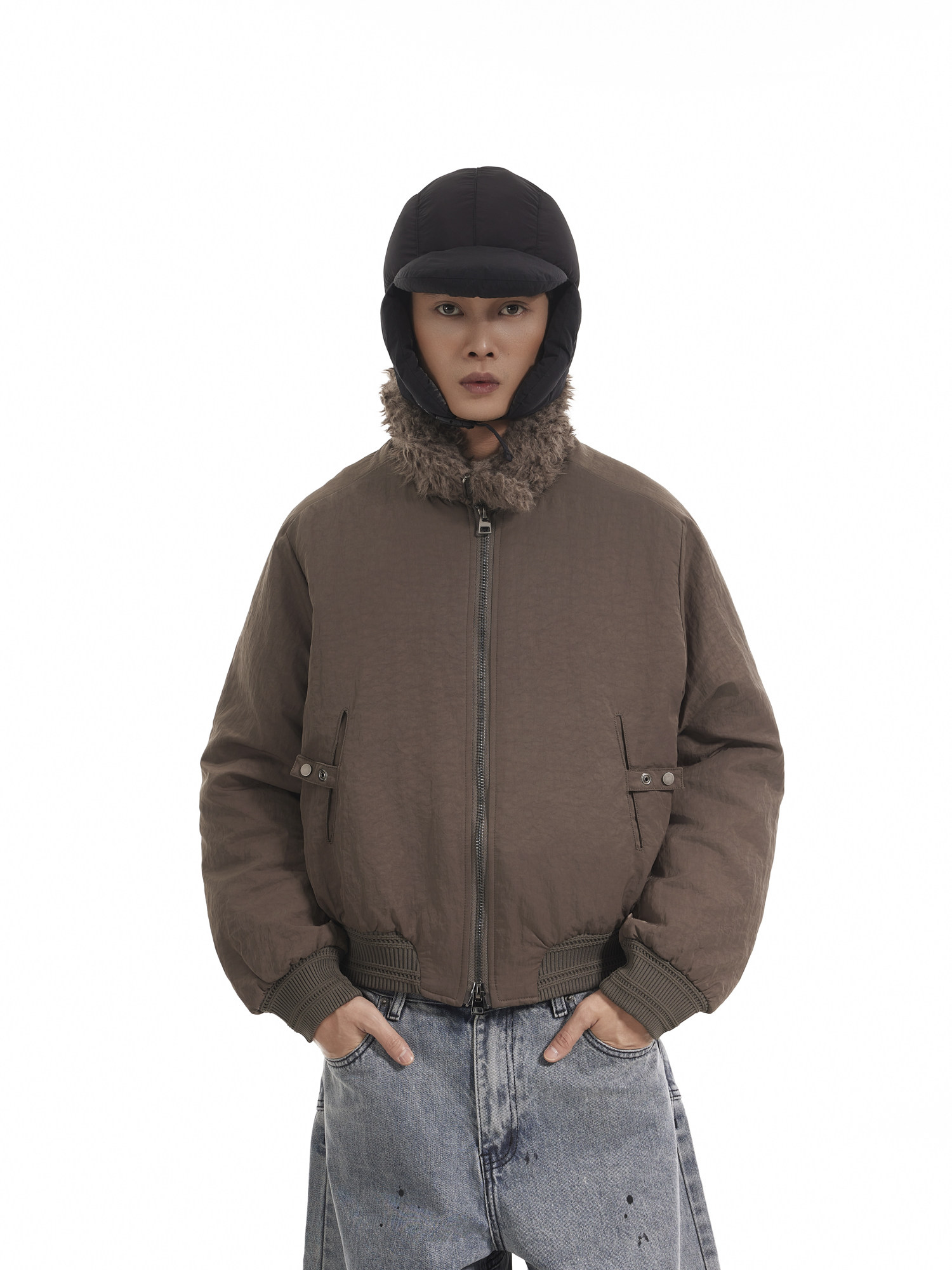 BTSG Boxy Deconstructed fleece collar jacket