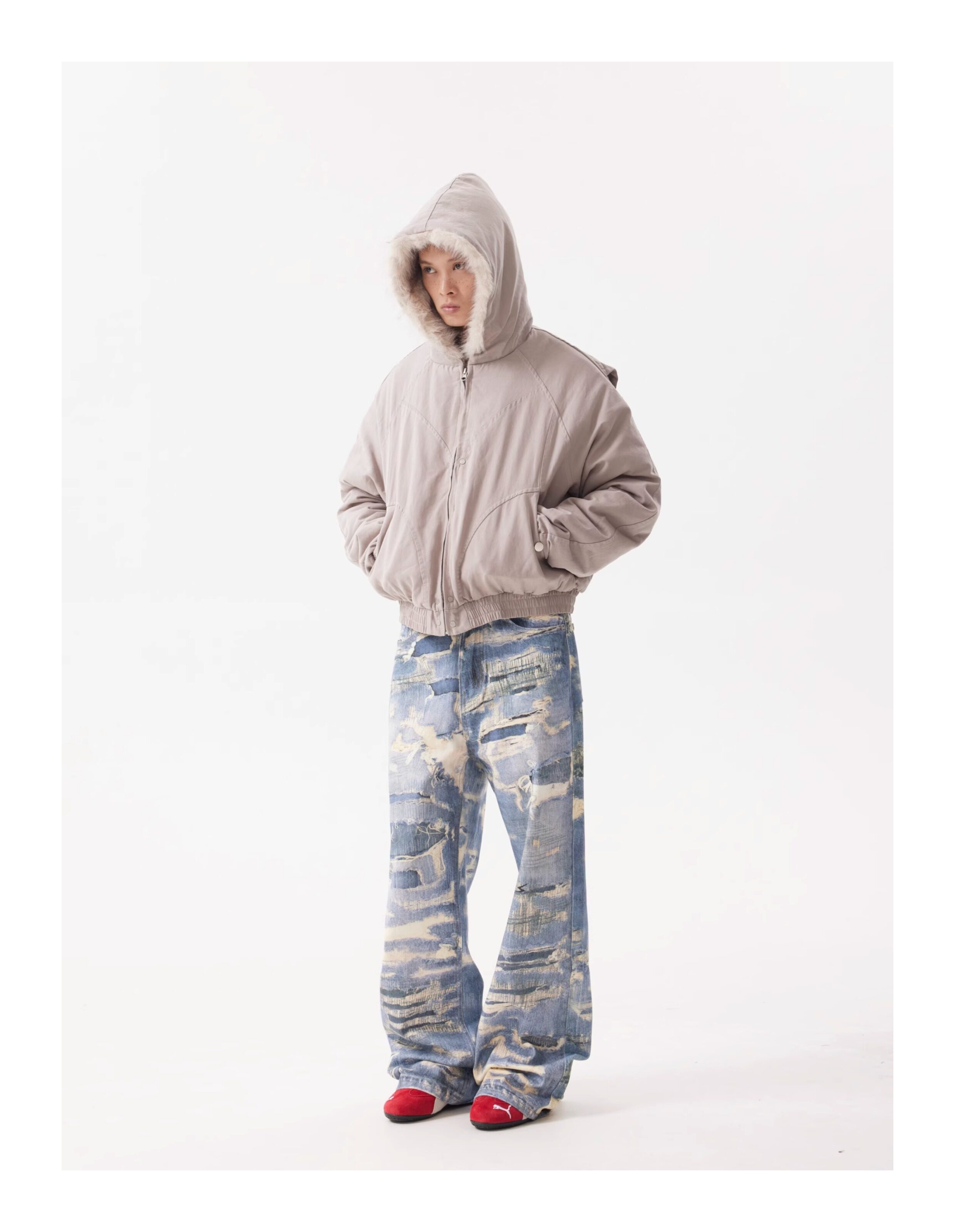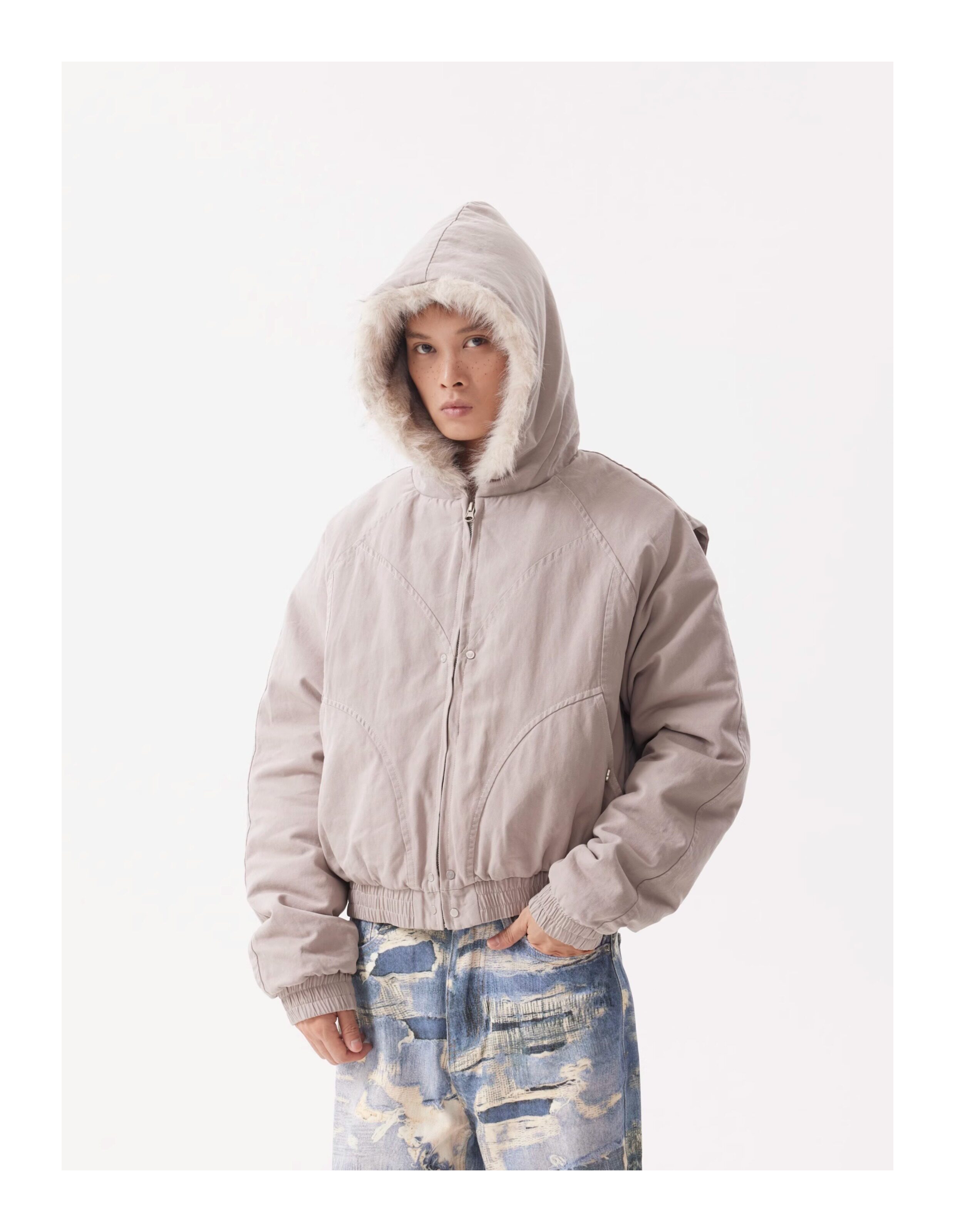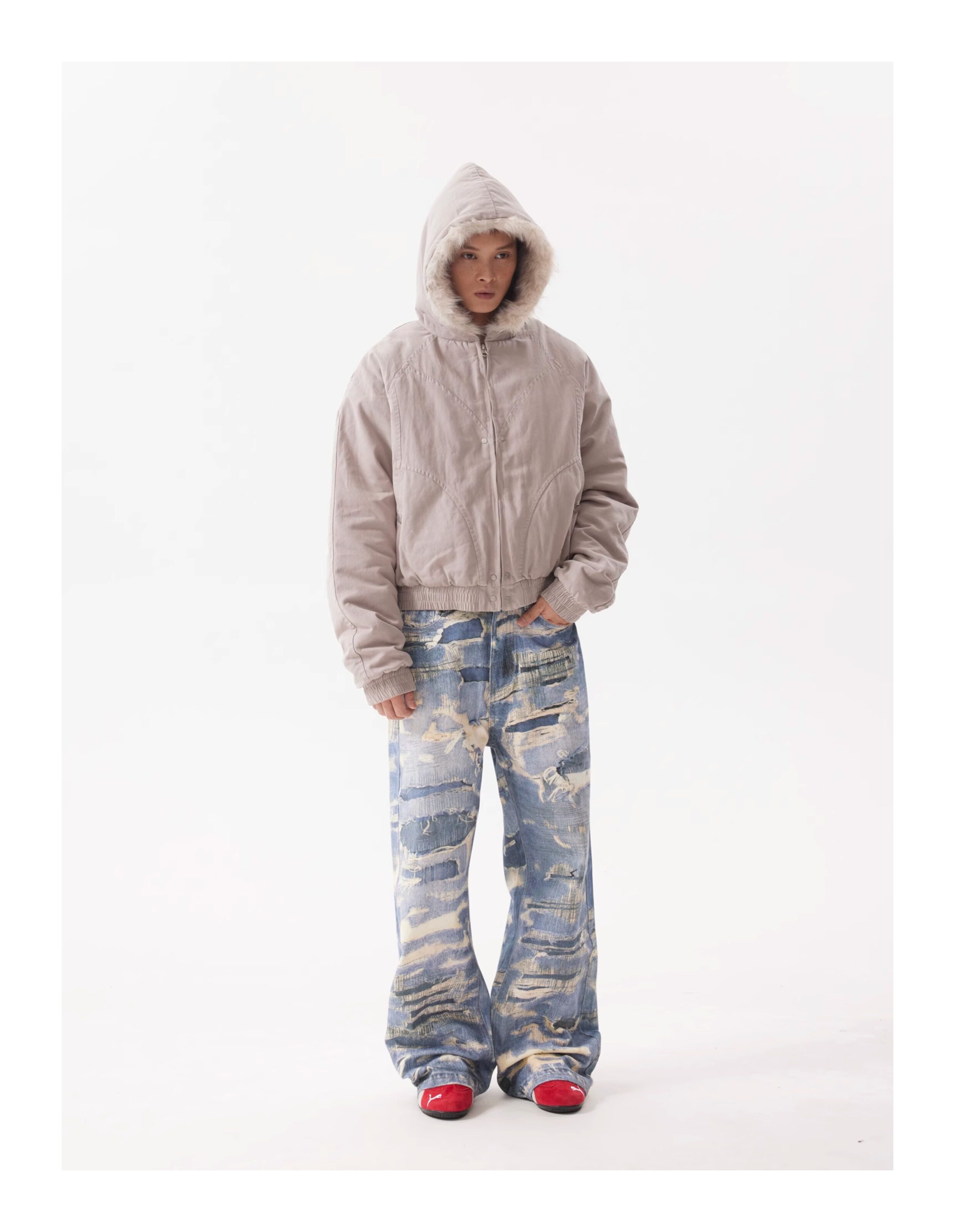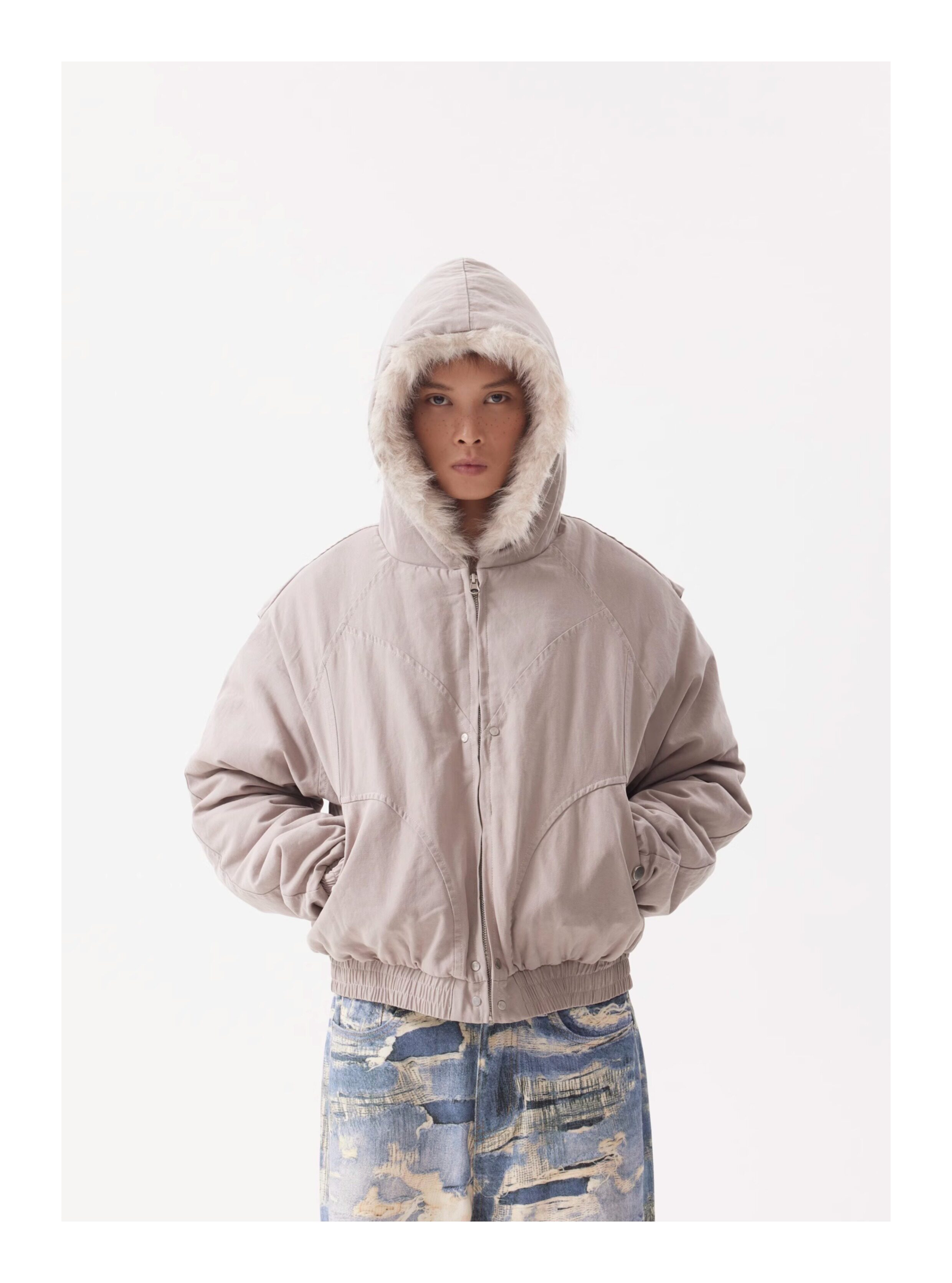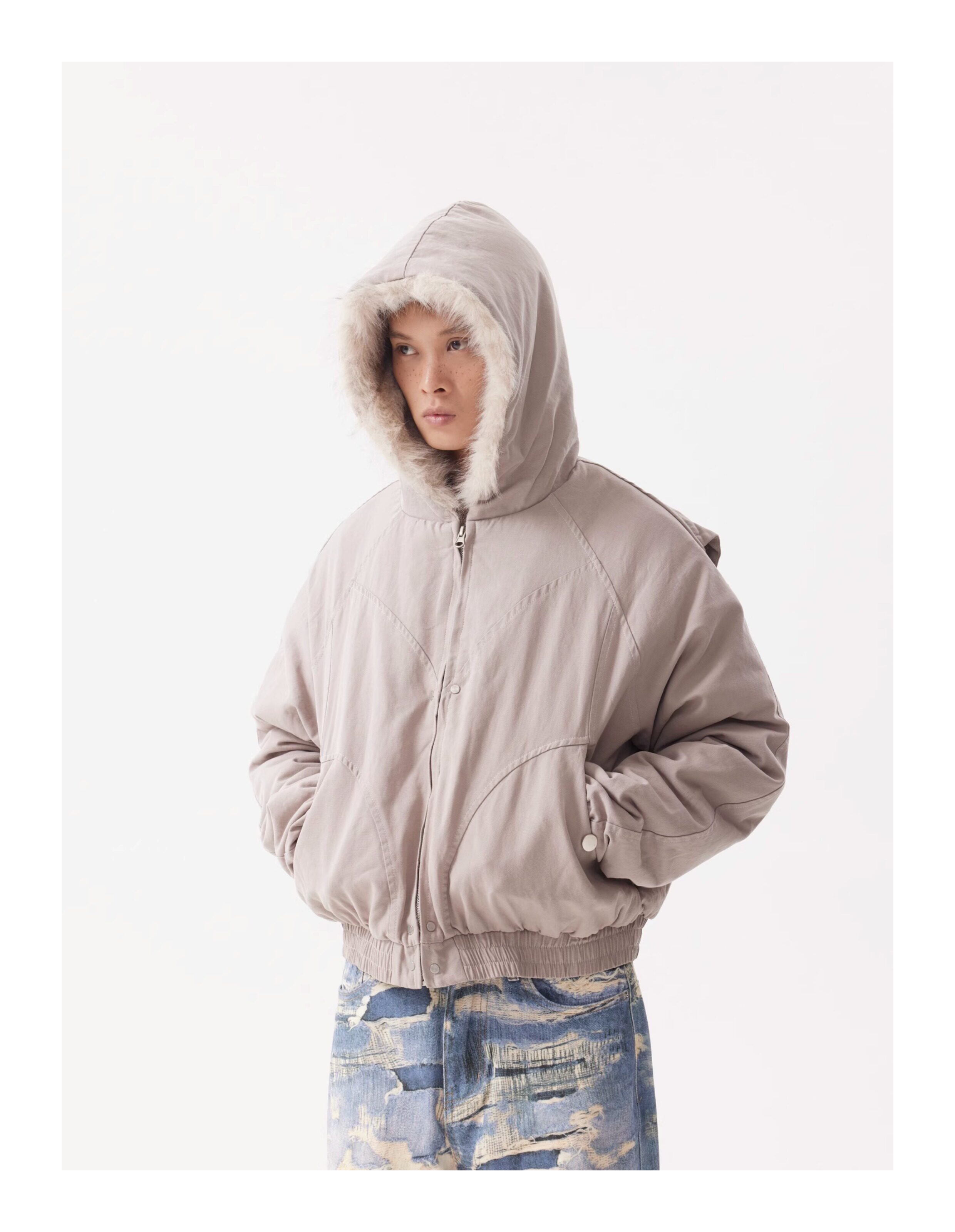 BTSG Canvas Cropped Plush Jacket