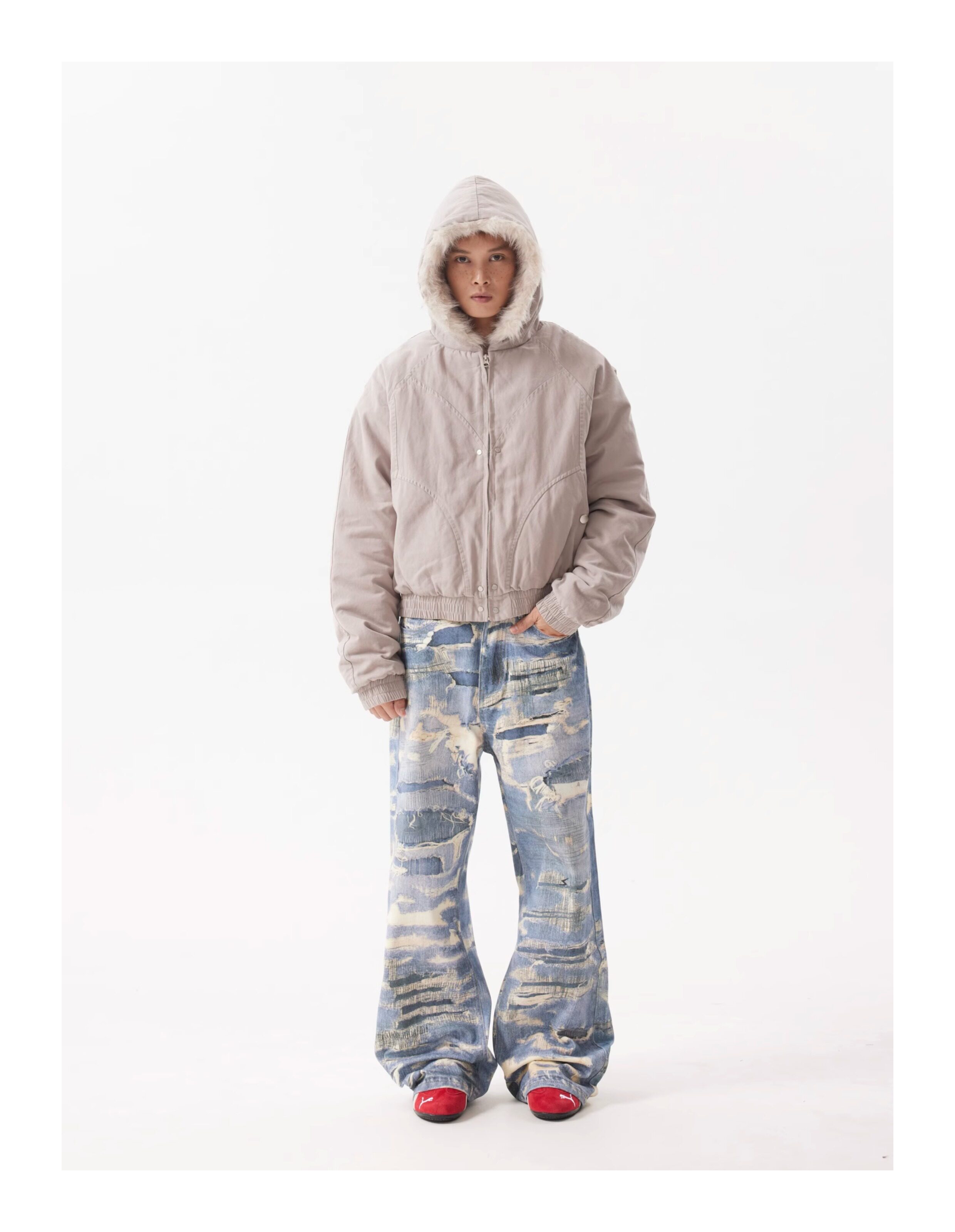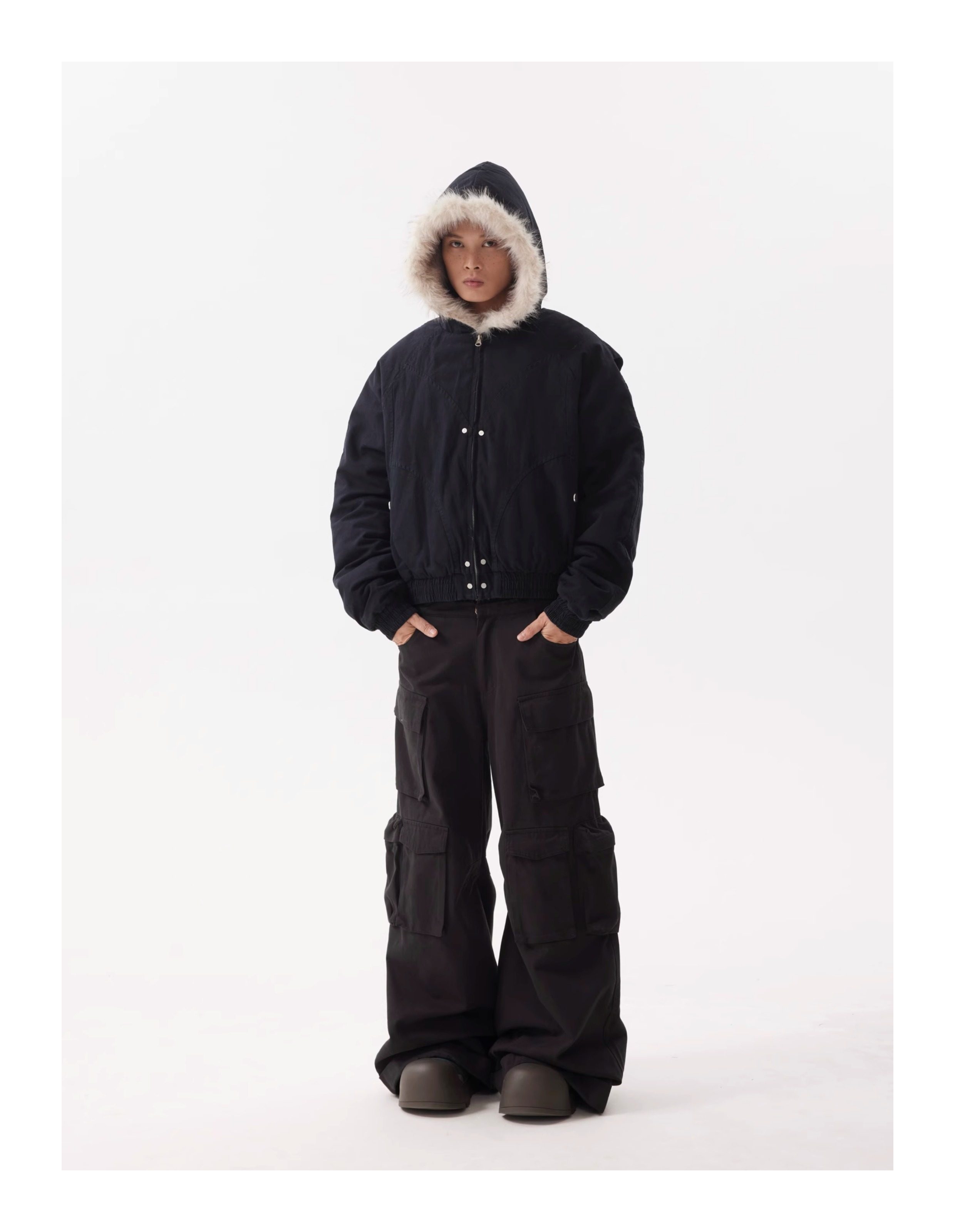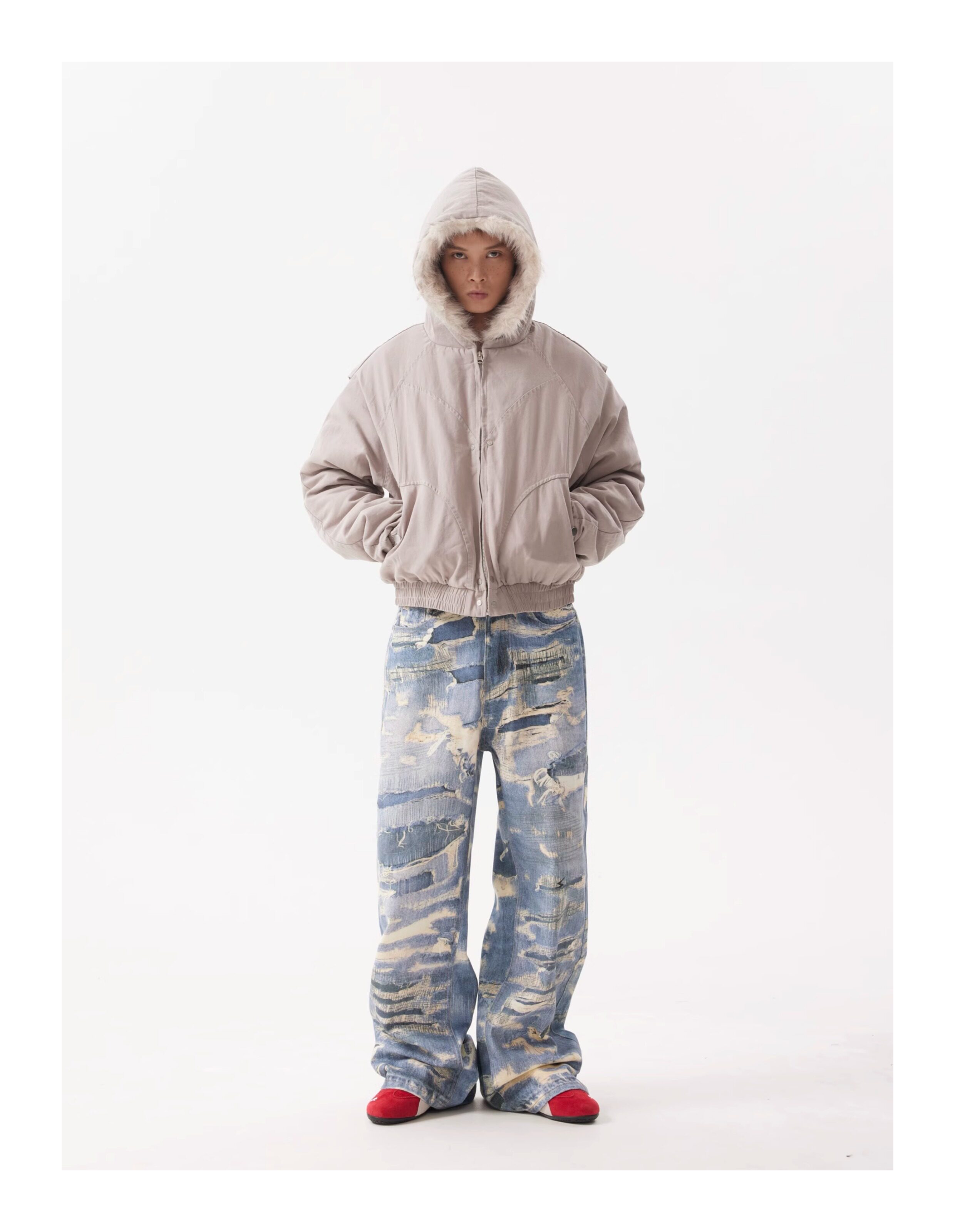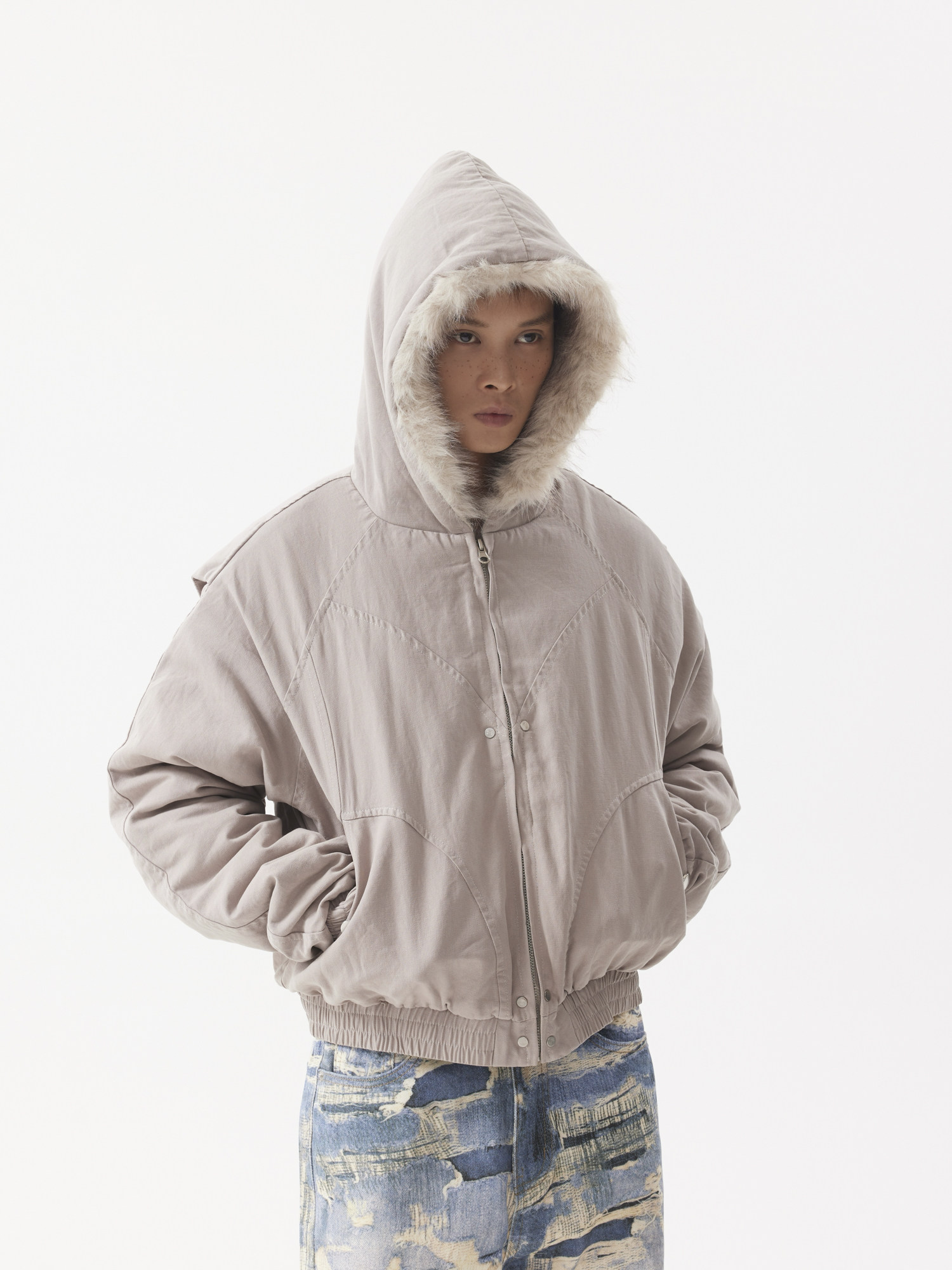 BTSG Canvas Cropped Plush Jacket