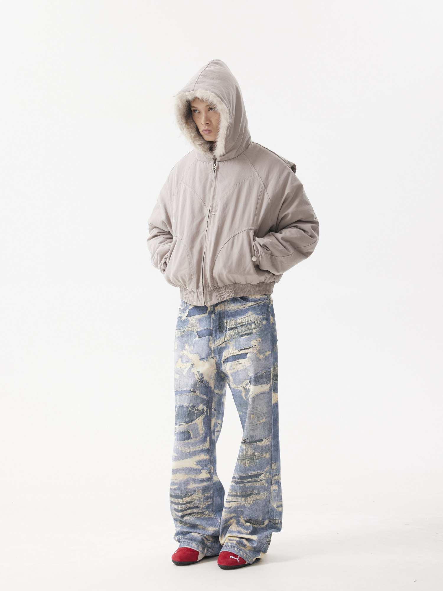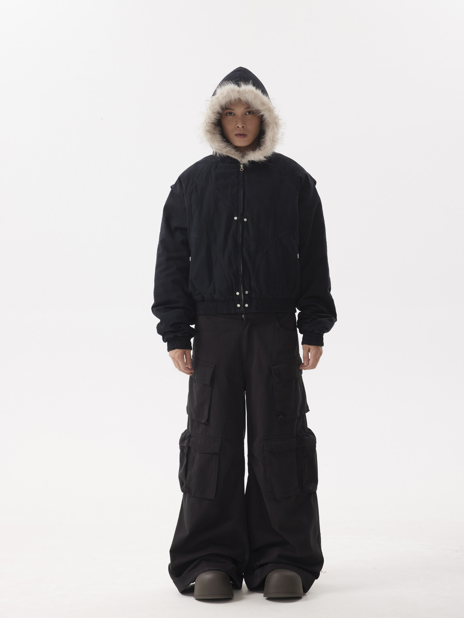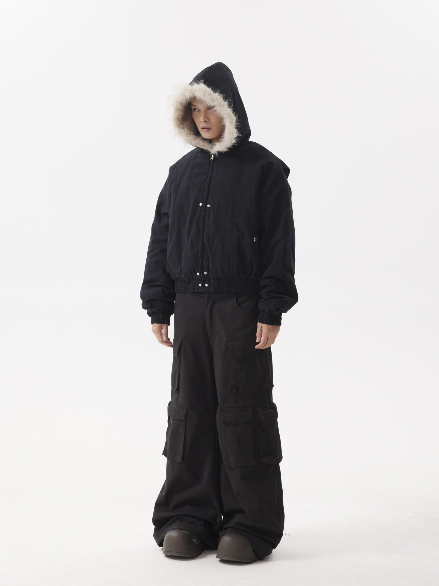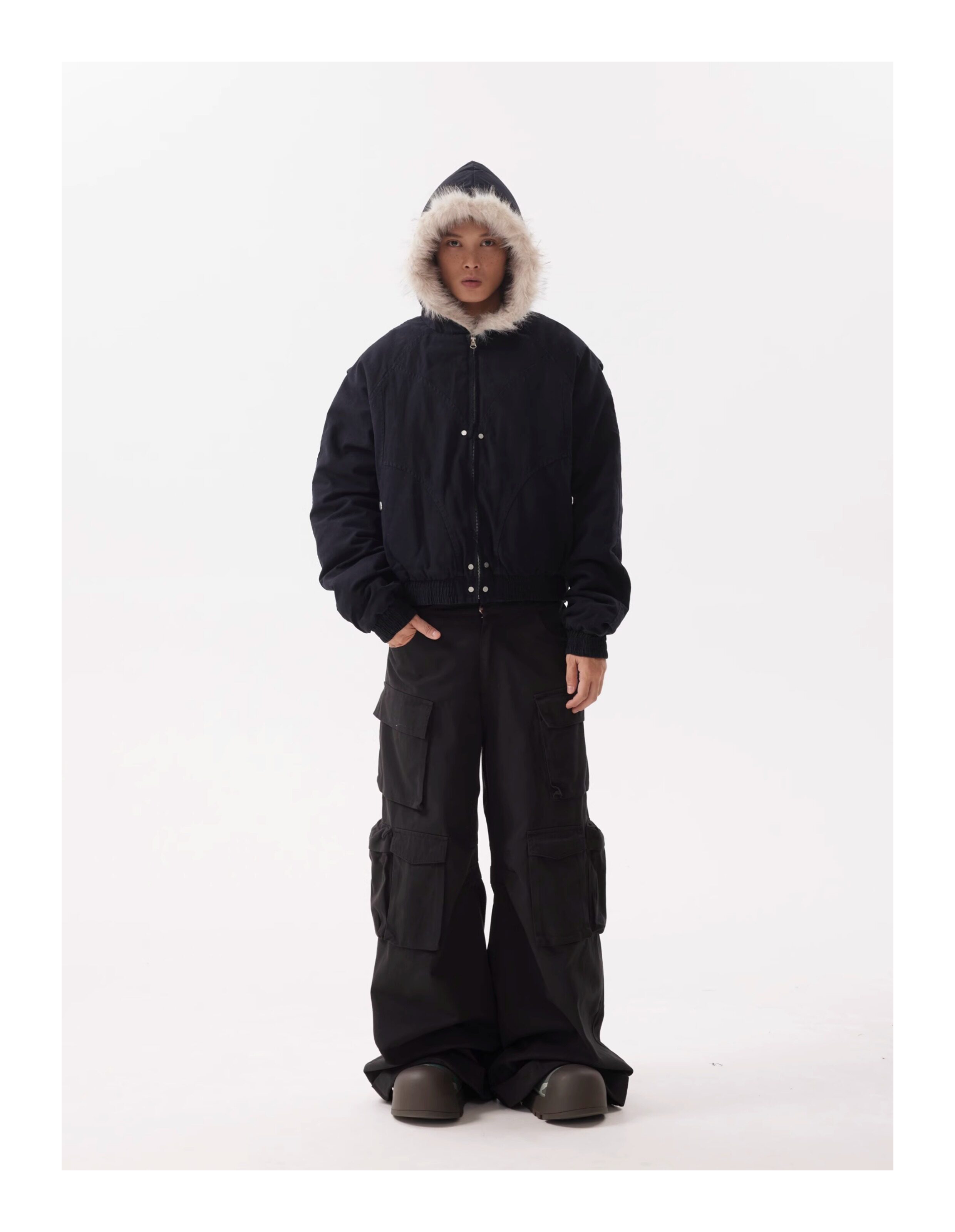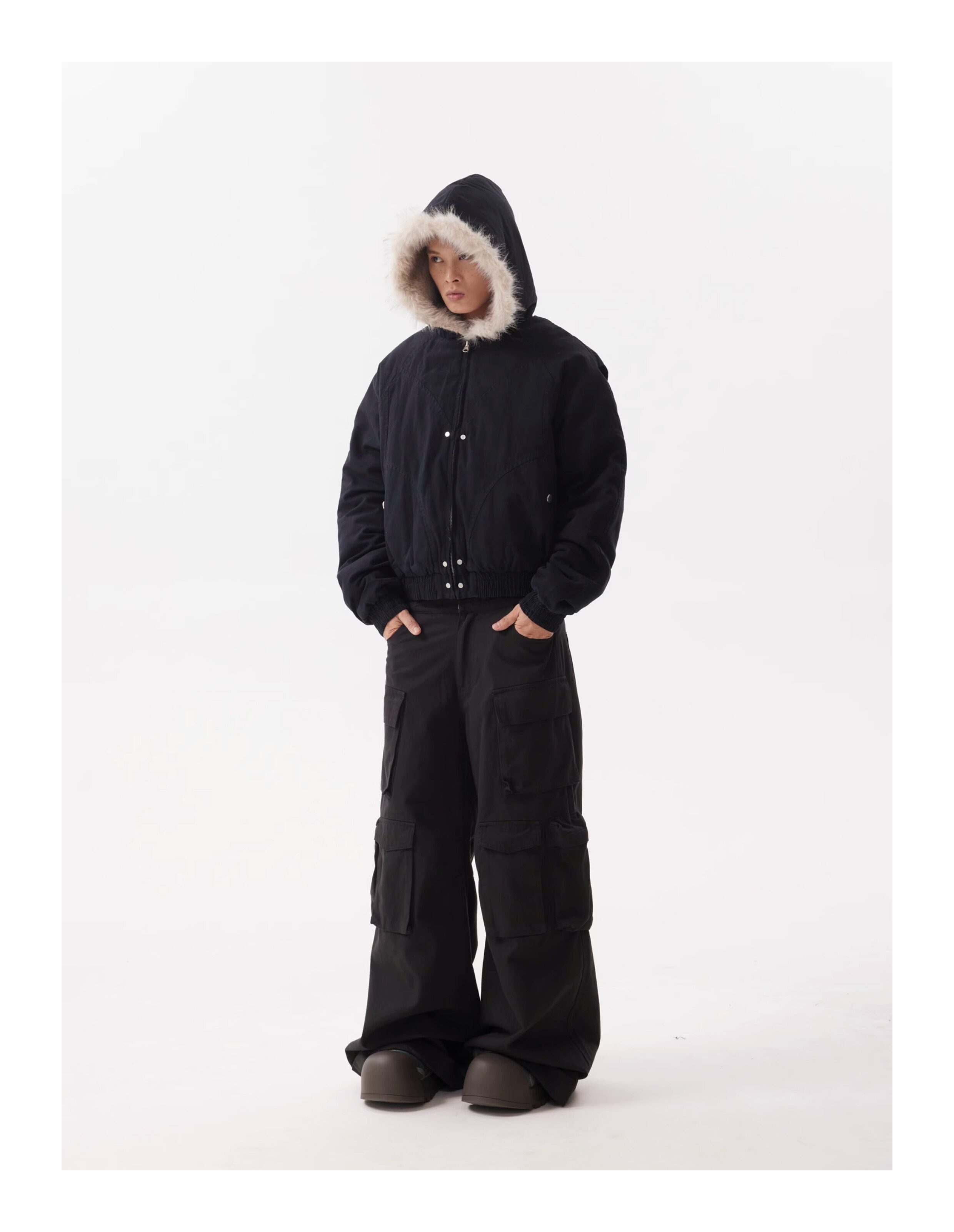 BTSG Canvas Cropped Plush Jacket