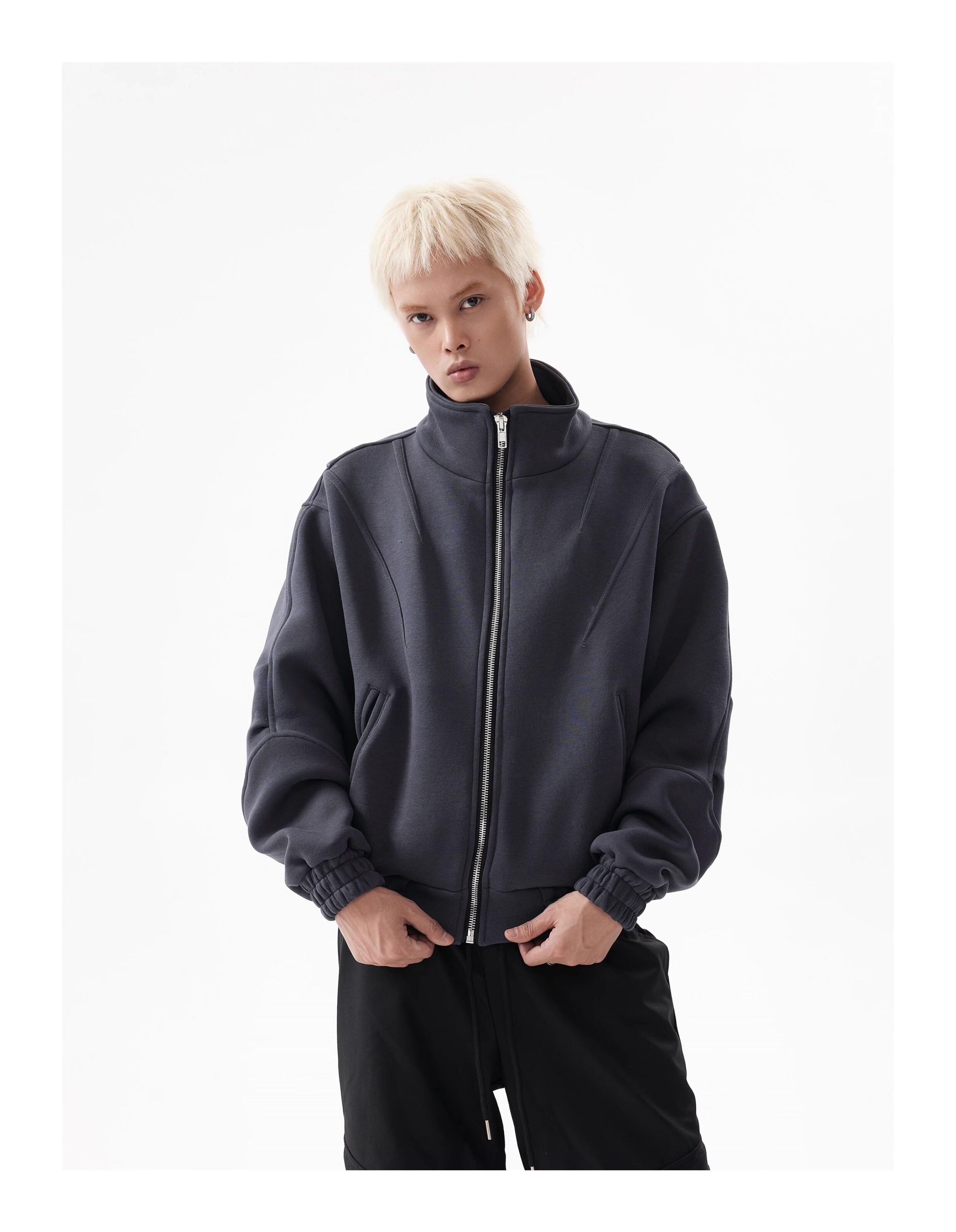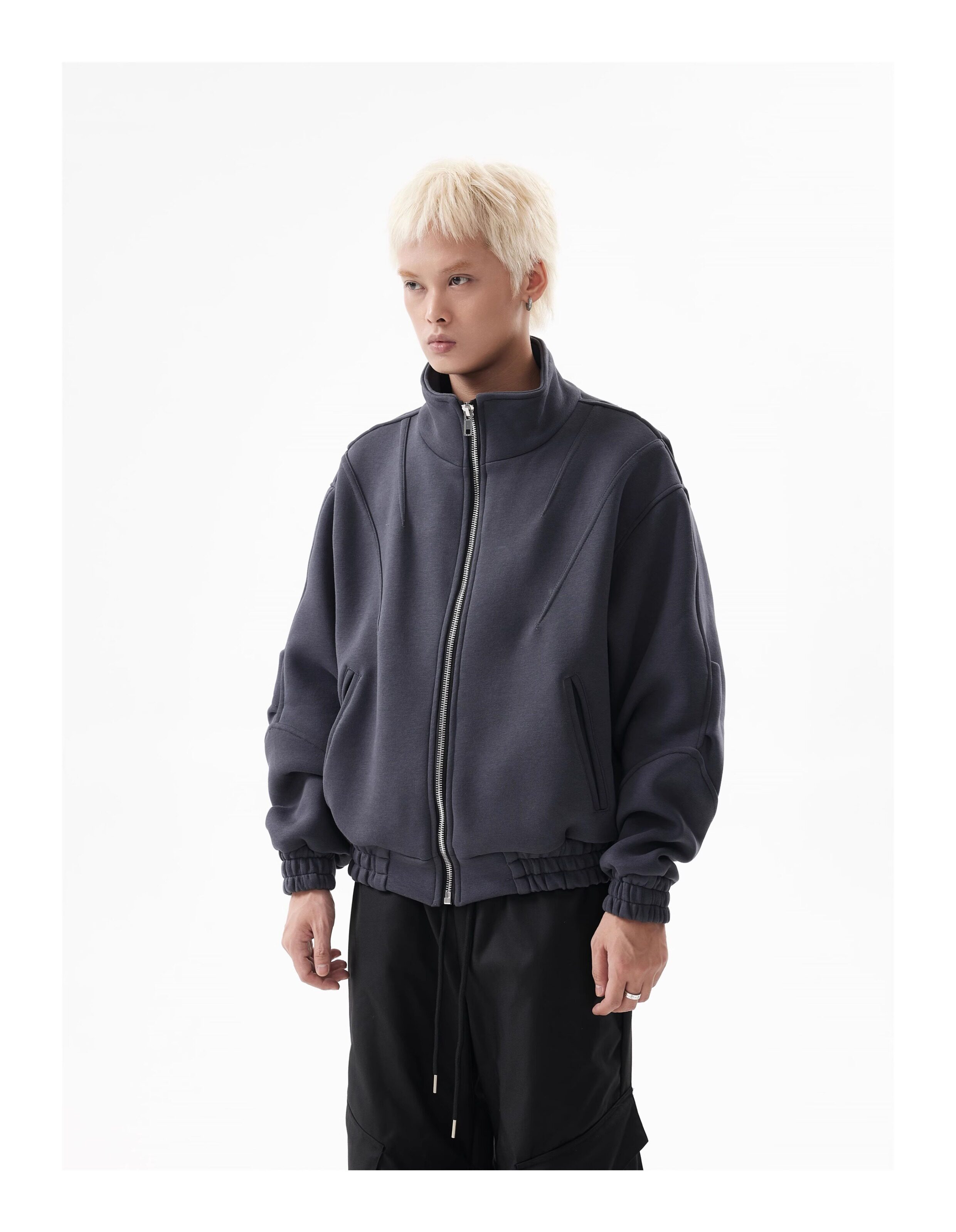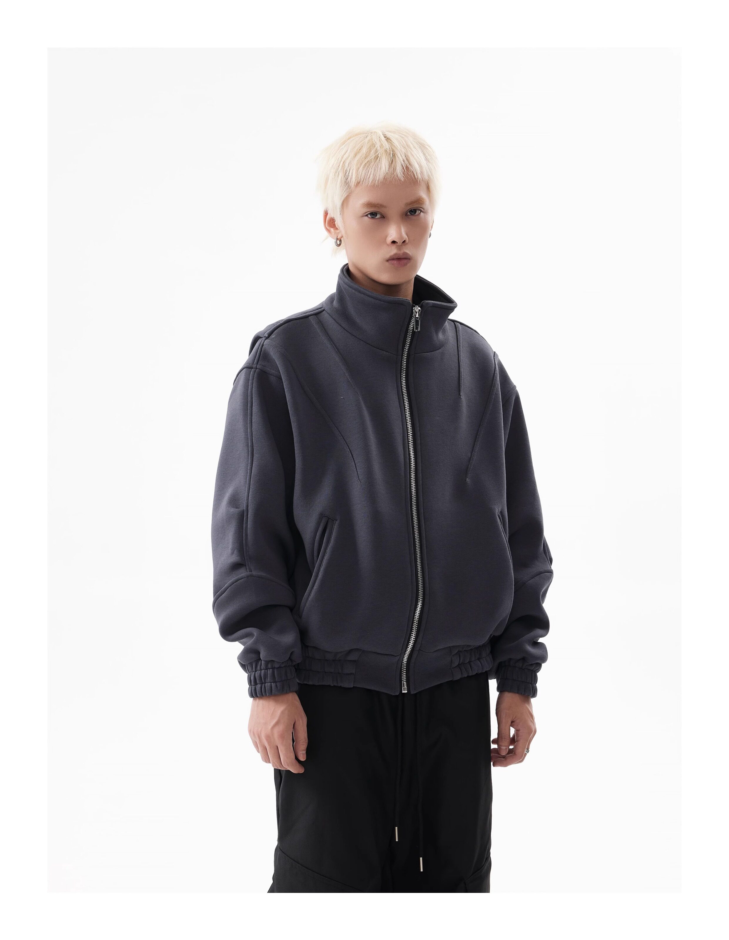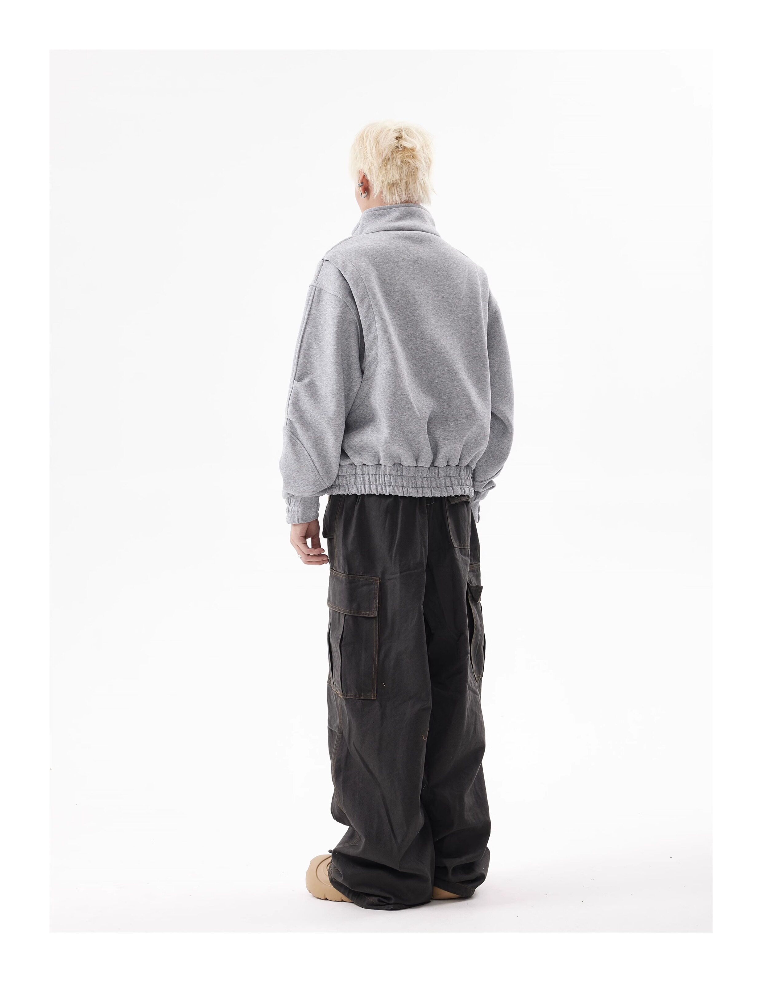 BTSG Deconstructed boxy cropped silhouette double zip jacket