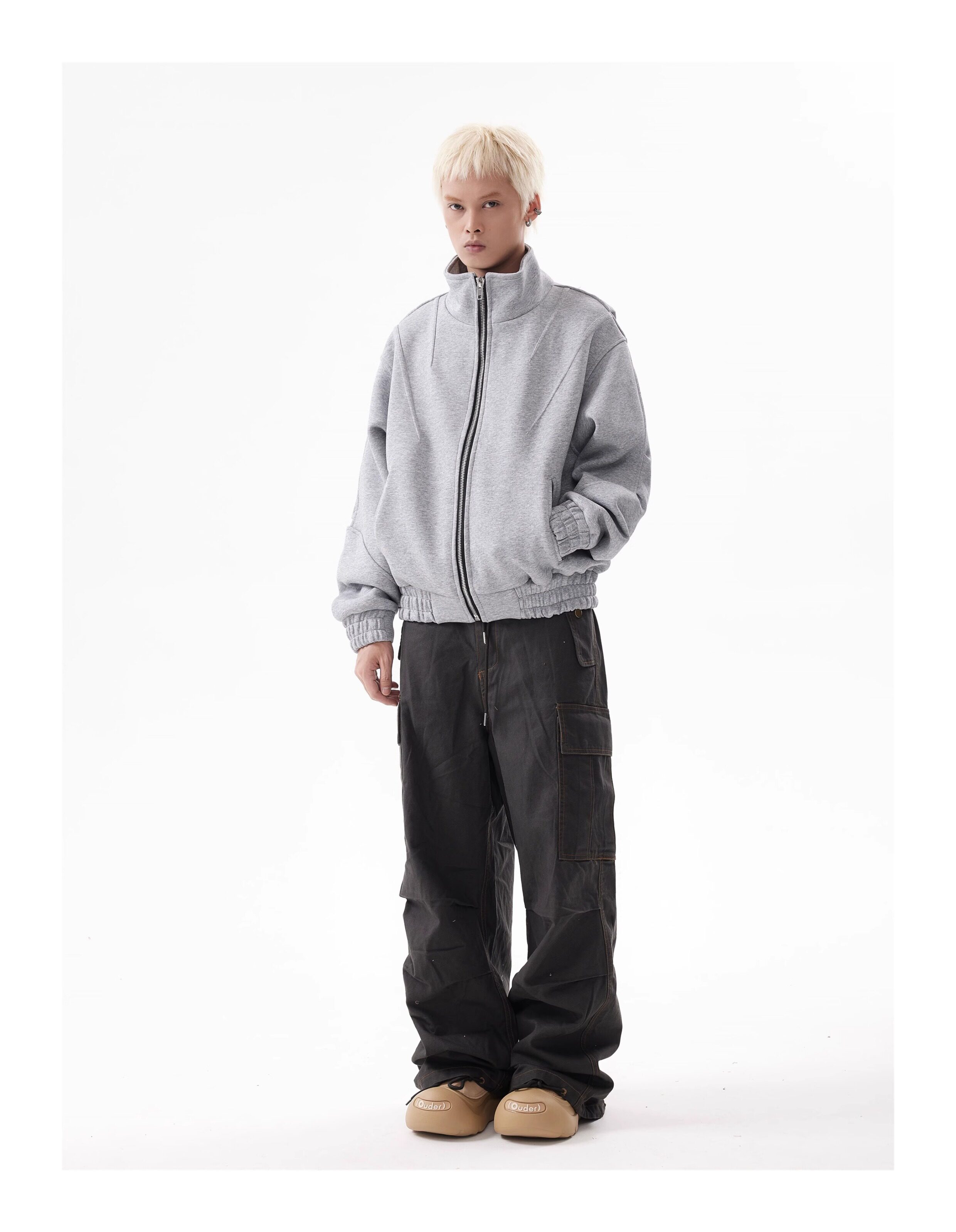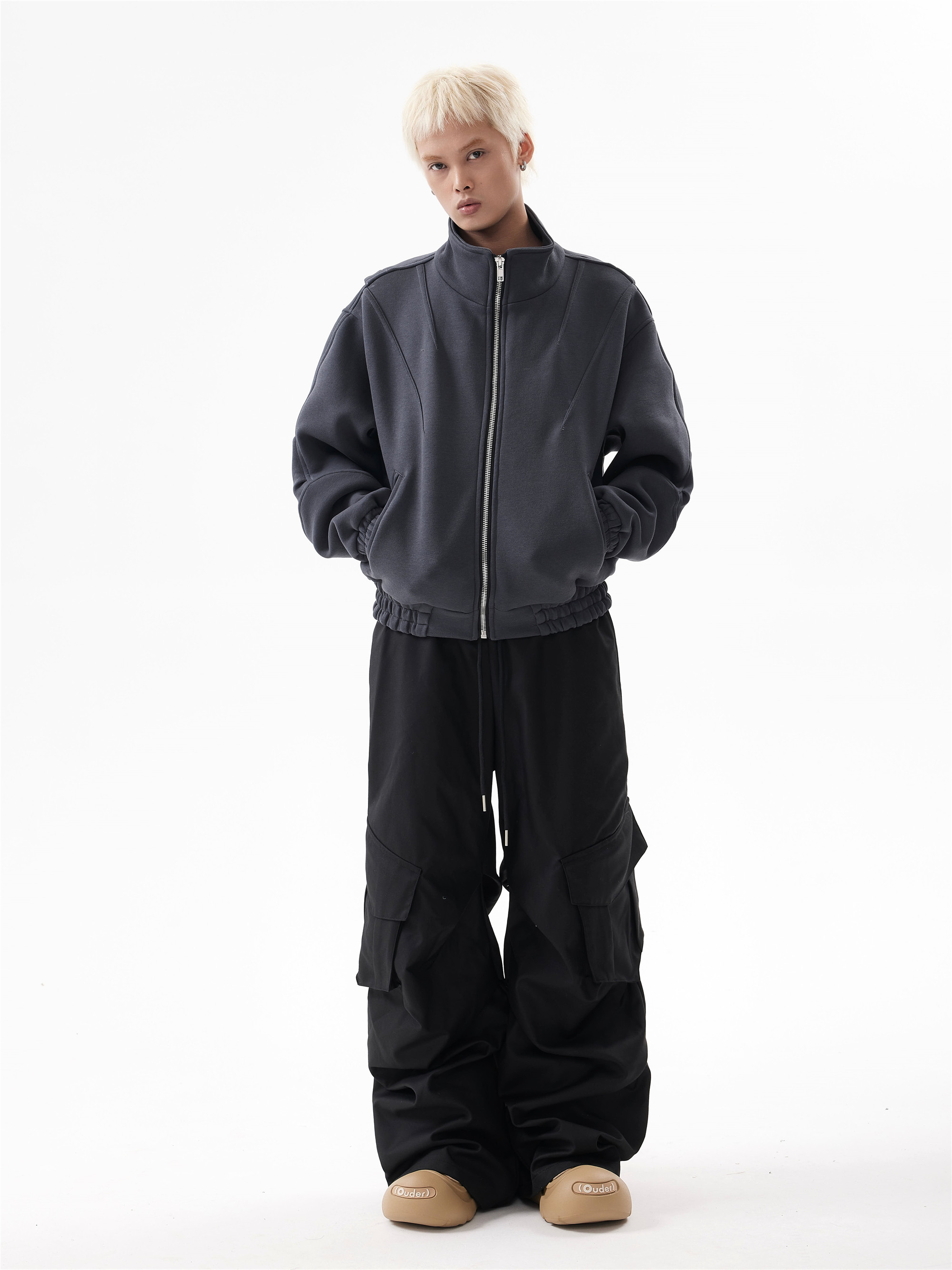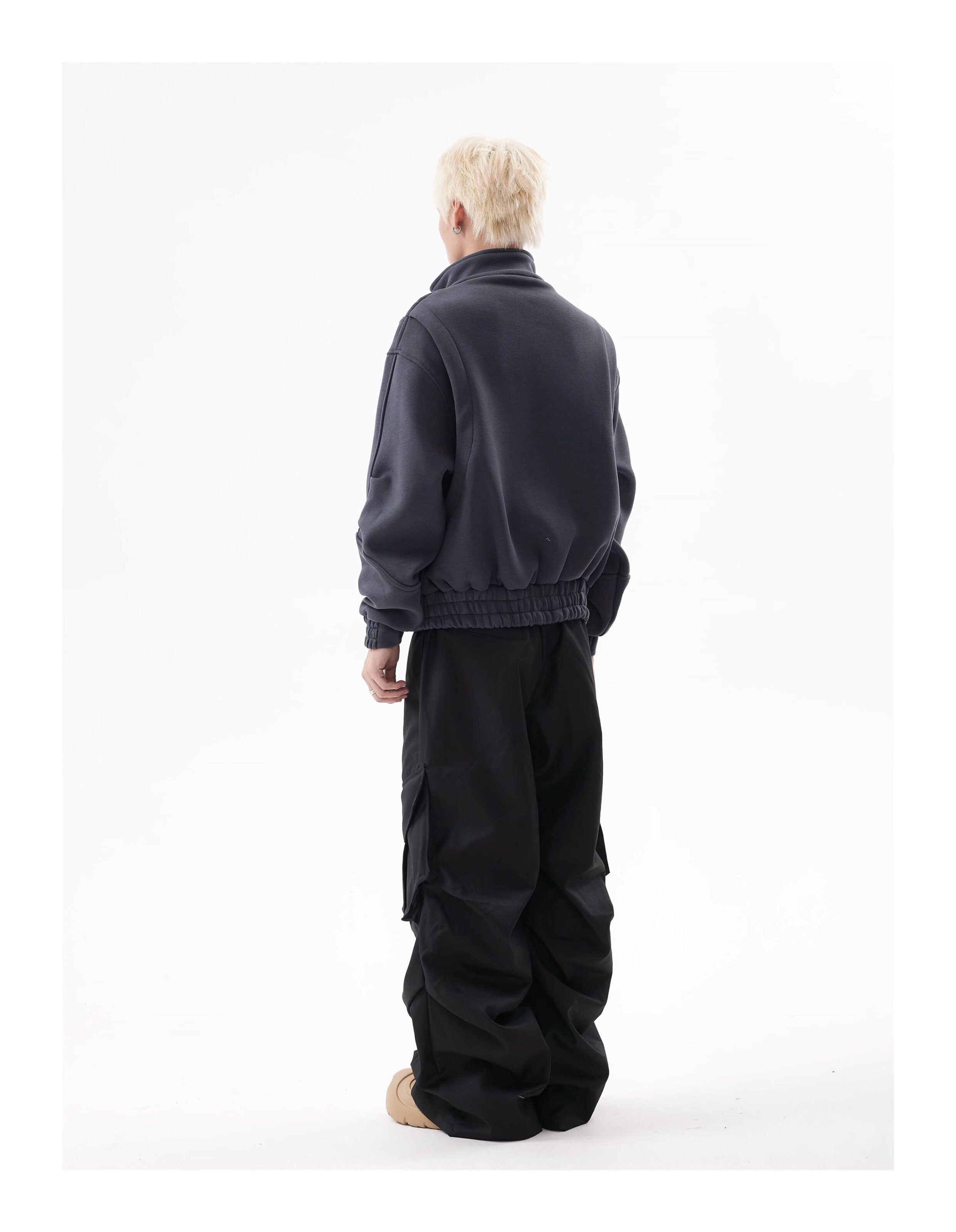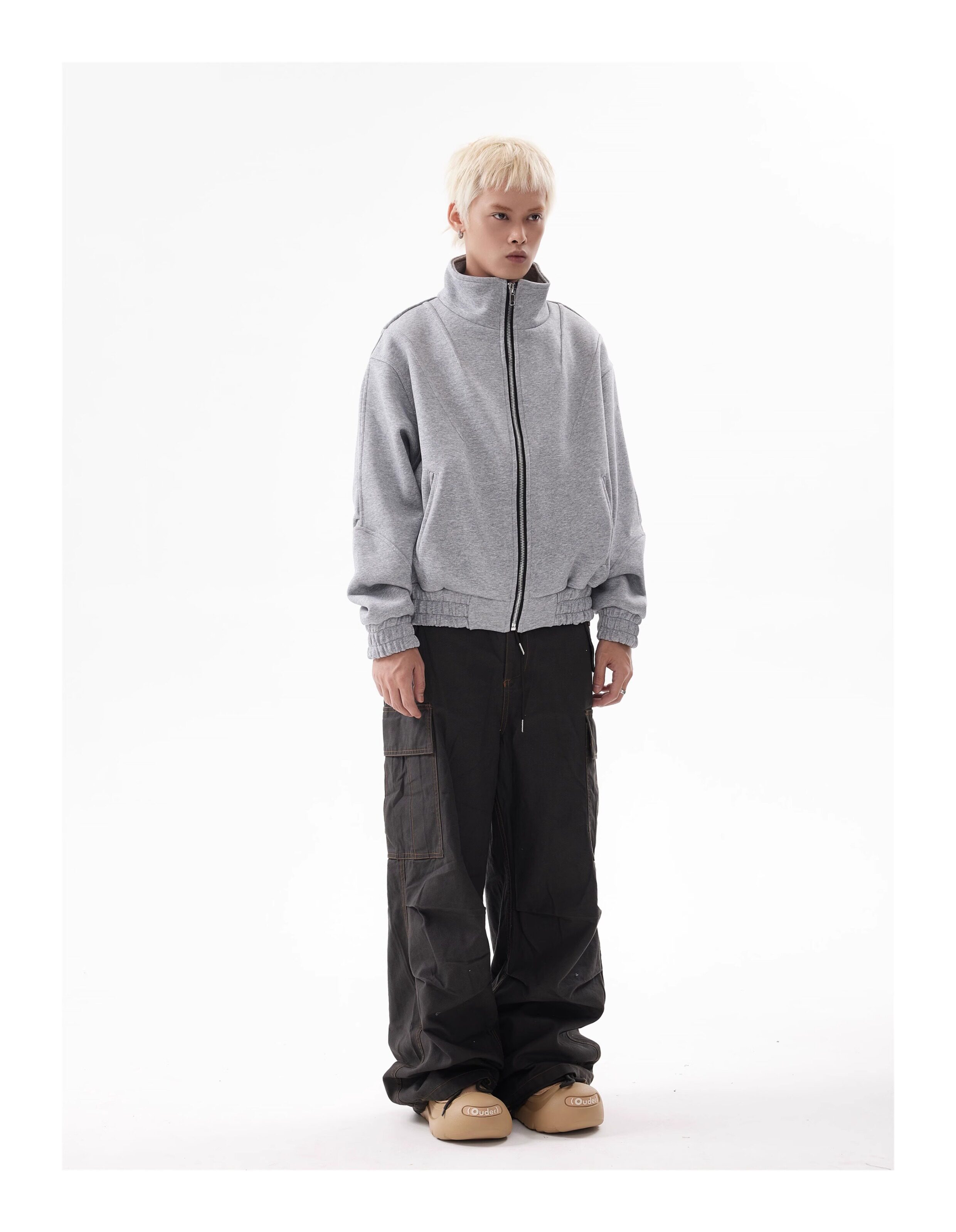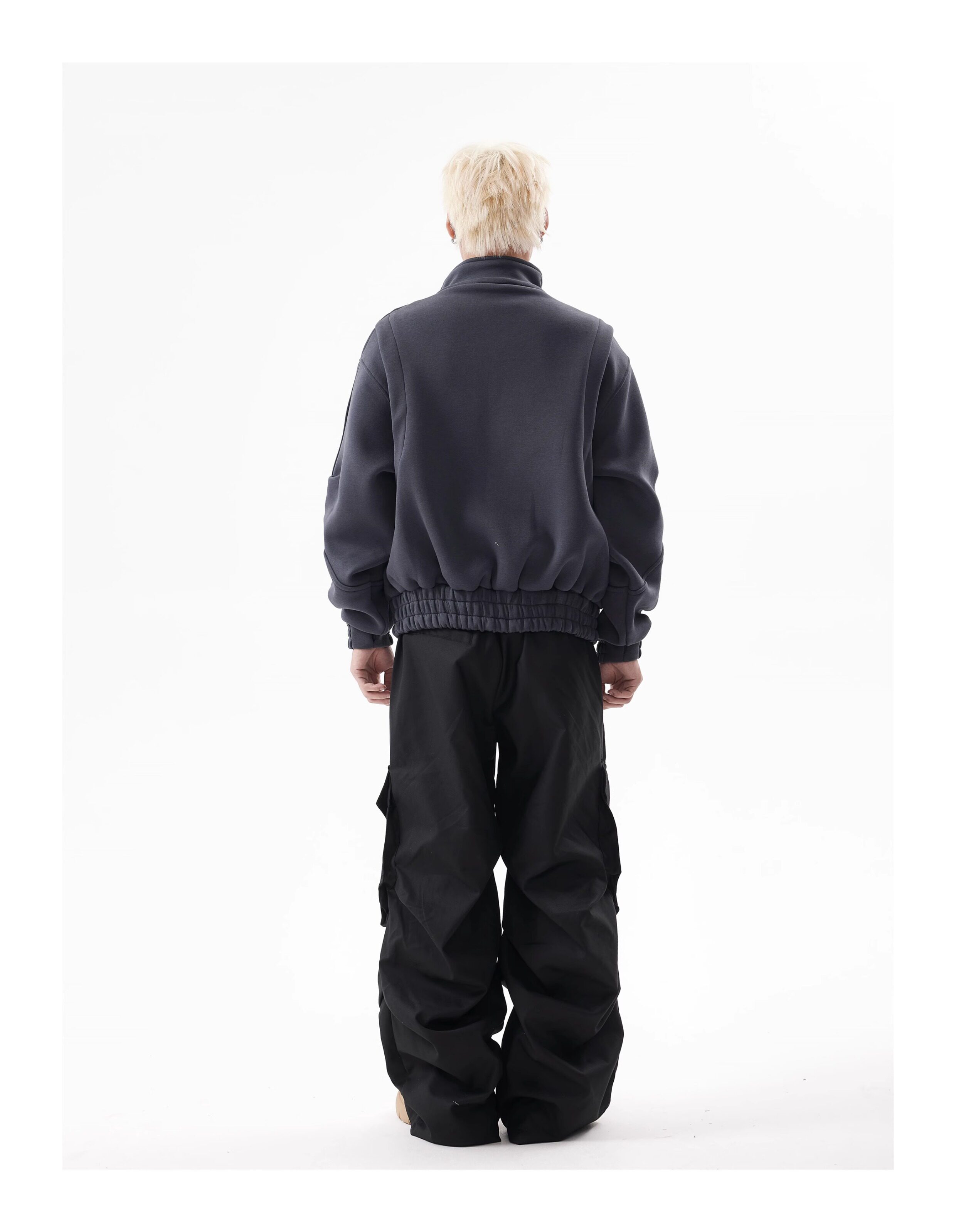 BTSG Deconstructed boxy cropped silhouette double zip jacket
