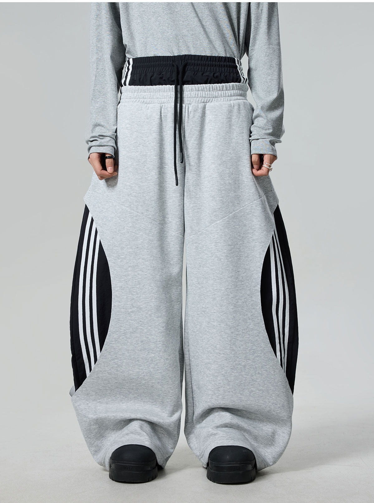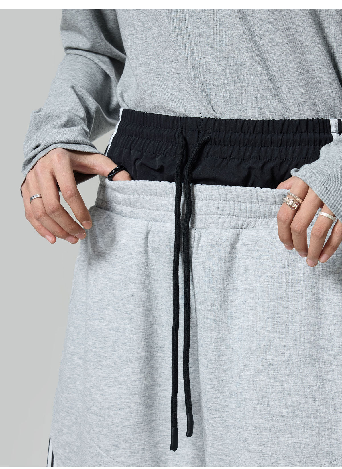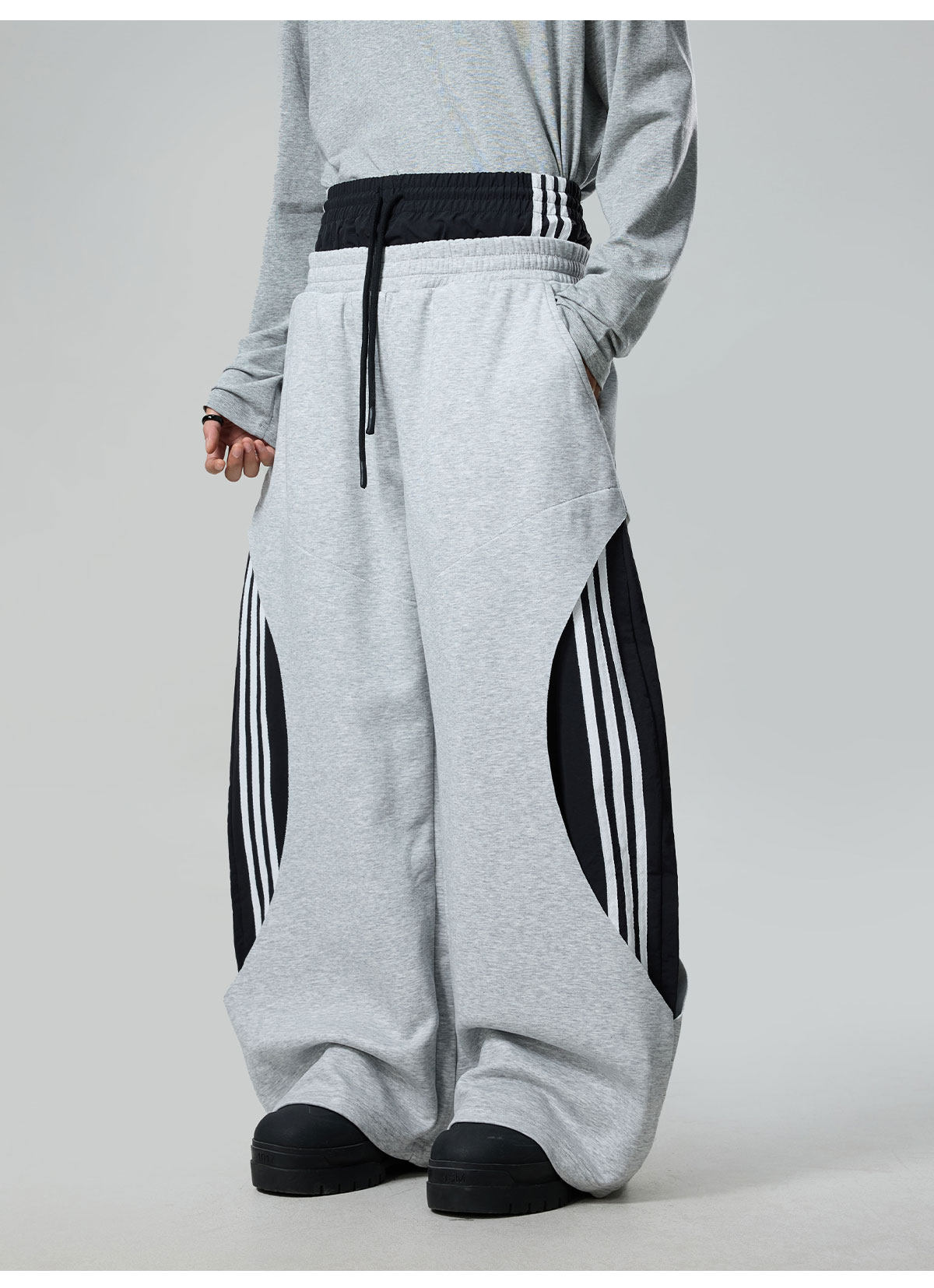 BTSG double waist fake two-piece striped wide-leg baggy pants