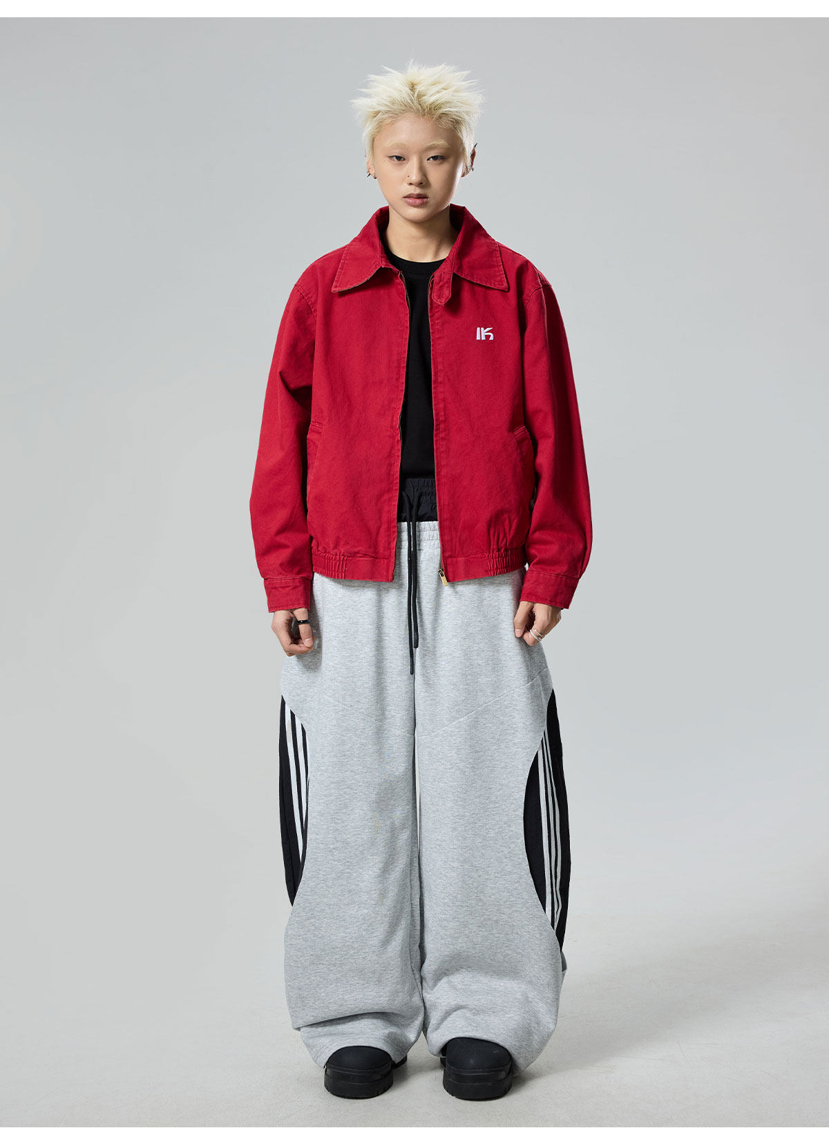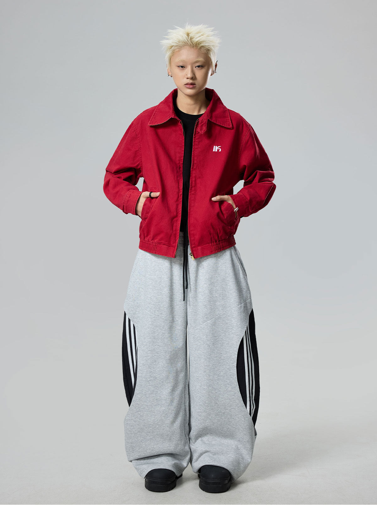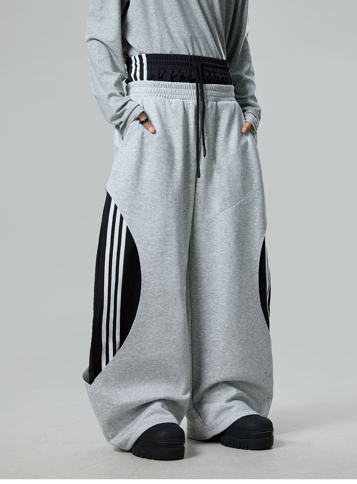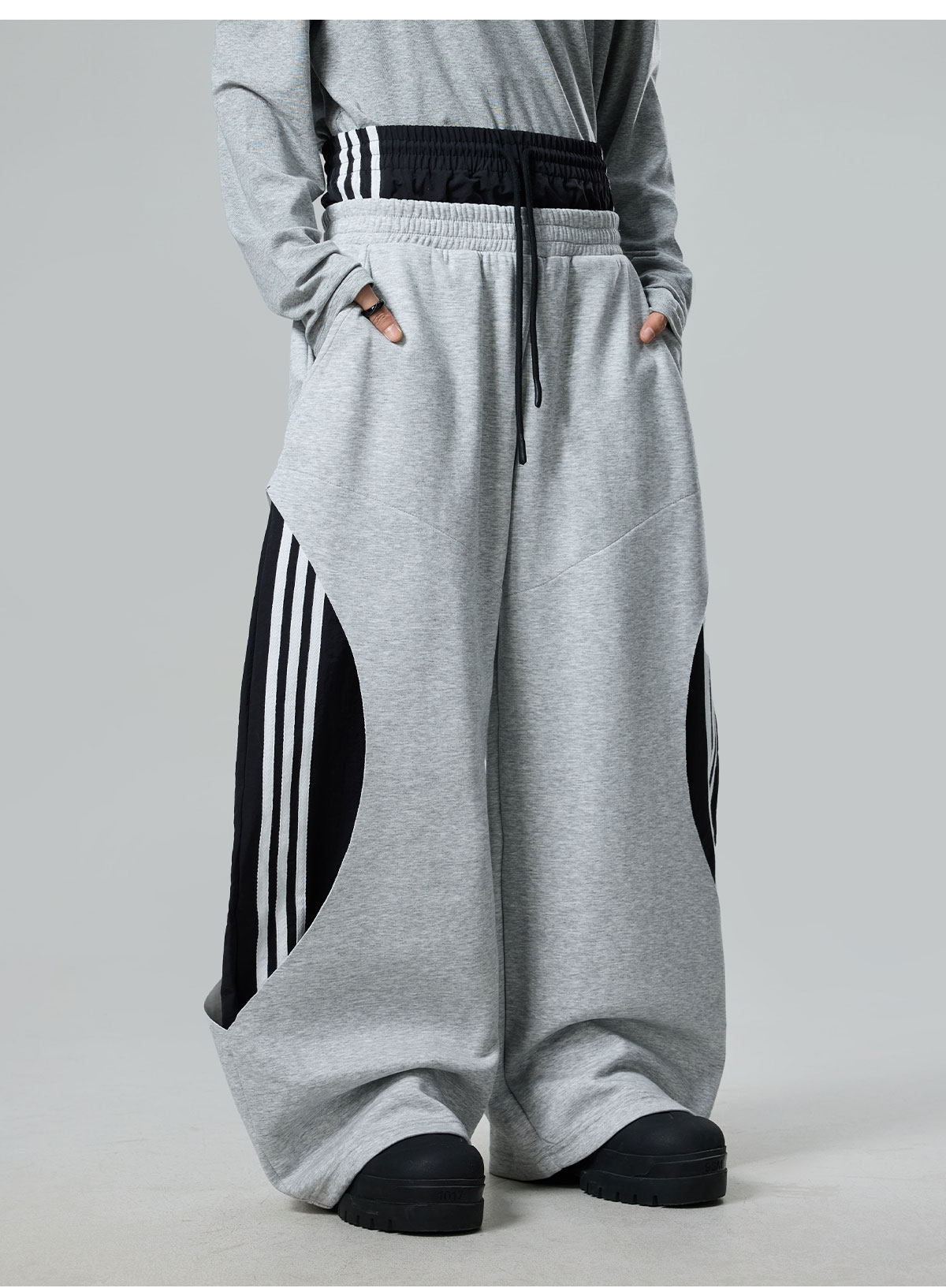 BTSG double waist fake two-piece striped wide-leg baggy pants