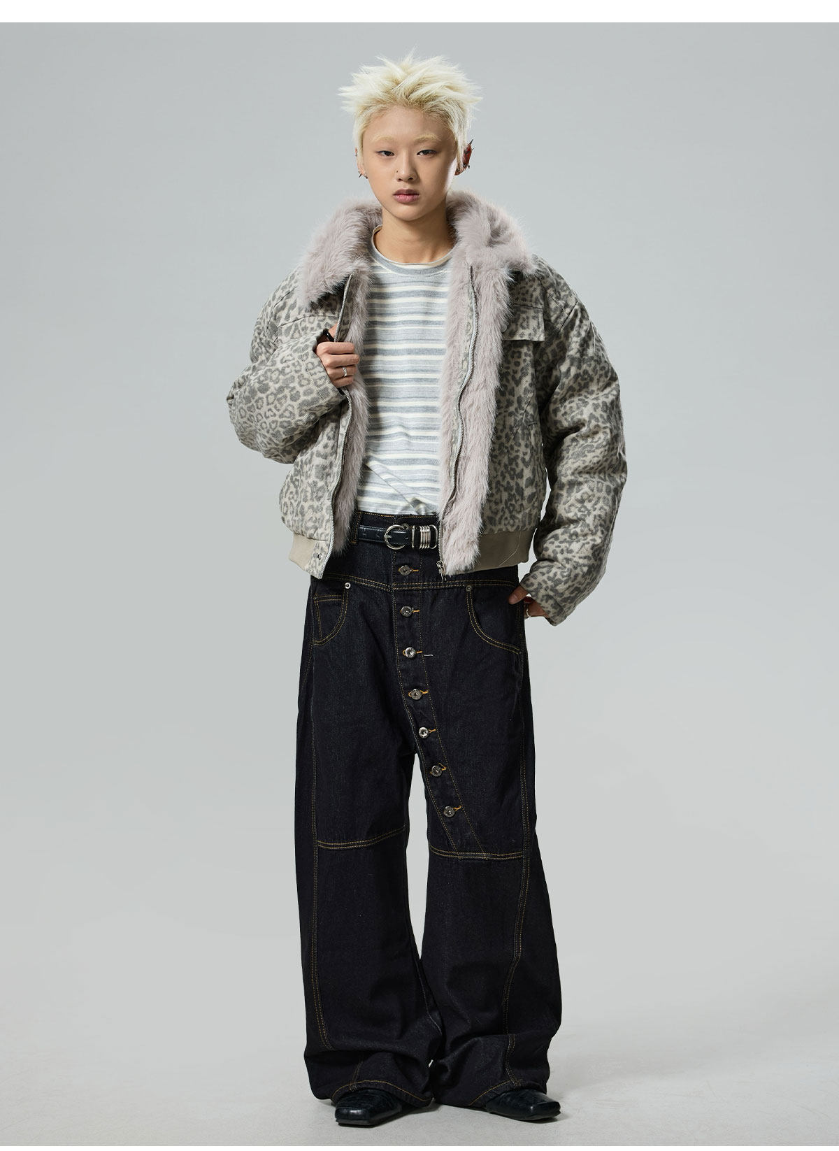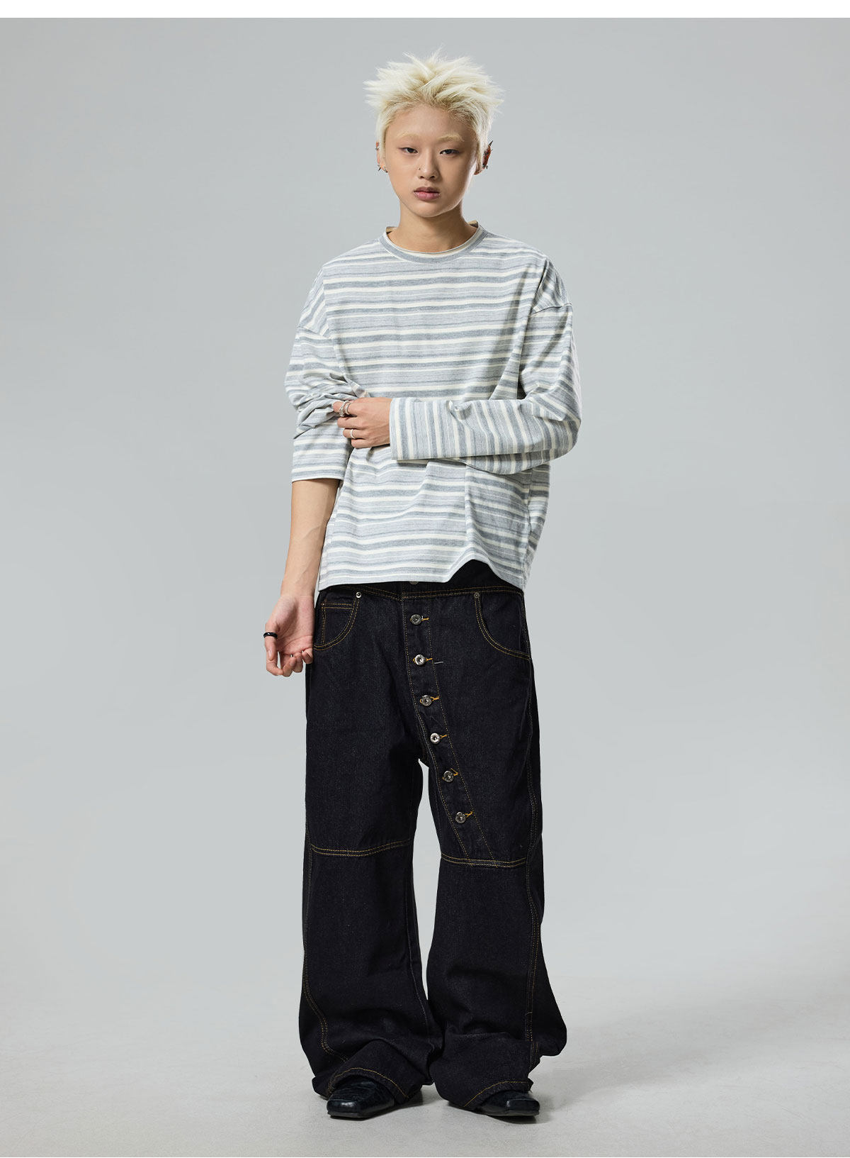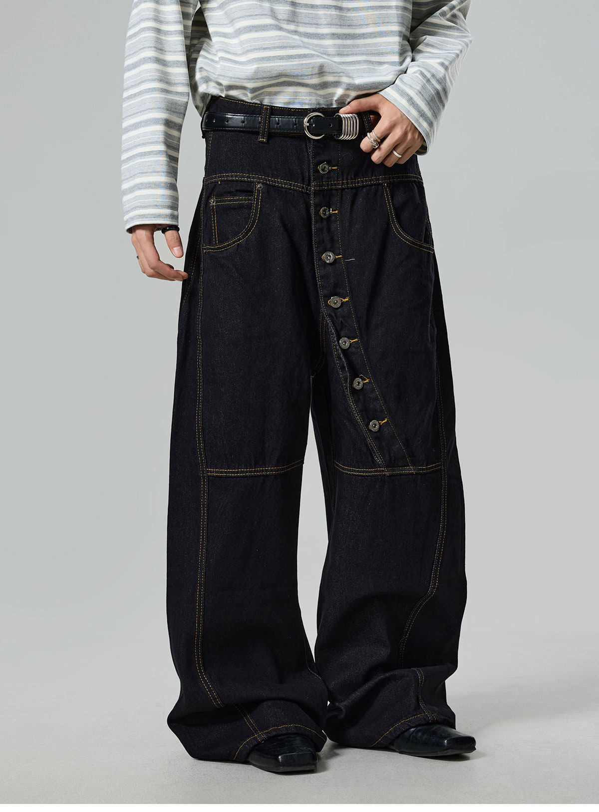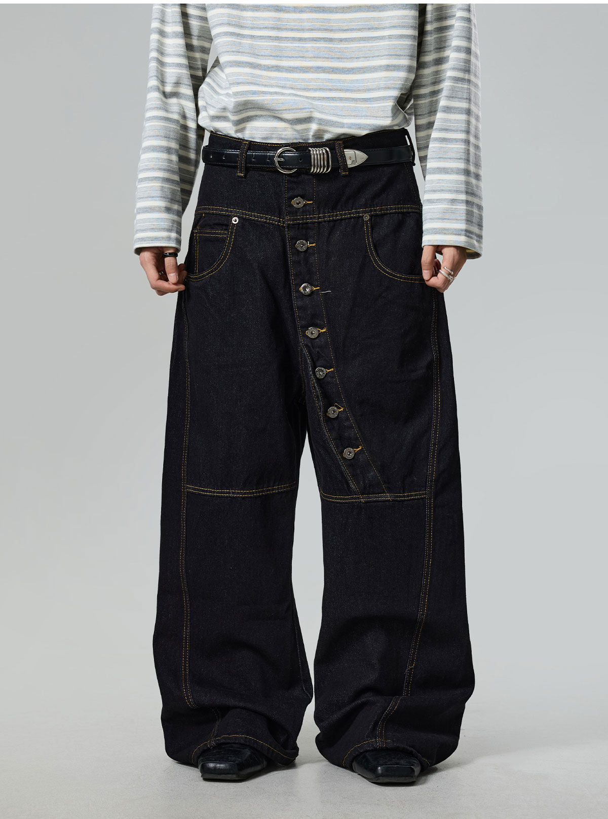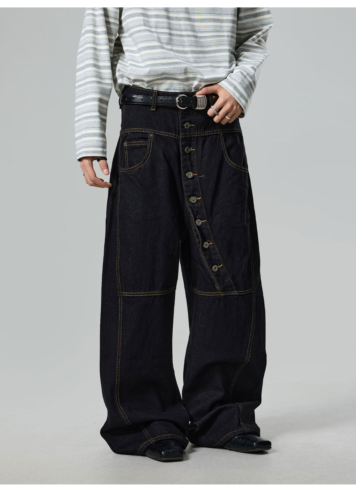 BTSG niche retro design diagonal baggy loose wide-leg jeans